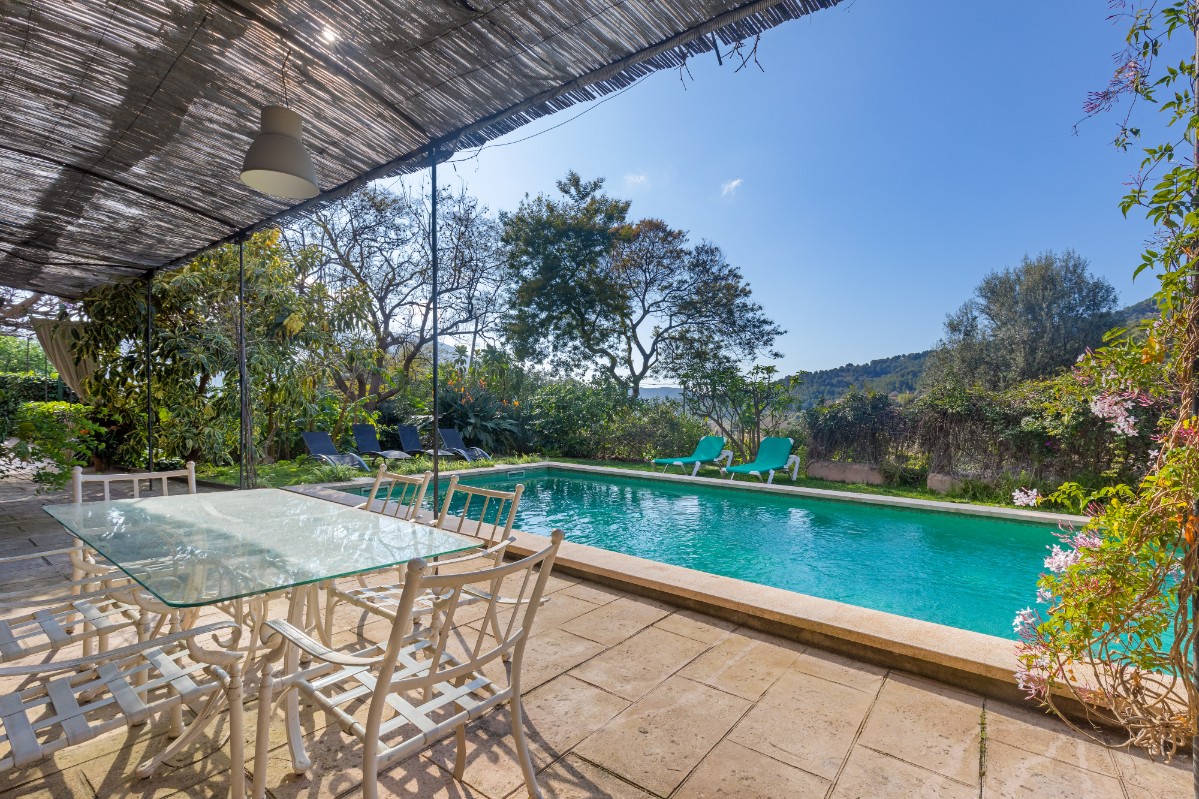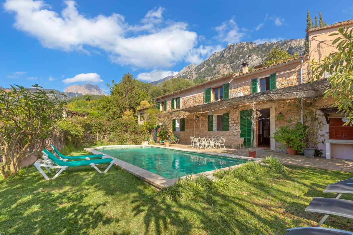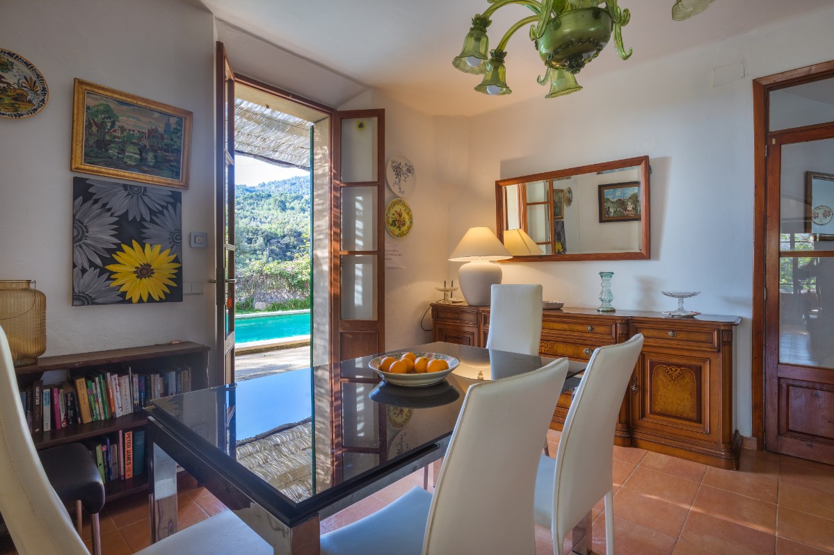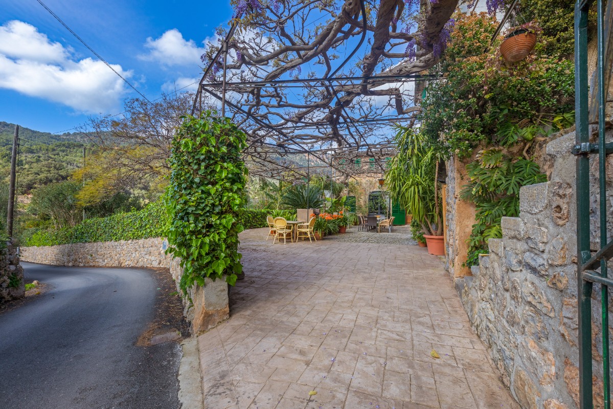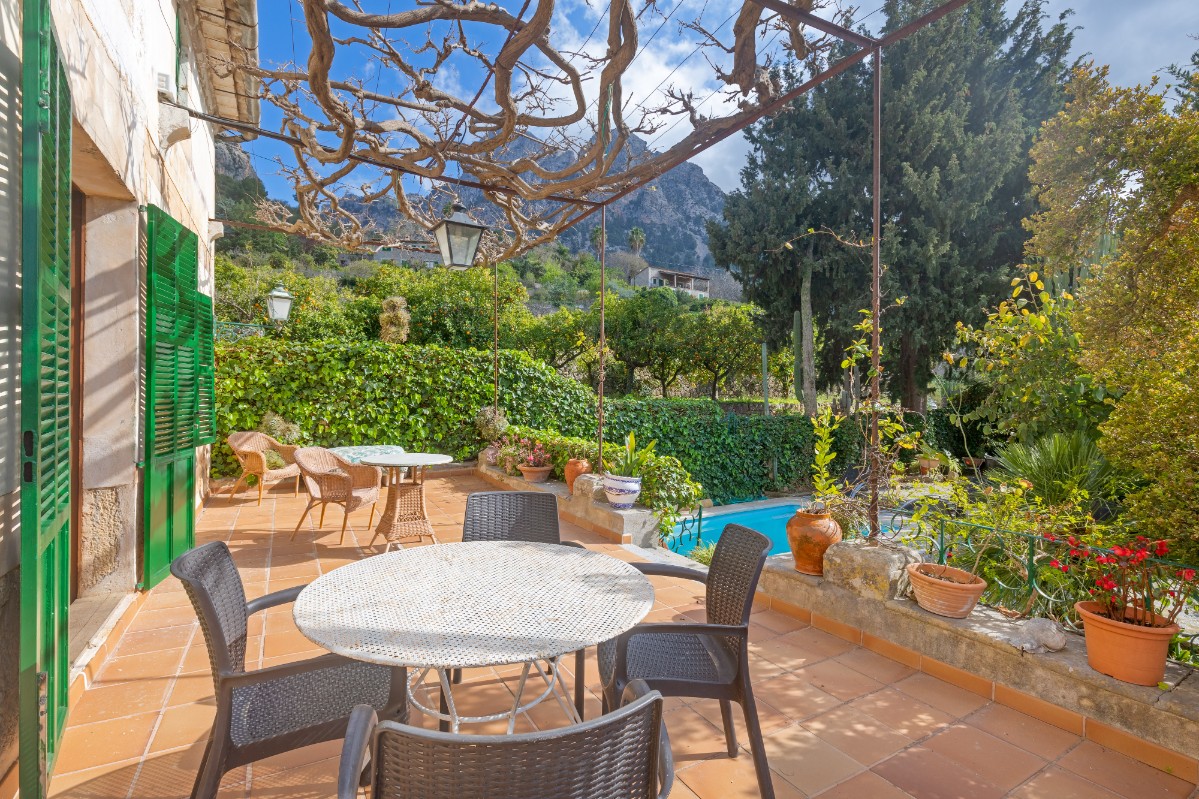 This Mallorcan finca is located in idyllic Biniaraix and consists of two adjoining, individual houses with their respective pools and a spacious plot with great fruit trees. The small plaza with its cafés and church square is just a few steps away on foot, and Fornalutx and Sóller are just a stroll away. The finca has been used in recent years as a rental property with a corresponding licence. Guests enjoy the tranquillity of the surroundings, the panoramic views of the valley and the charming Mallorcan style of the finca with its spacious garden and pools. Access is very easy and there are several parking spaces in the courtyard behind the houses. The courtyard is also used by another neighbouring finca, which does not affect the privacy of the country house for sale.