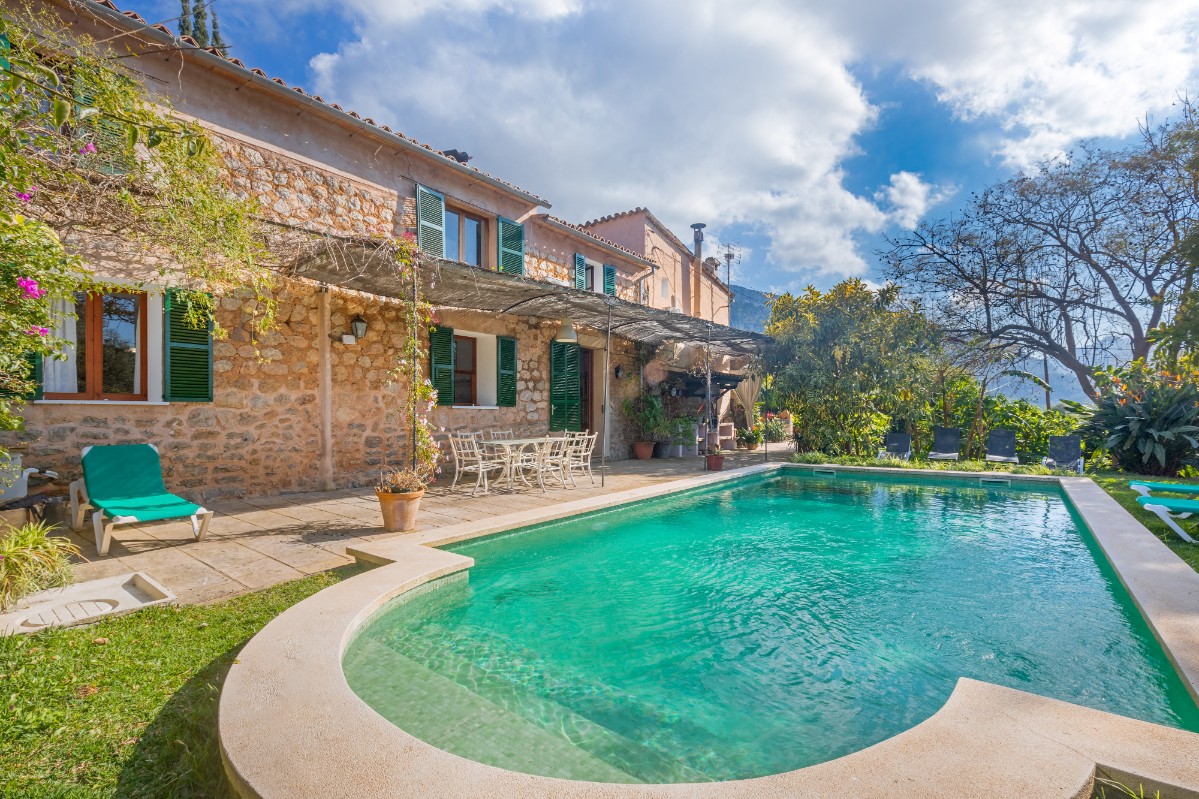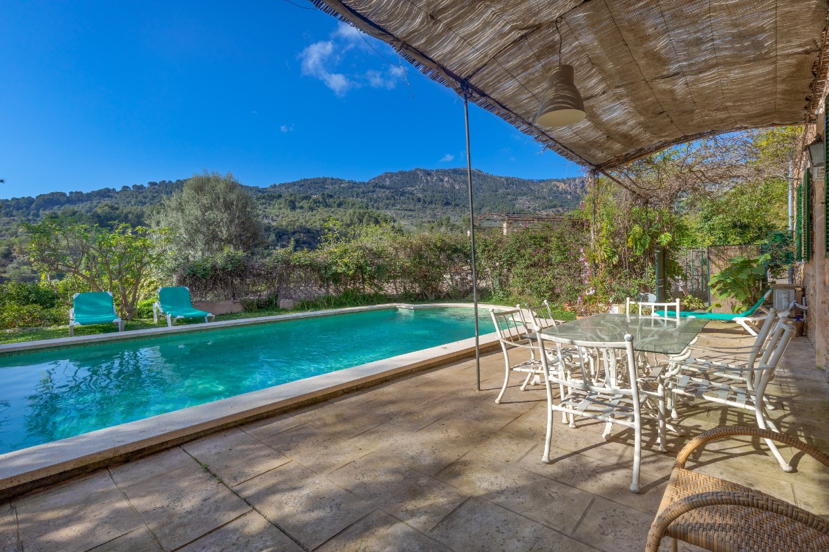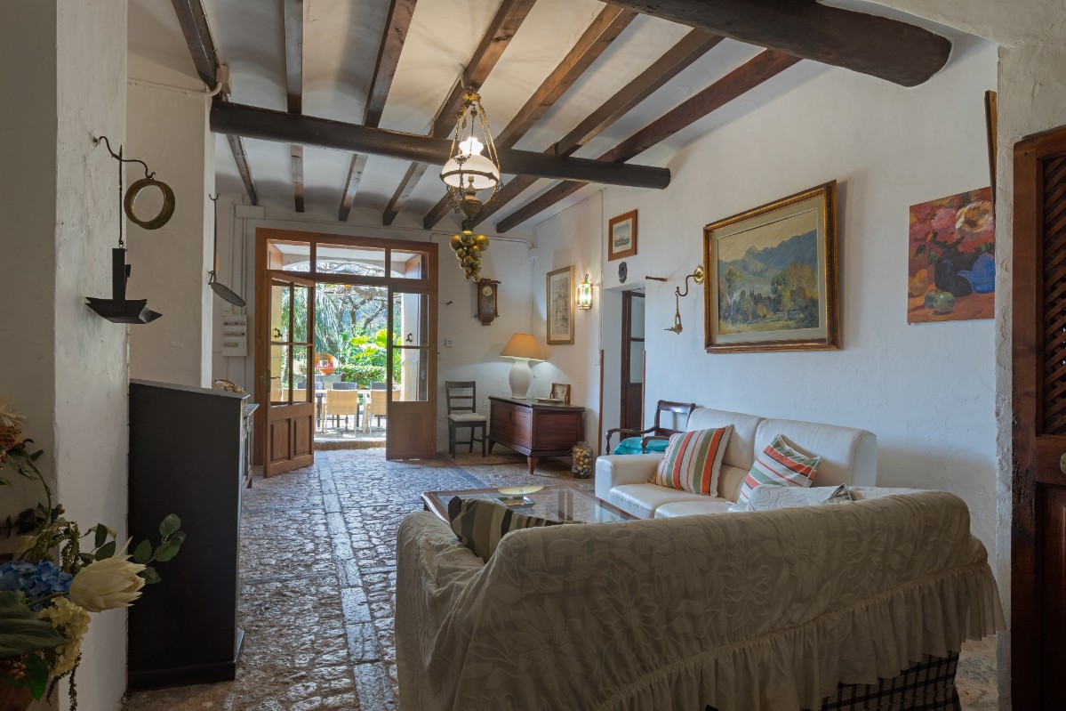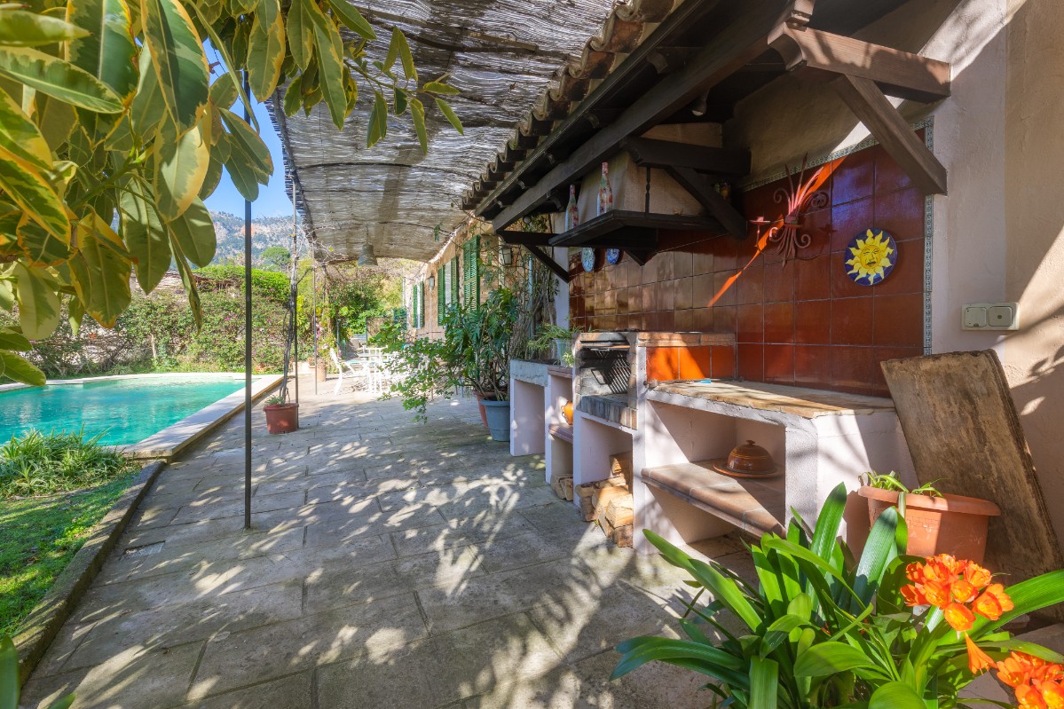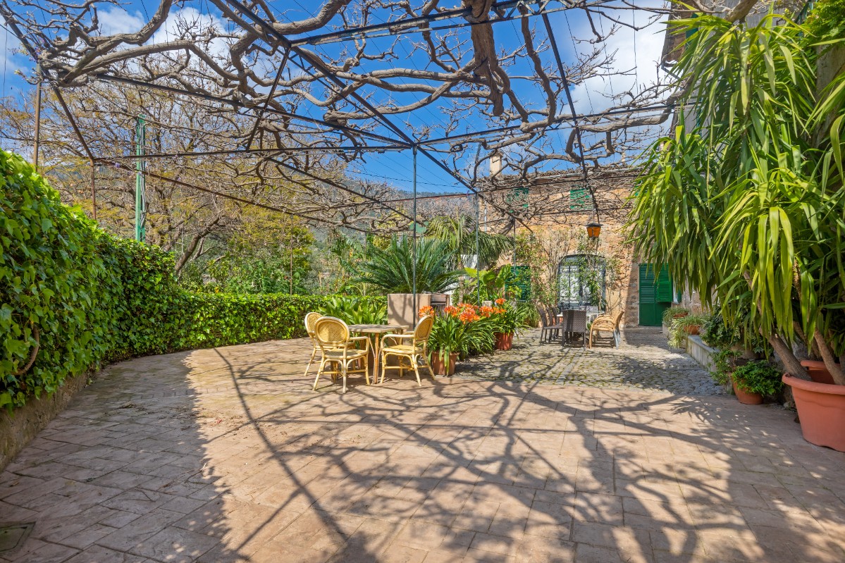 This Mallorcan finca is located in idyllic Biniaraix and consists of two adjoining, individual houses with their respective pools and a spacious plot with great fruit trees. The small plaza with its cafés and church square is just a few steps away on foot, and Fornalutx and Sóller are just a stroll away. The finca has been used in recent years as a rental property with a corresponding licence. Guests enjoy the tranquillity of the surroundings, the panoramic views of the valley and the charming Mallorcan style of the finca with its spacious garden and pools. Access is very easy and there are several parking spaces in the courtyard behind the houses. The courtyard is also used by another neighbouring finca, which does not affect the privacy of the country house for sale.
