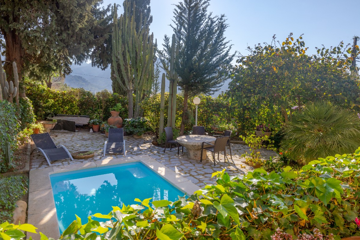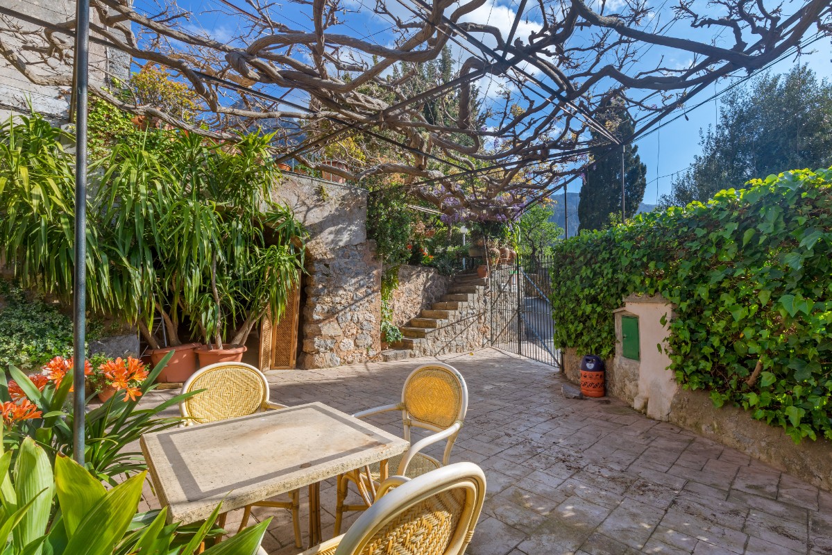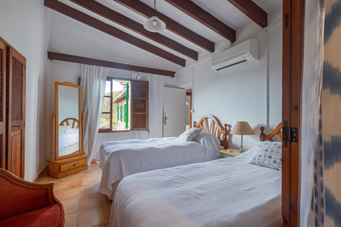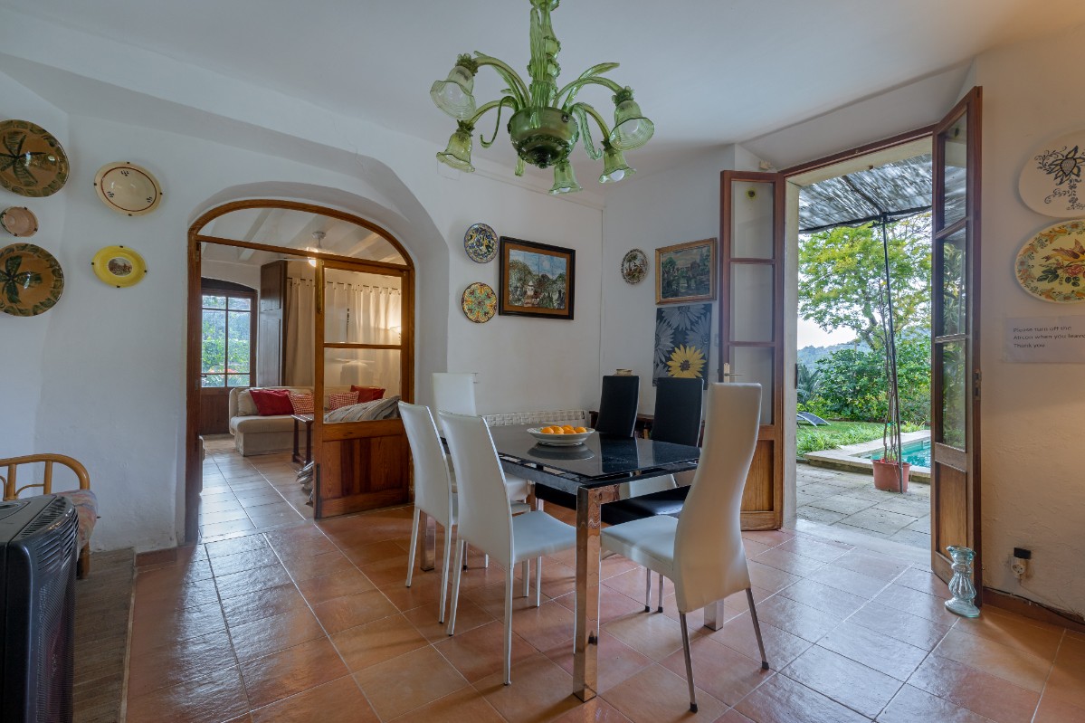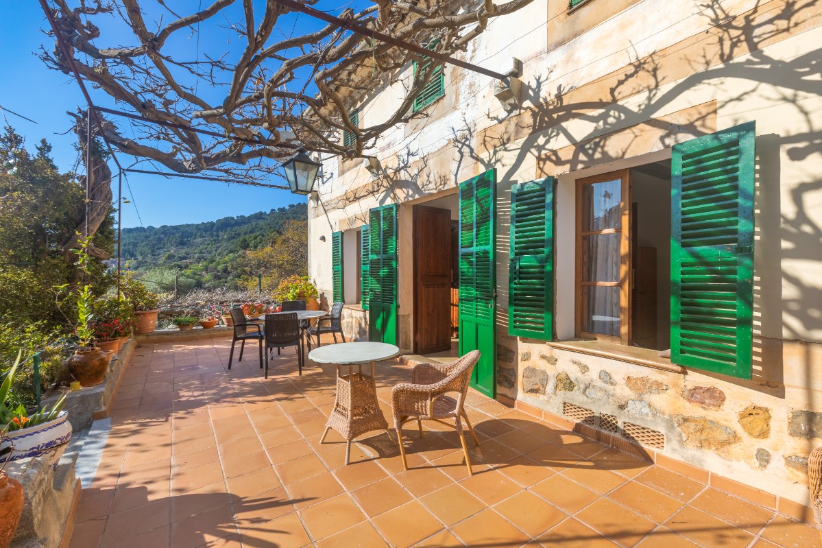 This Mallorcan finca is located in idyllic Biniaraix and consists of two adjoining, individual houses with their respective pools and a spacious plot with great fruit trees. The small plaza with its cafés and church square is just a few steps away on foot, and Fornalutx and Sóller are just a stroll away. The finca has been used in recent years as a rental property with a corresponding licence. Guests enjoy the tranquillity of the surroundings, the panoramic views of the valley and the charming Mallorcan style of the finca with its spacious garden and pools. Access is very easy and there are several parking spaces in the courtyard behind the houses. The courtyard is also used by another neighbouring finca, which does not affect the privacy of the country house for sale.