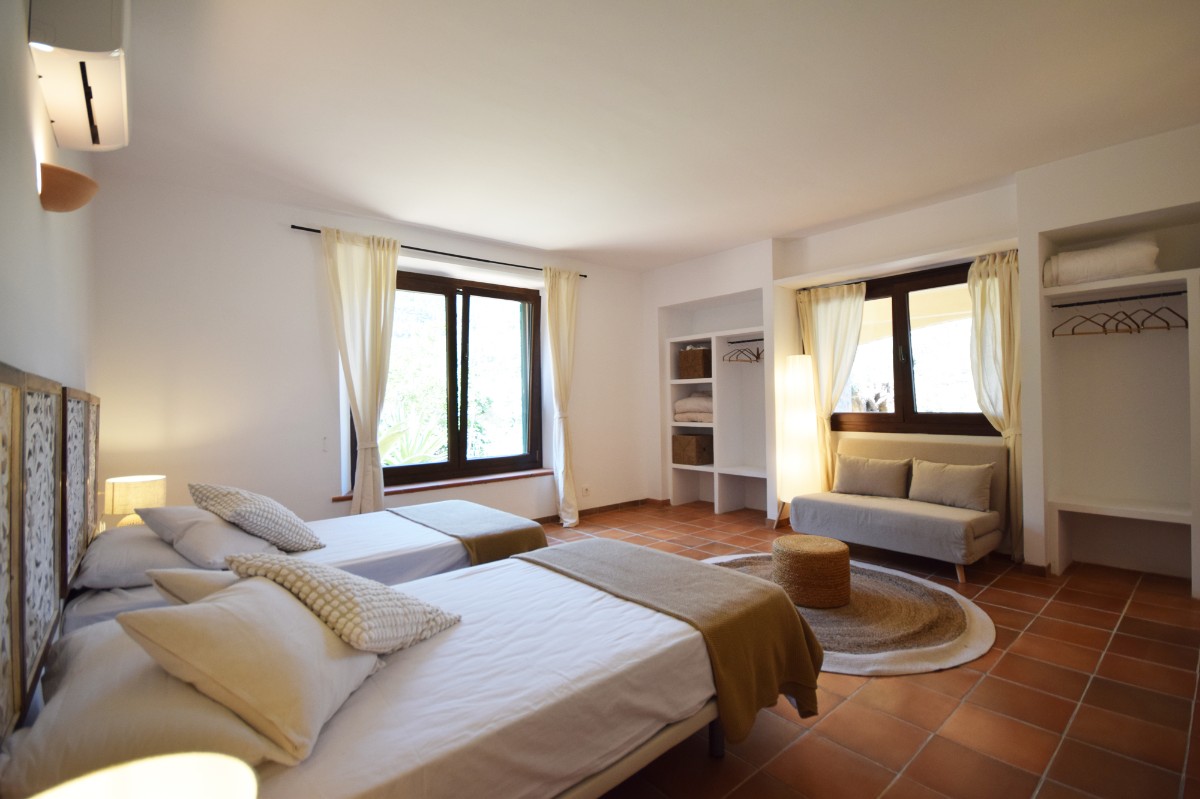 This stone-built house is located at only a few minutes away from the village of Deià. It offers amazing views to the sea and to the village. Settle in the middle of a large olive groove, the house has been recently renovated and it offers three double bedrooms with bathrooms on suite, a modern kitchen, two living rooms, large terraces, barbecue and a small pool to cool off in the summer months. All bedrooms plus one of the living rooms is equipped with A/C hot and cold. Available per months from anytime now. For further information please contact us.
