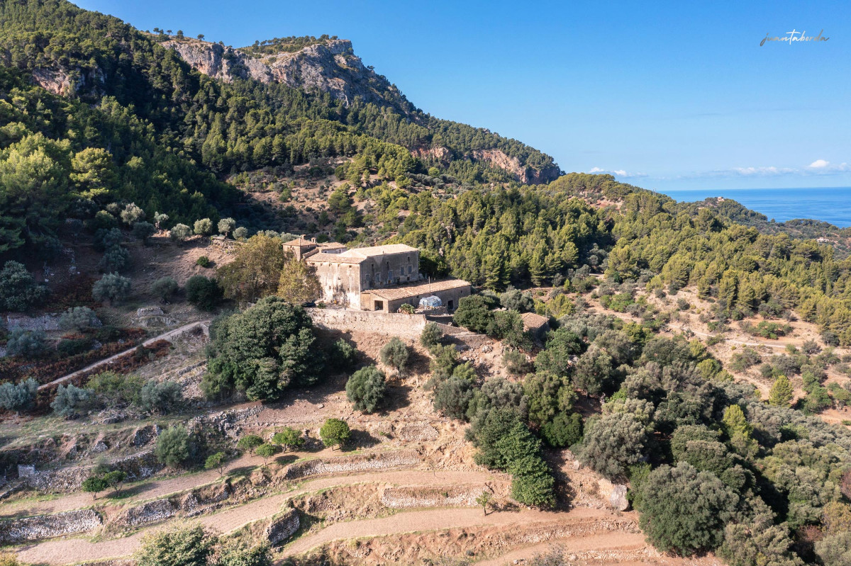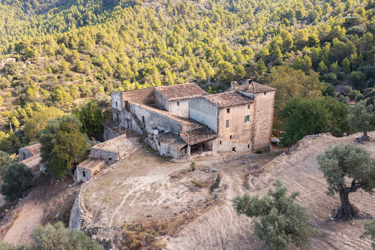 A beautiful part of the Serra de Tramuntana awaits its new owner. Overlooking the sea, the sunset is different every day. Sheltered in the mountains, in a privileged location, its elevated position but only 10 minutes from the beautiful village of Estellencs makes this property with privacy extremely exclusive. It is one of the two most important properties in the municipality and one of the landmarks of the region. The property borders three municipalities, its extension is spectacular, its location is unique and dominant and the views are beautiful and endless. As a curiosity and after the conquest of the island, the lord (owner) of this possessió was obliged by the King of Mallorca to keep 2 horses and 2 knights to warn the town if he saw any danger on the coast. In fact, the royal road that connected Estellencs to Puigpunyent runs very close to the estate. The estate covers an area of more than 3 million square metres, where olive trees, carob trees, pines, holm oaks and orchards stand side by side. The property has a classic central courtyard "sa clastra", has a built area of more than 1500 m2 and is divided into 3 main floors: Ground floor of 560 m2, first floor of 560 m2 and second floor of 400 m2, which the main building has a third floor of 120 m2 and a basement of 100 m2. The rooms, outbuildings, bedrooms, salons, dining rooms, kitchens and rooms are arranged as they were at that time. The exterior design, the defence tower, the coats of arms on the façade and the character of all the elements also convey the lifestyle of past centuries. The history of this property, the activity of its fields over the years and the oil production make it an absolutely exclusive property. The published photos correspond to the current state of the exterior (2022). The interior of the houses requires ambitious renovation.
