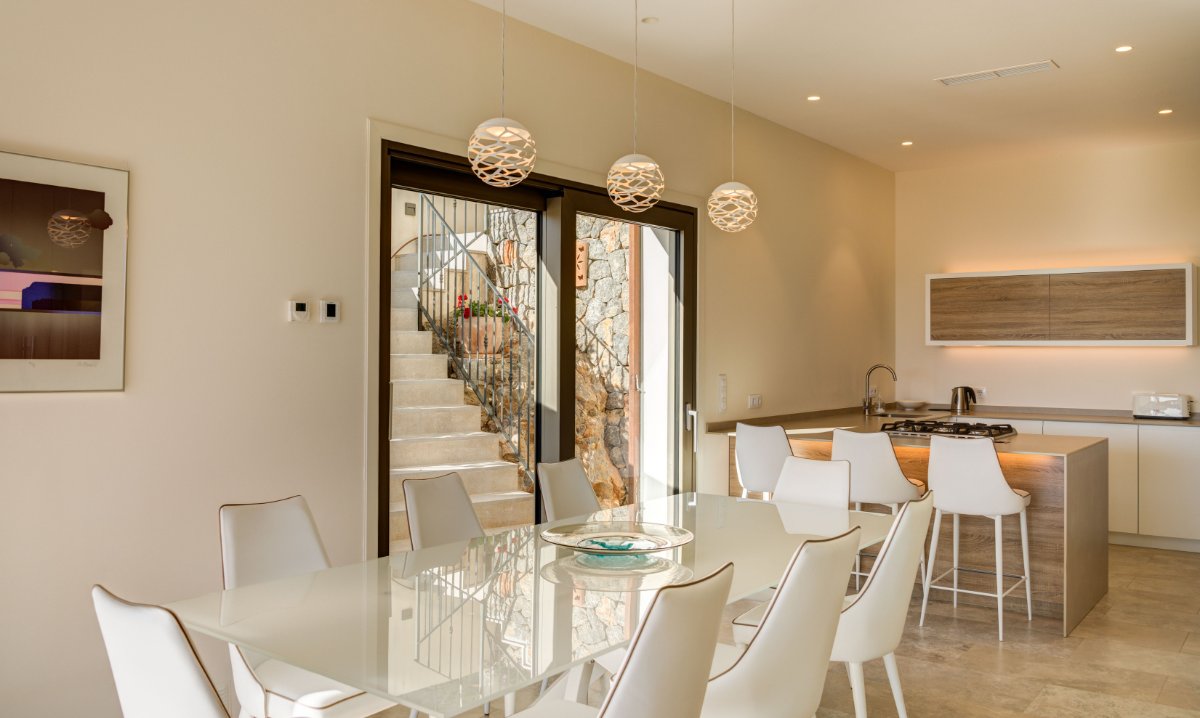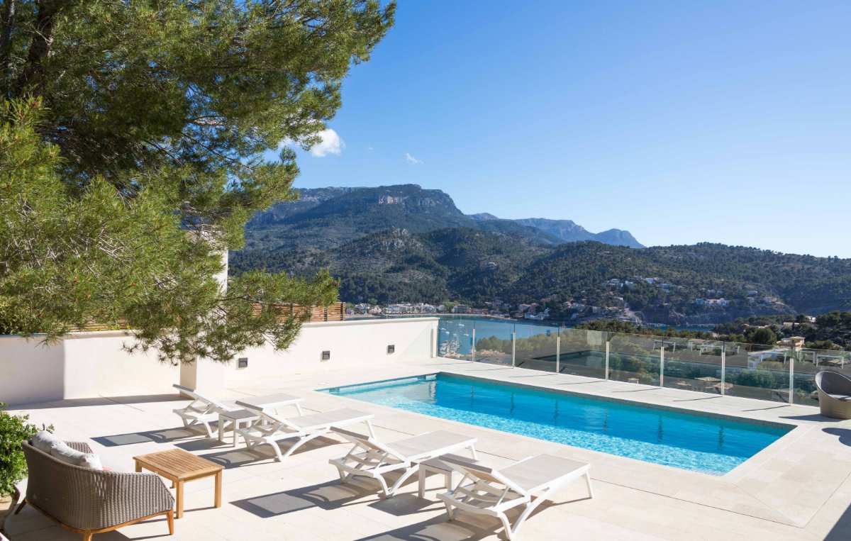 Located up in the hills of Port de Sóller, the house has been recently built with the best materials available and at a very high standard. It is equipped with a lift to all floors, with A/C, WIFI, SmartTV and the house offers accommodation for 8 people within the 4 bedrooms and 3 bathrooms plus a guest toilet. Two of the bathrooms are on suite. The house has a double garage and place for another car outside. Terraces all around the house offer plenty of space where to chill out and enjoy the amazing views to Port de Sóller. On the roof level the good size pool invites to cool off during the summer days. Outside shower available up there too. Prices start at 5000 Euros to 8000 Euros per week.