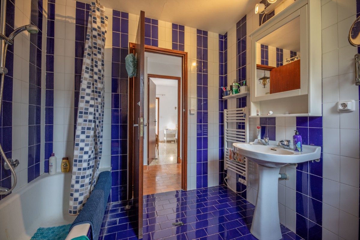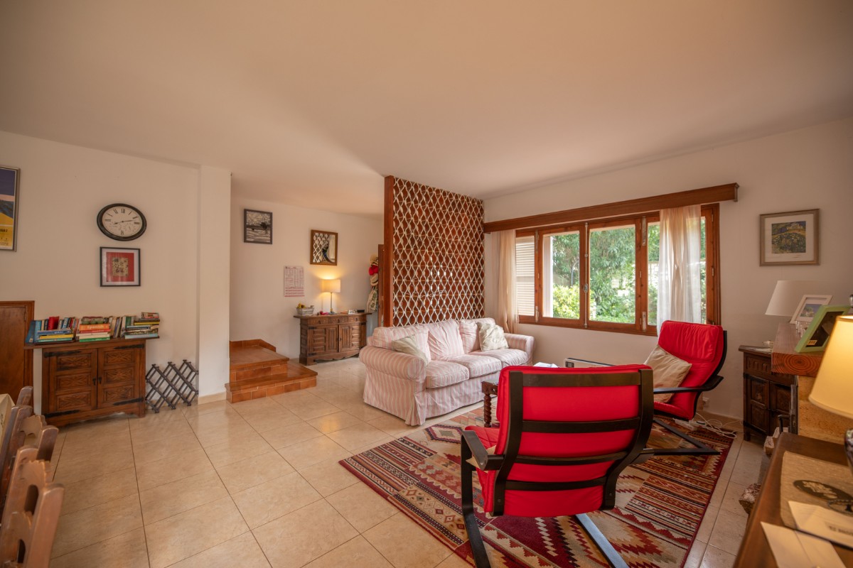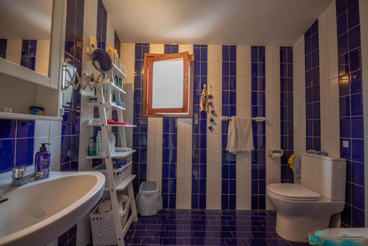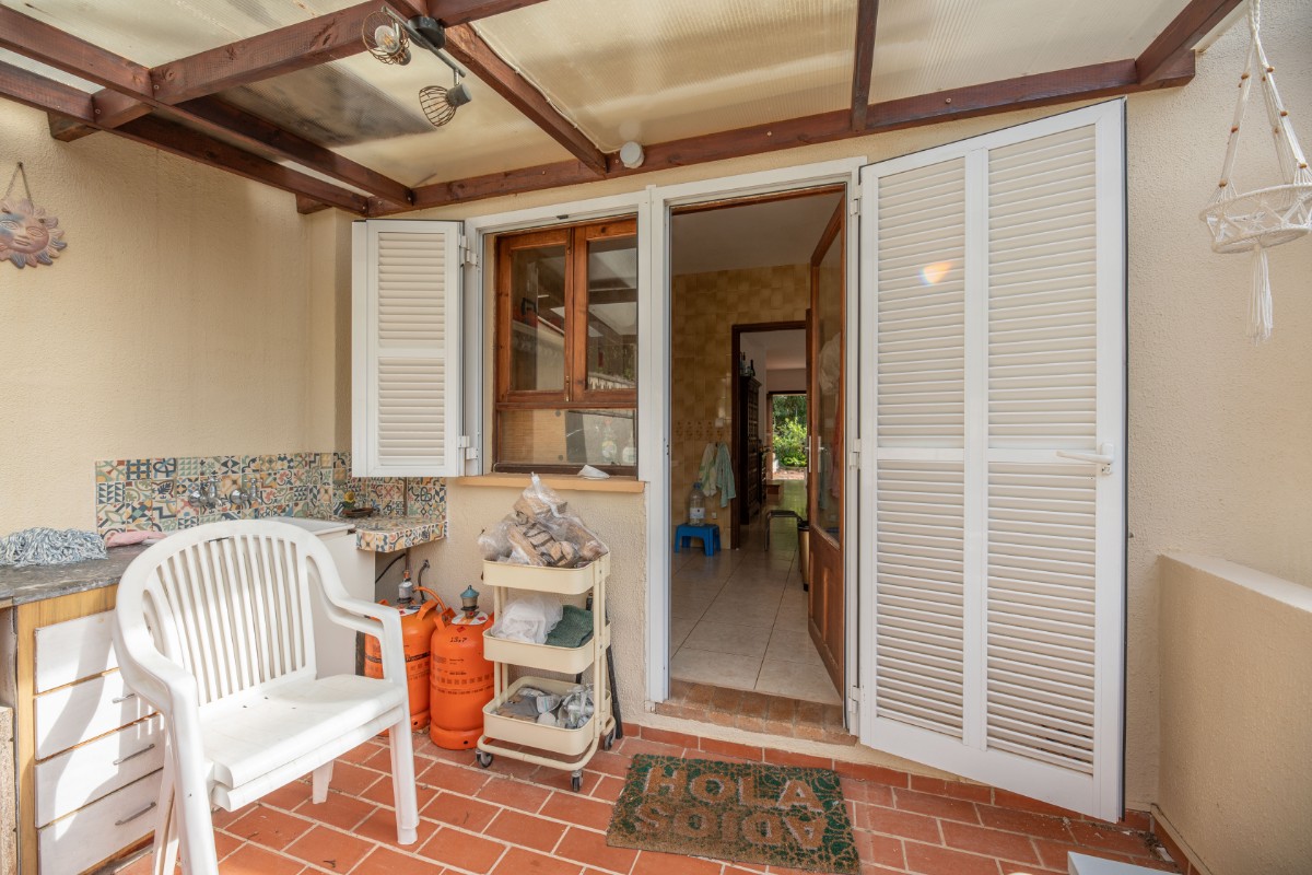 This fantastic sales property is nestled within a quiet neighbourhood, just a short walk away from the soothing waves of the beach and the vibrant buzz of the harbour town filled with shops and restaurants awaiting exploration. Palma is just a 35 minutes away in car and you can hop on the next bus stup withing walking distance of the house. This two-story semi-detached property offers comfort at its core, with ample space to spread out and make memories. There is a spacious living room with wood burner on the ground floor as well as one double bedroom with in build wardrobes, kitchen with Access to rear garden, and a small shower bathroom. On the upstairs área you find further two double bedrroms , as well with in build wardrobes and the master with Access out to a terrace and views over the neighbourhood and mountains. There is a full bathroom with window as well on this level. The qm are cleverly distributed and make i tan easy t olive house. Picture yourself enjoying lazy afternoons in the mallorcan sun with not just one, but two lovely garden spaces both at the front and rear of the house. This property offers the perfect blend of convenience with tranquility giving you the oportunity to enjoy mallorcan living.