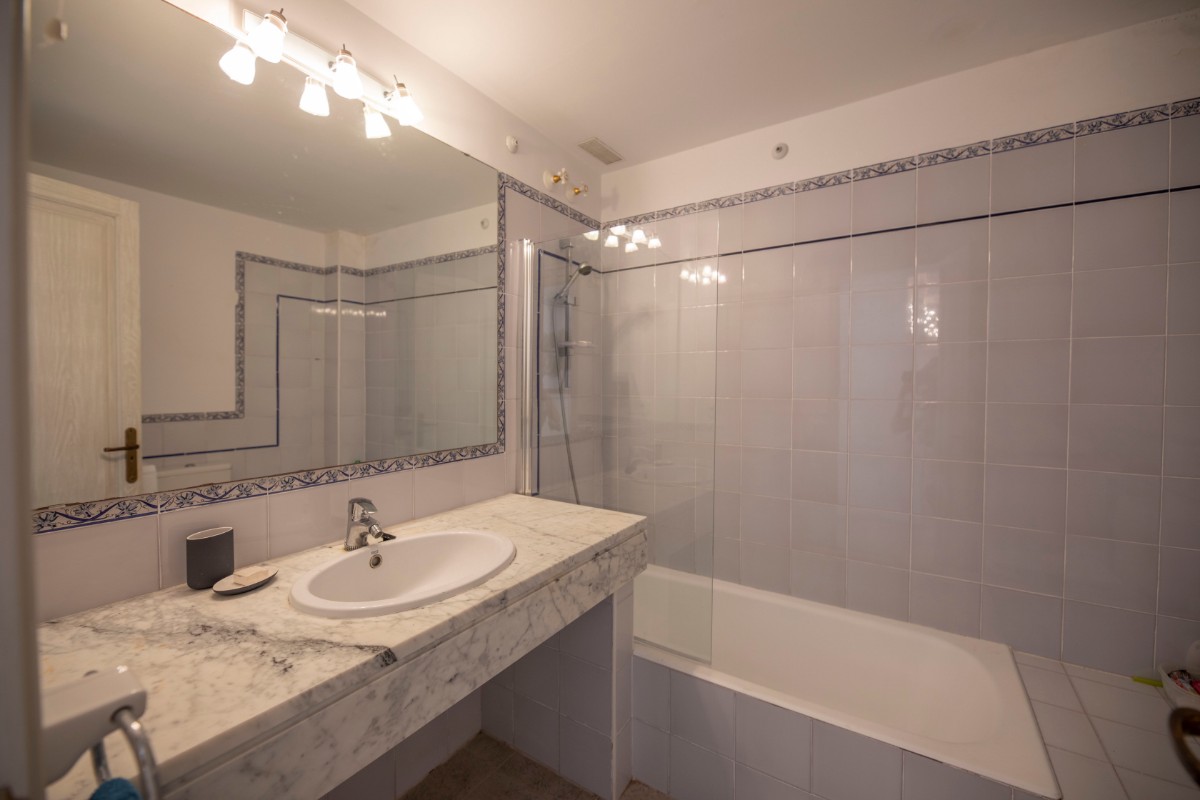 The apartment is distributed over two levels. The upper floor features a generous master bedroom with an en-suite bathroom. The lower level comprises two double bedrooms, an additional bathroom, a charming and spacious living area, and a fully equipped open-plan kitchen that blends seamlessly into the living space, ideal for everyday living and entertaining.