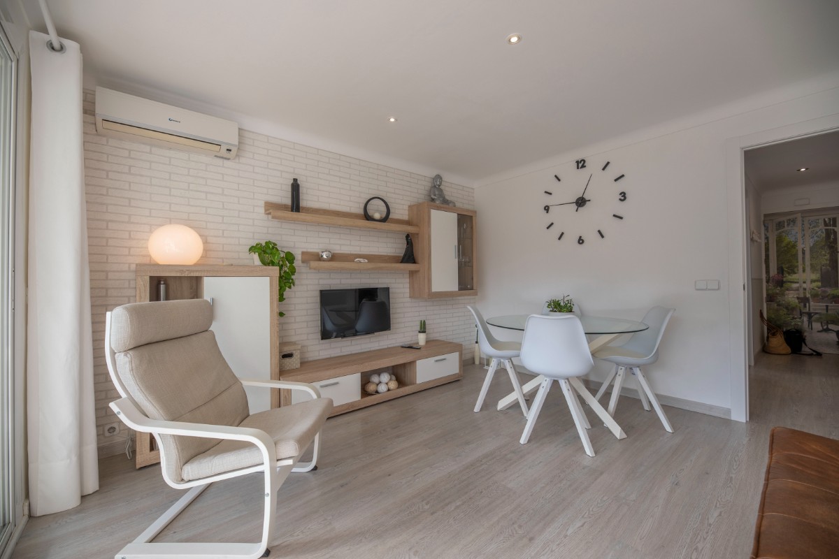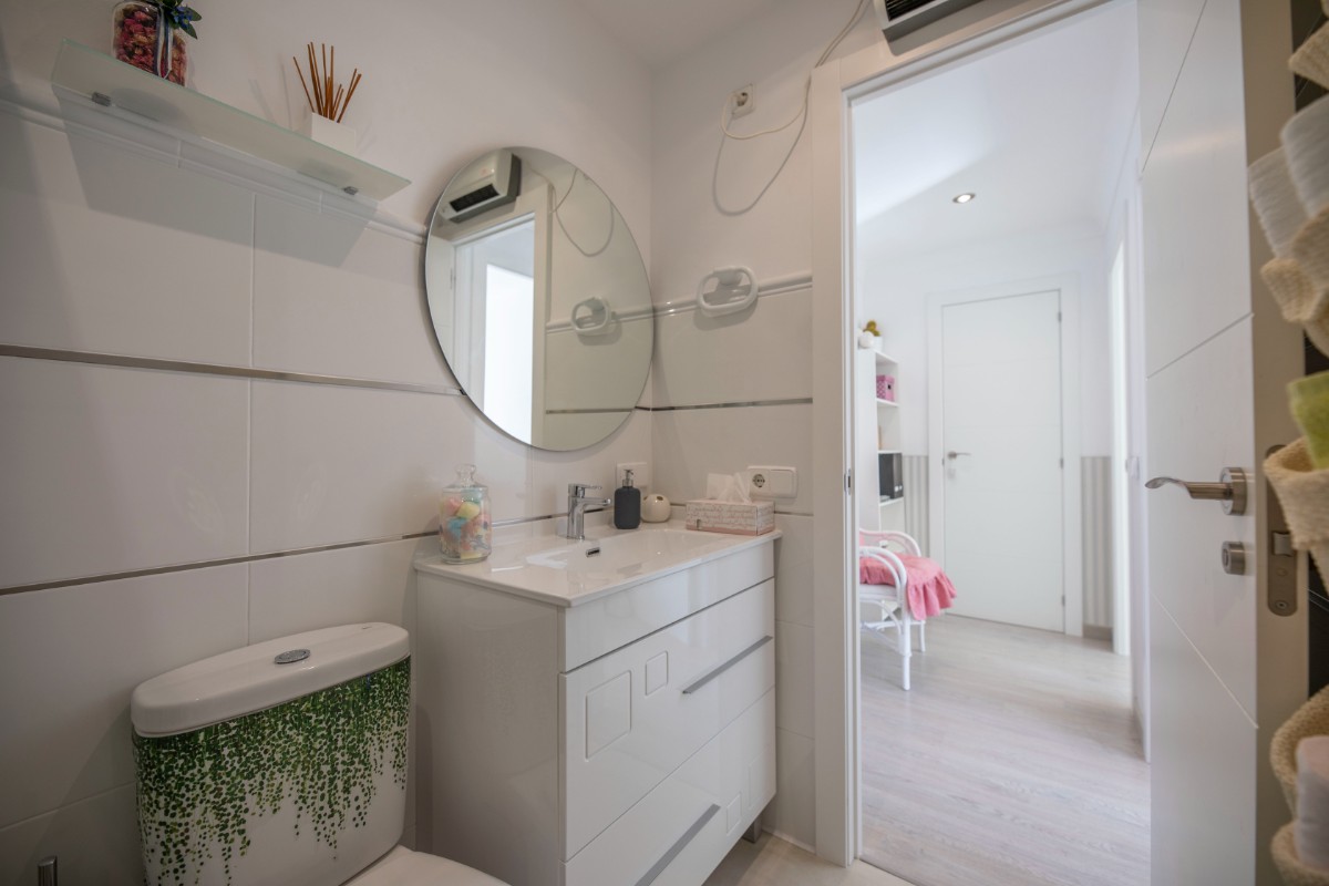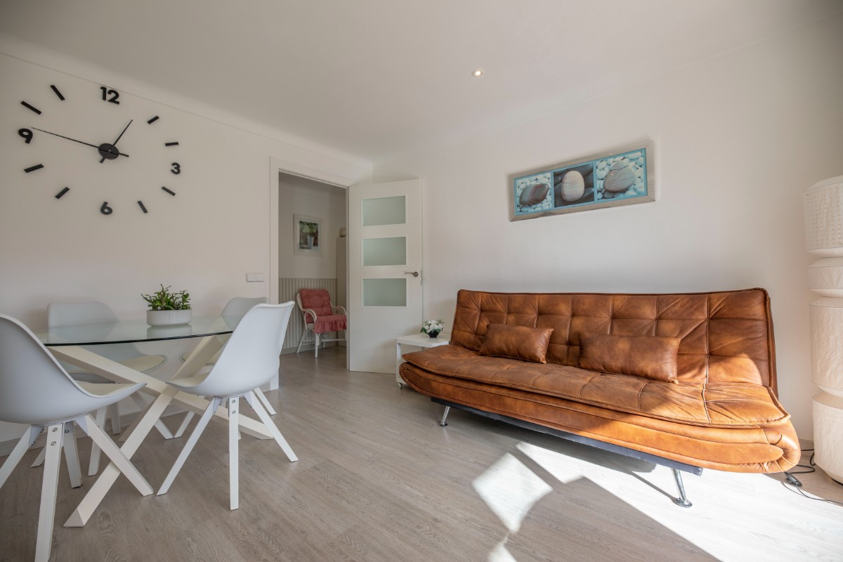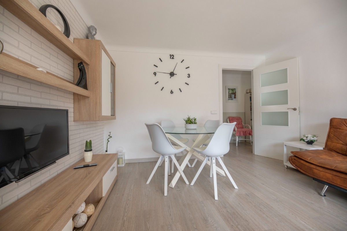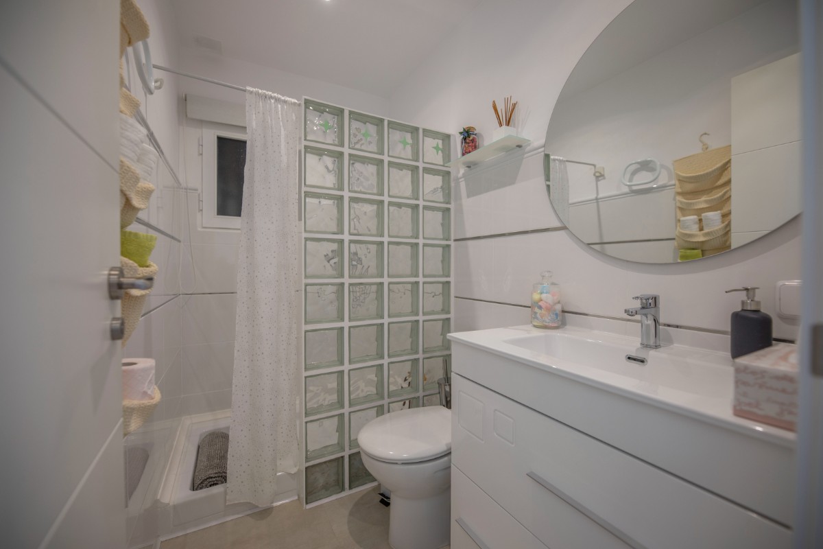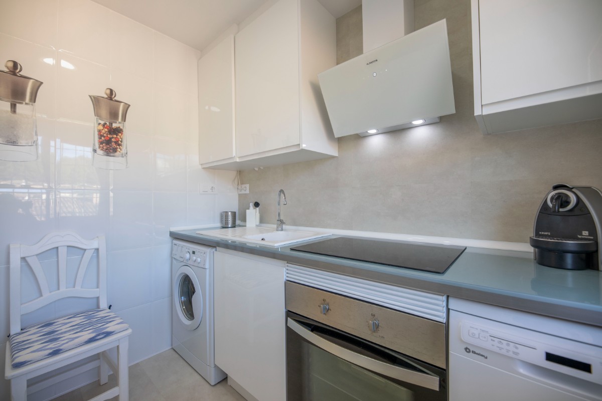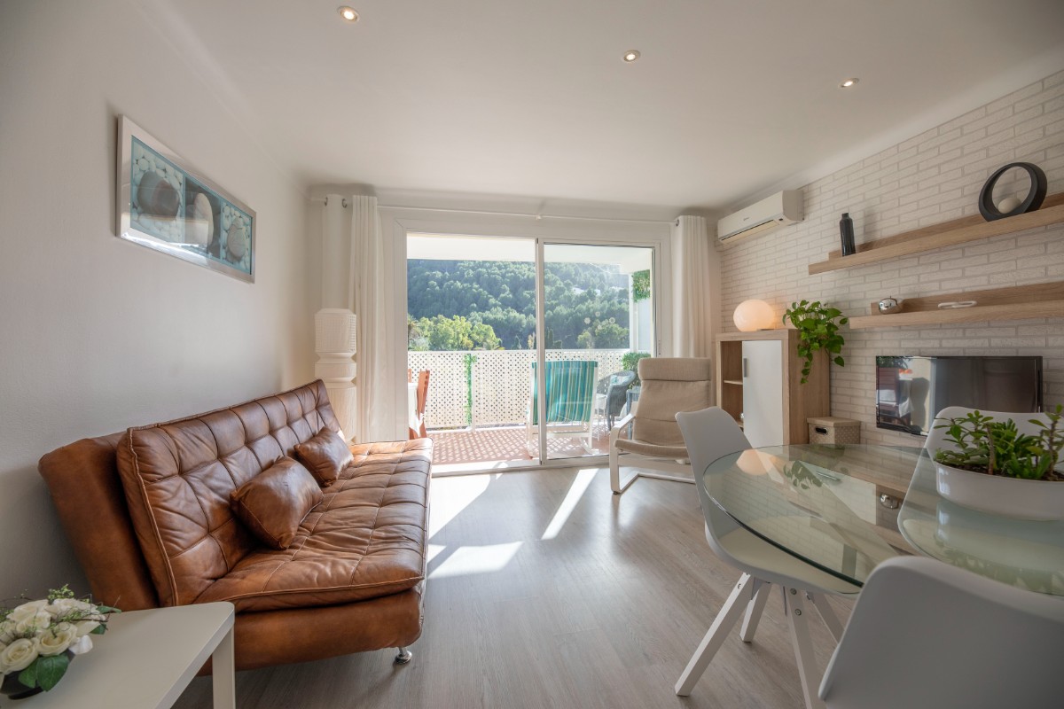This modern renovated flat impresses with its location, only a few steps away from the beach of Port de Sóller. Once you have climbed the stairs to the 4th floor you are rewarded with a fantastic view of the historic finca of Hotel Es Port, as well as the surrounding mountains of the Tramuntana. The flat has a bedroom with a double bed of 1,50 x 2,00 m. The kitchen is very well equipped including washing machine and dishwasher. The bathroom has a shower. The living area is bright and friendly with WIFI and TV and leads directly onto the covered terrace, probably the most used space in this small flat. The terrace big enough for 4 to enjoy breakfast or simply round off the evening with a glass of wine. There is air conditioning in the living area and ceiling fan in the bedroom. This flat is a perfect base for both beach holidaymakers and hikers.