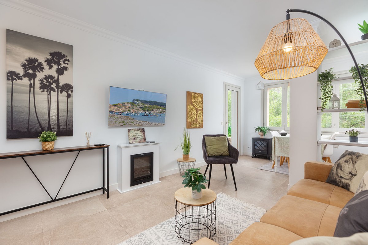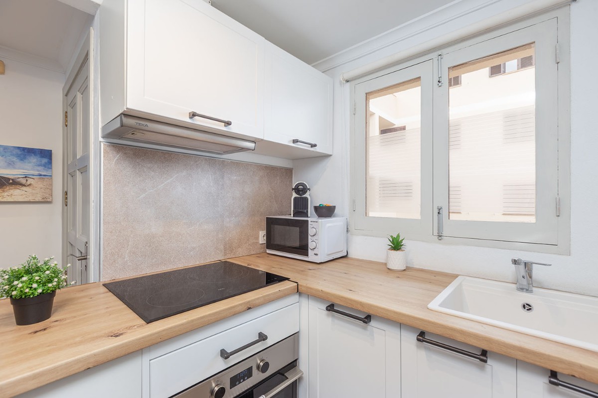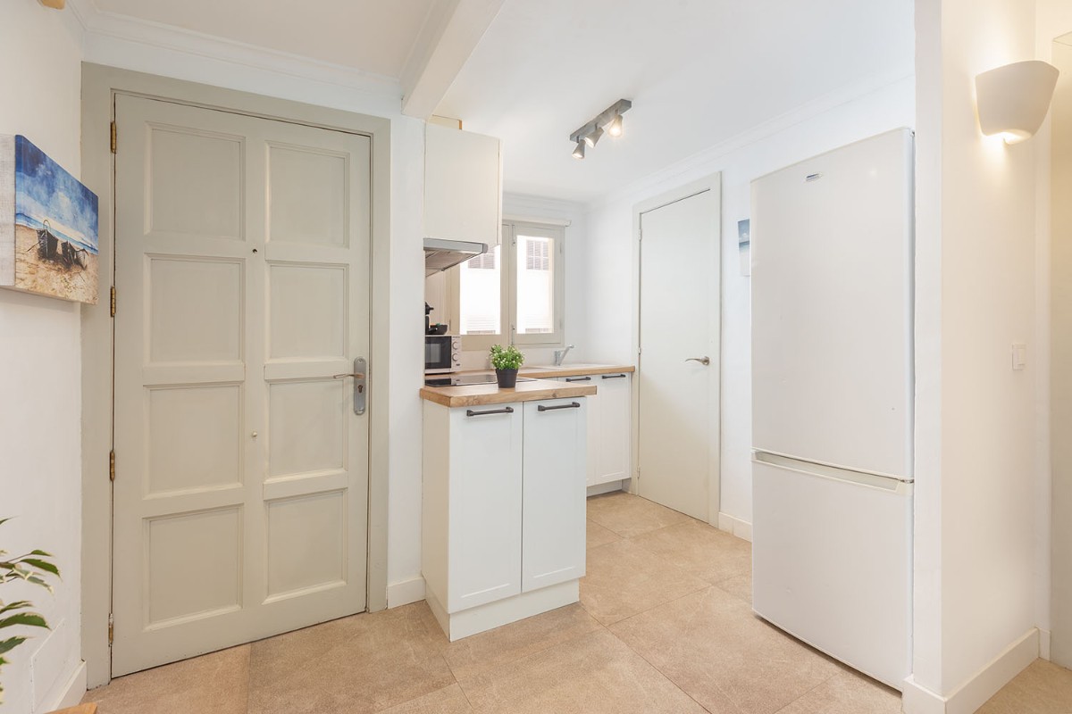 This modern renovated apartment, situated on the second floor with an elevator, offers not only a view of the lush greenery of the neighborhood but also plenty of winter sunlight. Within this cozy abode, you'll find two double bedrooms, a bathroom with a refreshing shower, a convenient guest toilet, a small well-equipped kitchen area, and a spacious living room with access to a charming small covered terrace ideal for enjoying the sea breeze. The apartment is also thoughtfully equipped with modern amenities such as air conditioning for year-round comfort. Additionally, it comes with a vacation rental license, providing peace of mind for those interested in generating income through rentals. Don't miss out on the opportunity to make this lovely seaside getaway your own slice of paradise!