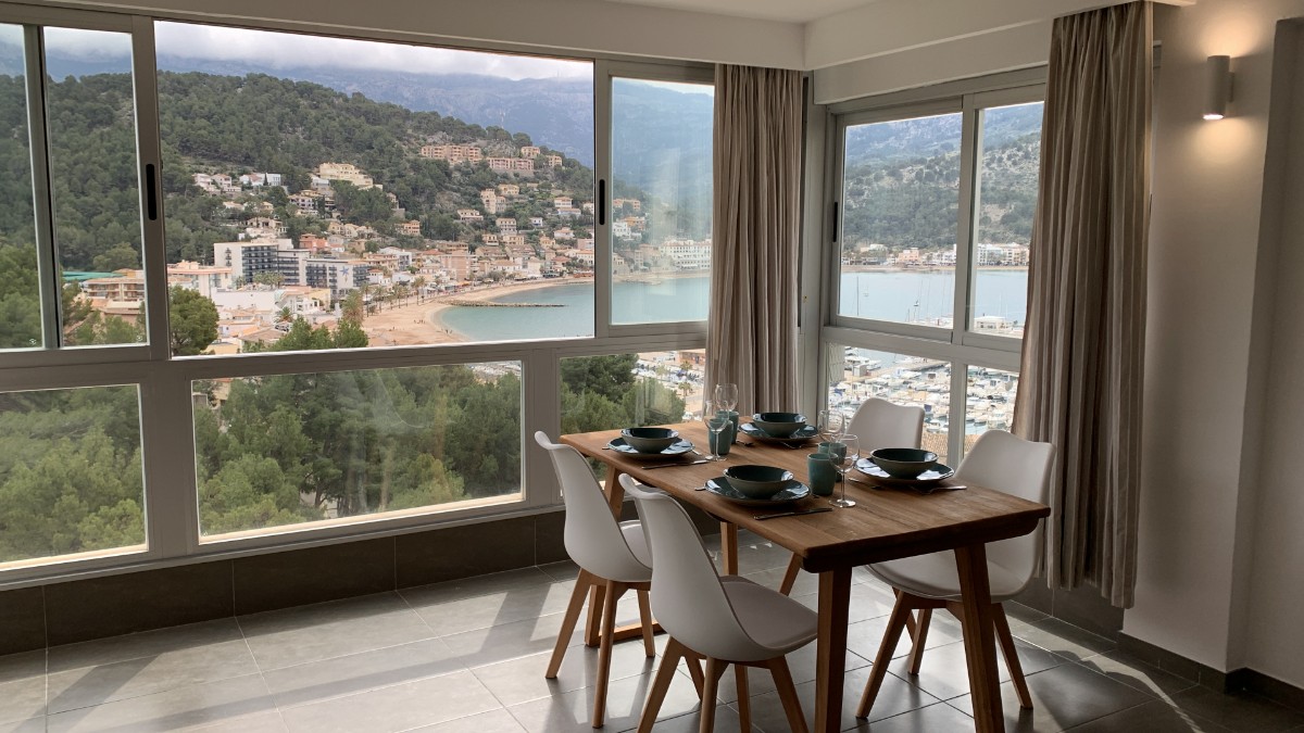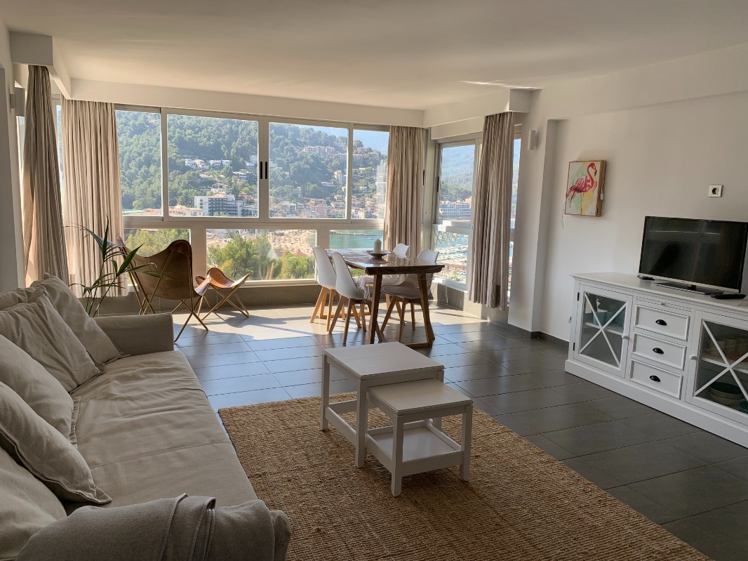 Sitting in elevated position of a small community of apartments in Cami des Cingle you find this lovely inviting apartment . The access is over a number of row of stairs !!! which is not ideal for disabled people, but definately worth the effort . The spacious living room offers an amazing overlook of the bay of Port de Sóller. Opening the glass front windows you recieve the feeling of beeing on a covered terrace, enjoying the breeze of the sea! Next to this apartment there is no other that visualy can intimate your privacy . There is one double bedroom ( 160x200 bed) , shower bathroom, kitchen , washing machine, Nespresso coffee maker, toaster and kettle. There is an electric cooker and microwave , but no oven. both living room and bedroom are equipped with AC hot and cold should you need it. There is further WIFI, Smart TV and all items you might need to spend an enjoyable stay in a perfect location. All the bars, restaurants, shops, and the beach are in less than 5 minutes walking distance and first ones just down the slope of the street. ESFCTU00000702800016141800000000000000000ETVPL/161167,