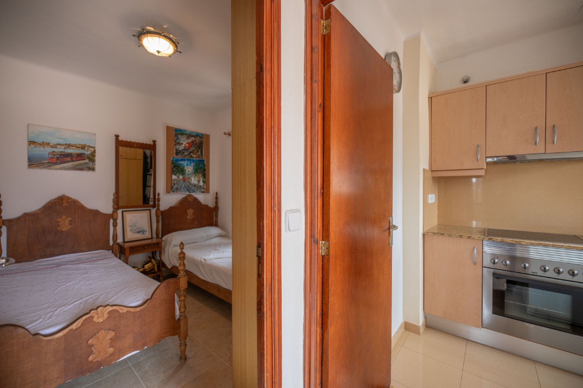 What a cozy-sounding apartment above Port de Sóller, with a beautiful view of the harbor and the great winter sun beaming in! This property, a gem from the 1970s, is a perfect blend of charm and potential. Imagine yourself in the living room with big window fronts, soaking in the breathtaking long-distance views while sipping your morning coffee. With two bedrooms, one bathroom, and a terrace for enjoying mediterranean sun, it's truly a serene retreat. Though in need of a little renovation, the well-preserved property has a timeless appeal. Accessible via just a few steps up from street level, this apartment offers a sense of tranquility and a promise of creating your dream space. This property is not just a place to live but a canvas waiting for your personal touch to turn it into a place you can truly call home.