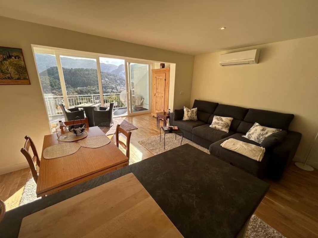 This charming studio artment offers stunning panoramic views towards the harbour of Port de Sóller and the mountain range. The spacious property features aprox. 56 m² of well-designed living space, distributed into a bright living-dining area with an open-plan kitchen, as well as a sleeping area. An open, welcoming space located in the heart of the Sierra de Tramuntana. Additionally, it includes a fully equipped spacious bathroom with inbuild wardrobes, and air conditioning. The highlight of the property is its approximately 12 m² terrace with electric sun screan, where you can enjoy the sun and the breathtaking views.