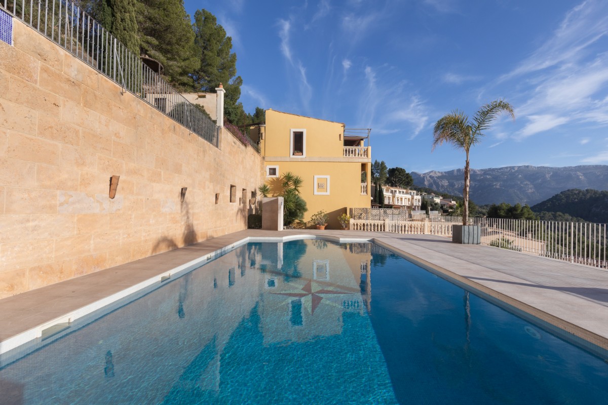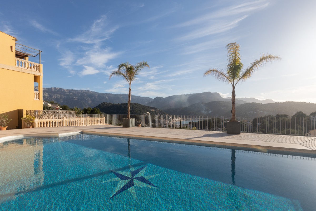 Located in the upper part of Port de Sóller, facing south , this little gem offers the perfect spot to relax and enjoy Mallorca`s best. The apartment of 45,70 qm netto living area offers an open plan kitchen , dining and sitting area leading out to the terrace. The bedroom has inbuild wardrobes and there is a modern bathroom with shower. Mostl likely one will be enjoying the whole of the day on the generous terrace area. Here there is a covered area with protection against too much sun and a garden area with sun loungers - perfect to reach a book and take a sun bath. For a refreshment the community offers an enourmous pool with sun deck area. This is accessed via a small gate directly from the terrace of the apartment. In the evening one can enjoy the view and the colour game of th emountains turning purple with a nice sun downer drink. This is Mallorca at its best. With ETV Rental Licence and one parking spot this is an interesting offer.