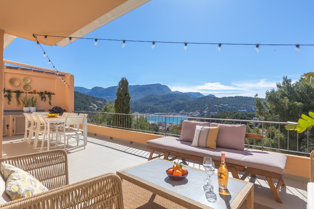 Located in one of the most desirable areas of Port de Sóller, this outstanding apartment offers a refined combination of comfort, contemporary style, and breathtaking panoramic views over the marina.