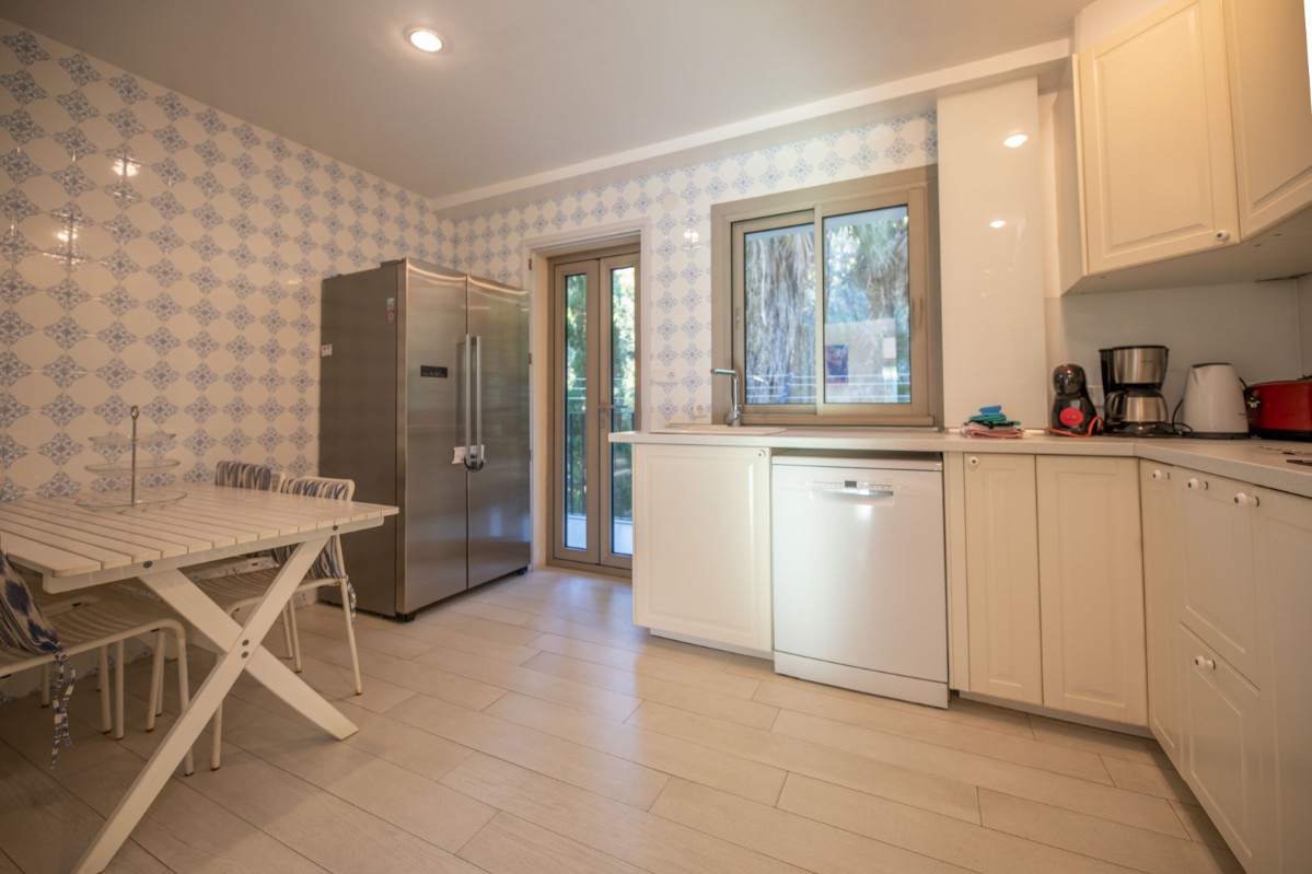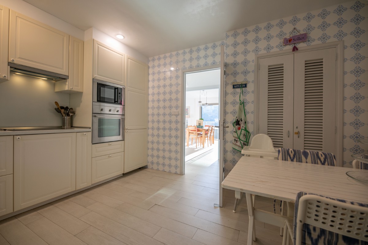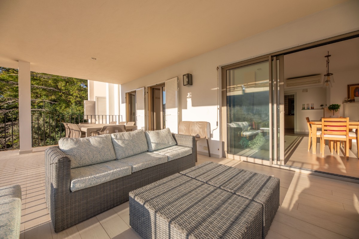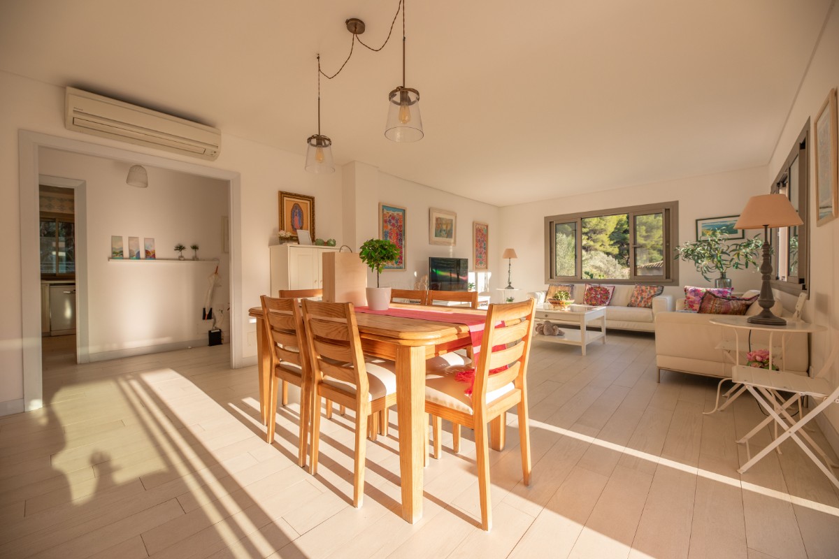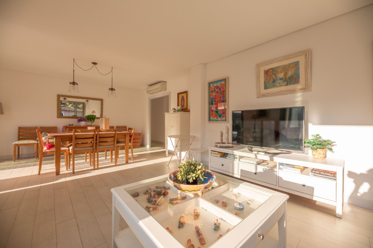 The apartment is located at only 200 metres from the first line of Port de Soller with its sandy beach. The building has seven flats sharing a huge plot with lots of parking and a good size pool area. Located on the second floor it enjoys a huge covered terrace where to live most of the time! Nice views to the mountains are available from the terrace and the light and bright living area is well equipped and nicely furnished. There are three double bedrooms with double beds and one more in another dobule bedrooms. The kitchen is totally equipped and has access to a back terrace where there is a washing machine and a dryer. There is hot and cold A/C all over the flat and there is free WIFI available. The elevator, the pool area and parking are also very convenient to make the flat very comfortable.