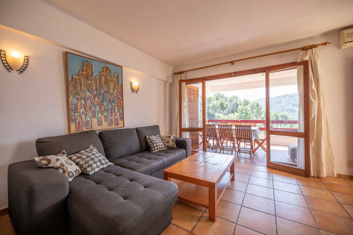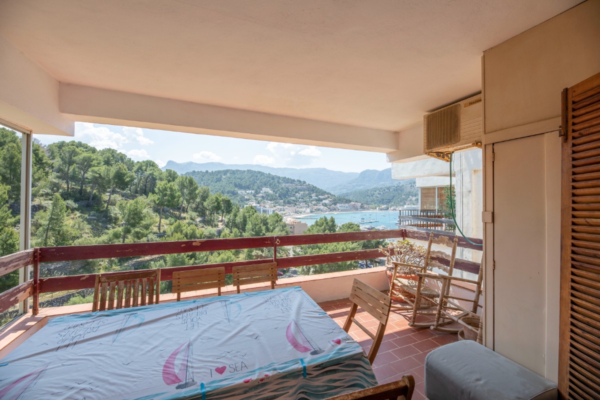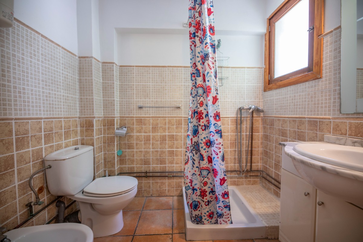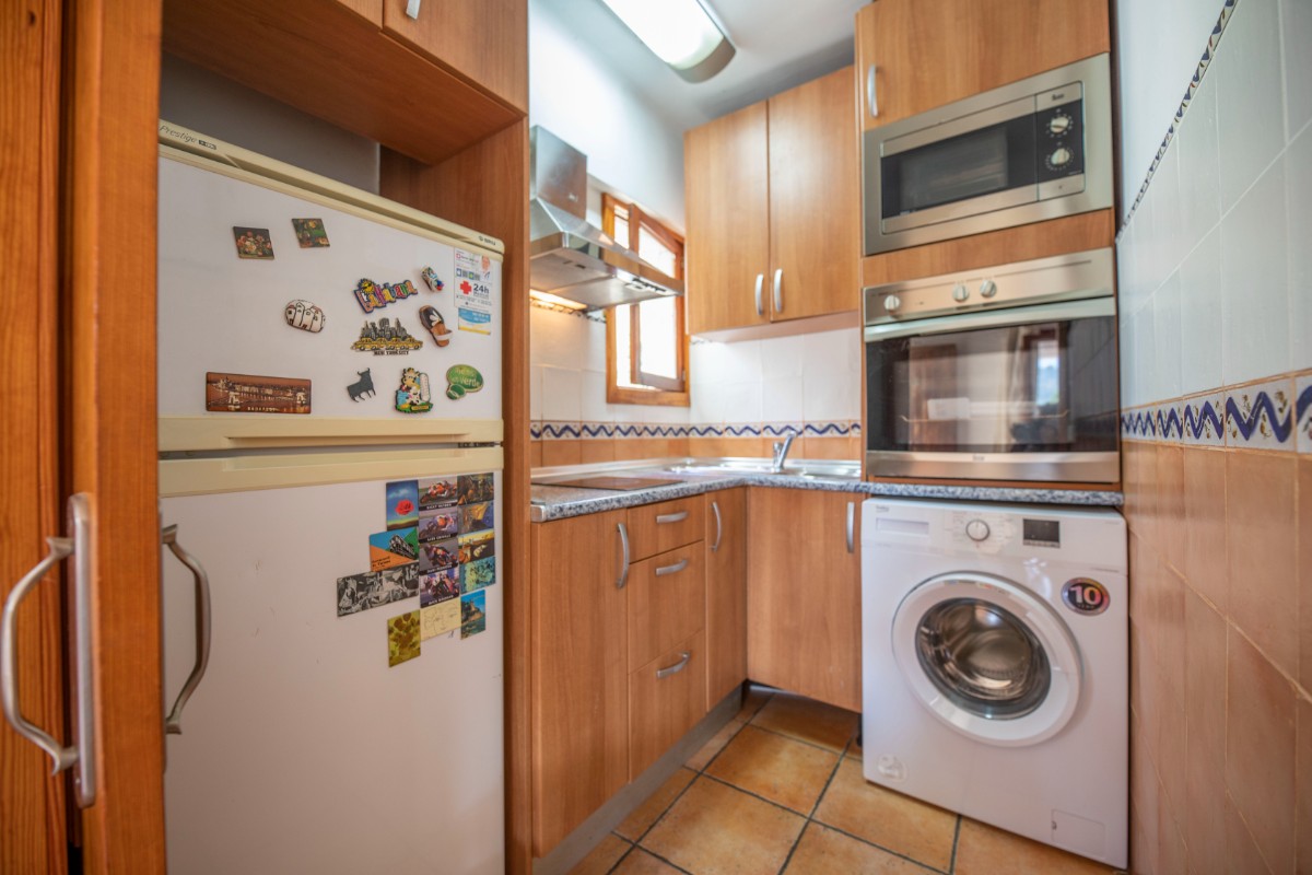 This flat is located on the 4th floor of a block of flats. The flat has a bedroom, a bathroom with shower, a living and dining room with access to the terrace and a small kitchen. From the terrace you have a wonderful view of the harbour. The beach, restaurants and cafeterias are only a few steps away. There is no lift. Two new air conditioning units have recently been installed and the window front has been replaced with new white PVC ones. The flat can be given a completely new modern feel with a new kitchen and bathroom. The location is worth this investment. It should be mentioned that a facade renovation is planned for winter 2024, which will give the entire apartment building a new, well-kept appearance. Stair railings have already been replaced.