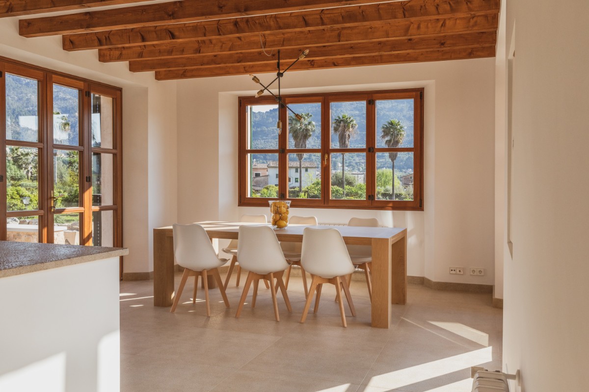 This property is about as close to perfection as they come in this valley. Located a 10-minute walk away from the center of Soller, this early-1900s house has been totally renovated and turned into an oasis of luxury and tradition. Fantastic kitchen with top notch appliances, large rooms with lots of natural lights and astounding views to the valley. Sun all day, from dawn until dusk so you can enjoy the outdoors barbecue, large pool and garden as well as the orchard, where you can pick your own oranges, lemons, apricots, prunes, etc. straight out of the trees. Energy conscious with solar panels used for electrical and hot water. 11x5 meters pool with cover. Plenty of parking space and all within walking distance to the town Centre.