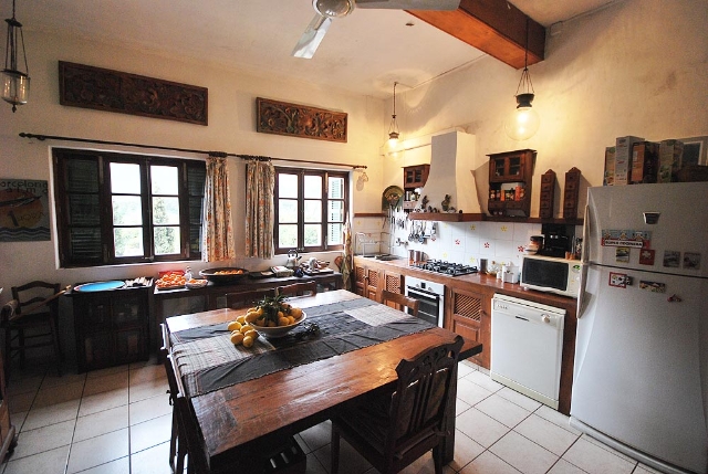 In the outskirts of Sóller, on the way to Port de Sóller, is this traditional mallorcan house located. The ground floor at the moment is commercial area with several rooms and a guest toilet. Over a staircase you reach the housing accommodations of the property. There is a big beautiful living room, spacious kitchen, one bathroom and one bedroom and a walk through bedroom. Over a staircase you reach up again to the tower room and the outside terrace. The situation of the property on the way to Port de Sóller makes this an interesting location for business.