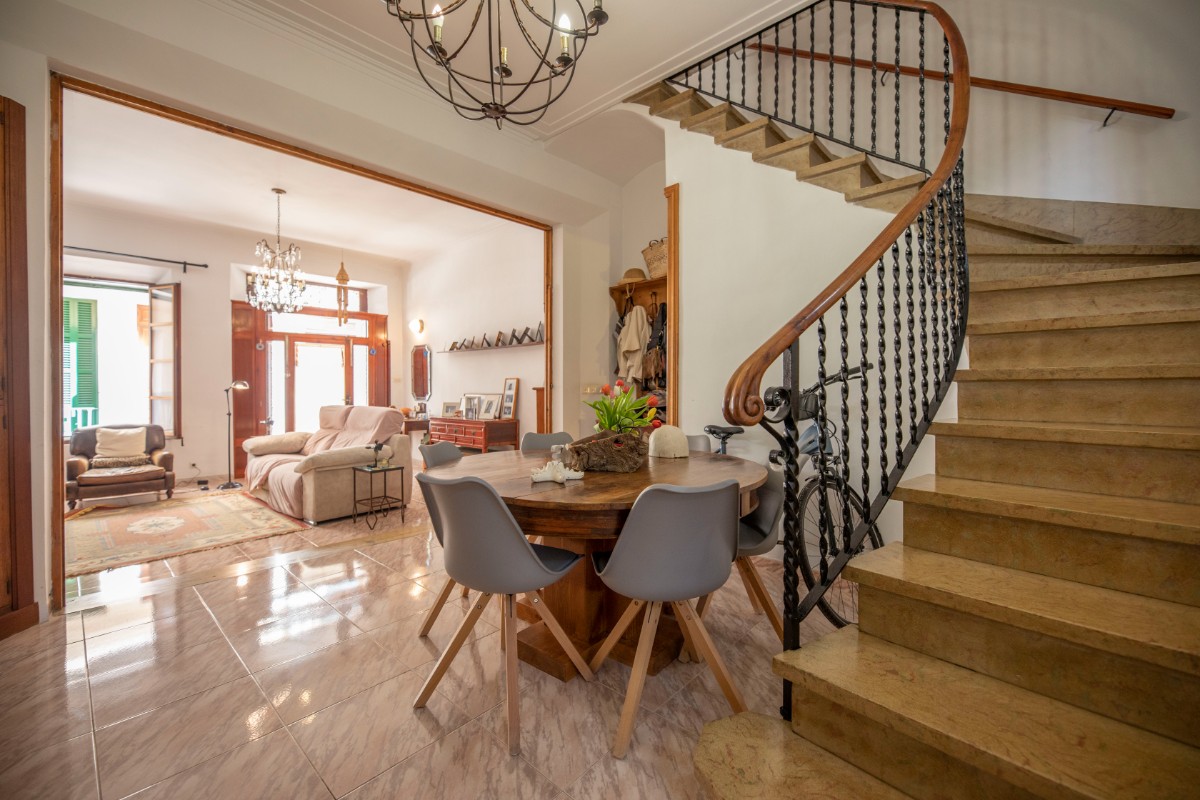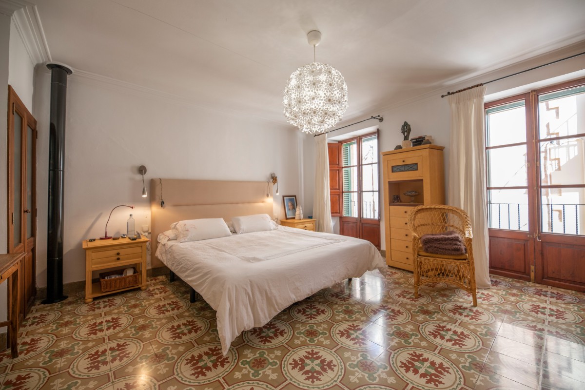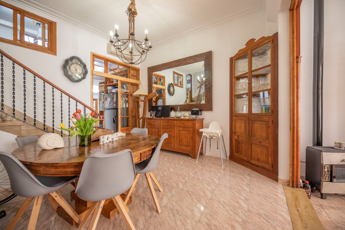 This large townhouse from the beginning of the 19th century is located just a stone's throw from the lively Plaza de Sóller with its numerous restaurants and shops. The house has three floors plus basement. On the ground floor there is a large living and dining room, the kitchen with adjoining small courtyard and a small bathroom with shower. On the mezzanine floor there is a small office - still from the old days when the house had a shop in the front. On the first floor there is a large bedroom with pretty original tiled floor, a large modern bathroom, a utility room and a terrace accessed from the bathroom. The first floor has two more large bedrooms. The installation includes air conditioning and a stove in the living area.