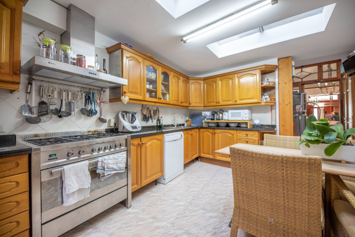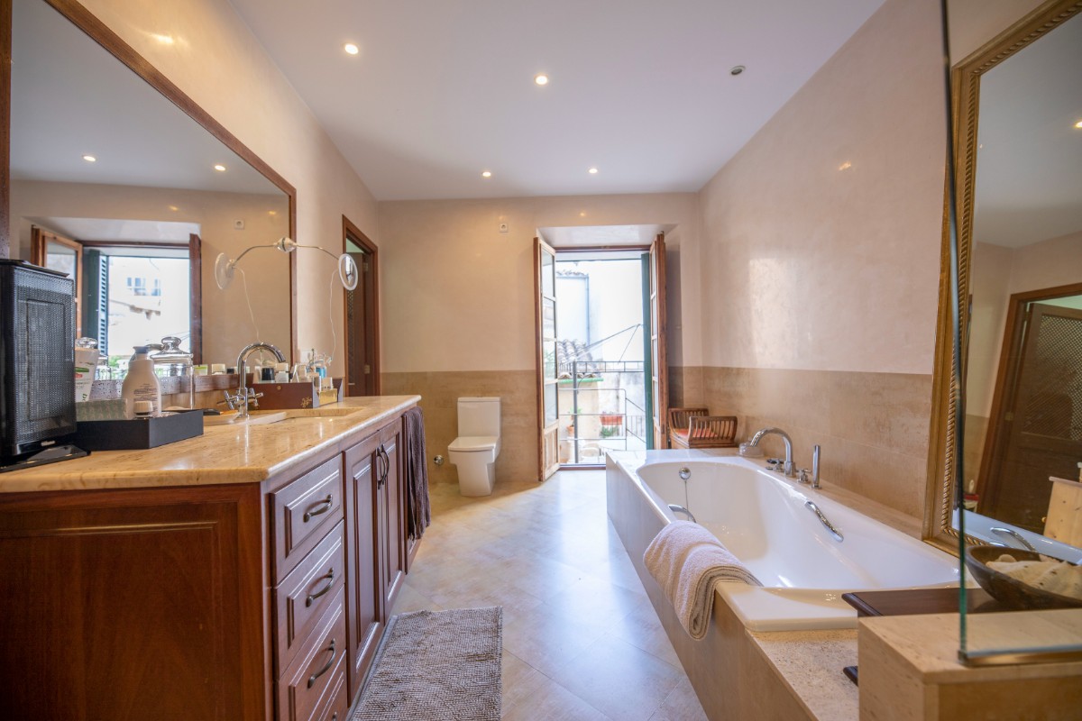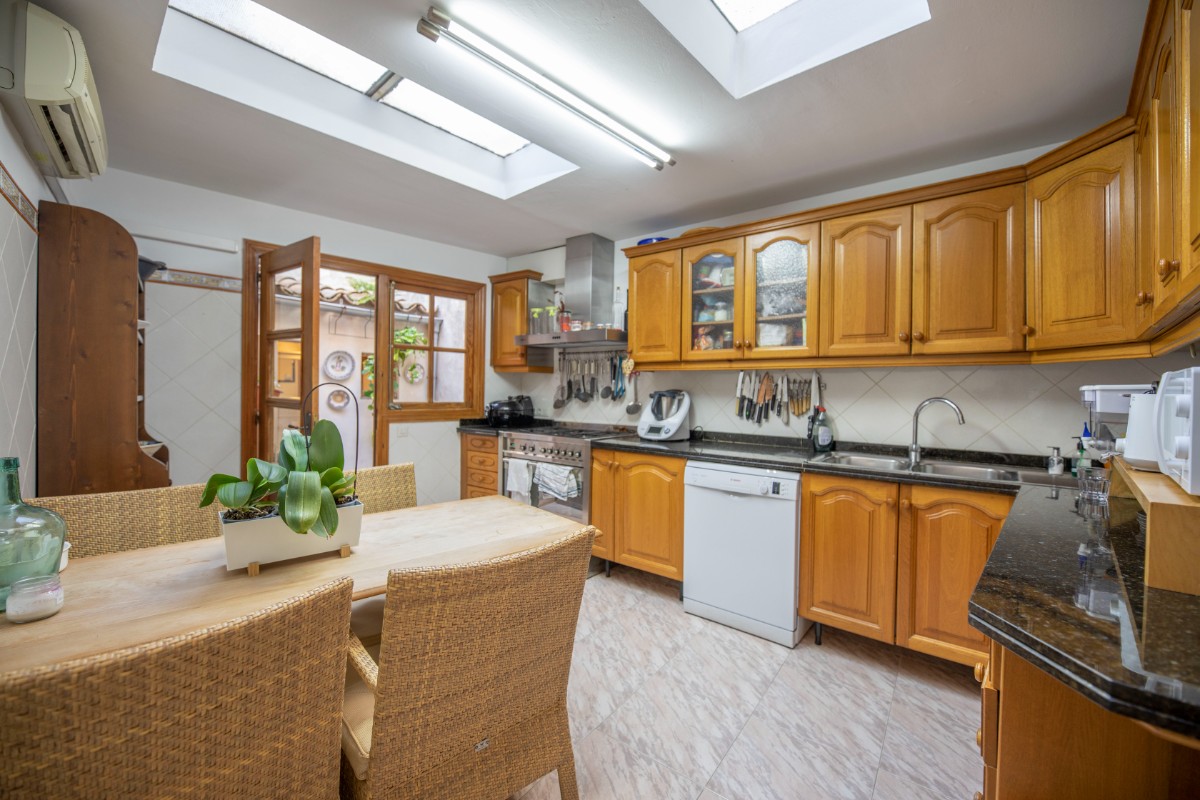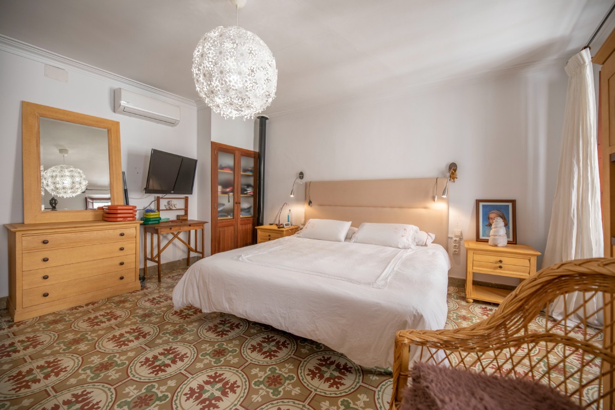 This large townhouse from the beginning of the 19th century is located just a stone's throw from the lively Plaza de Sóller with its numerous restaurants and shops. The house has three floors plus basement. On the ground floor there is a large living and dining room, the kitchen with adjoining small courtyard and a small bathroom with shower. On the mezzanine floor there is a small office - still from the old days when the house had a shop in the front. On the first floor there is a large bedroom with pretty original tiled floor, a large modern bathroom, a utility room and a terrace accessed from the bathroom. The first floor has two more large bedrooms. The installation includes air conditioning and a stove in the living area.