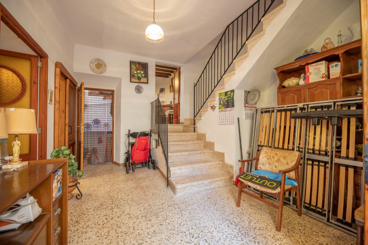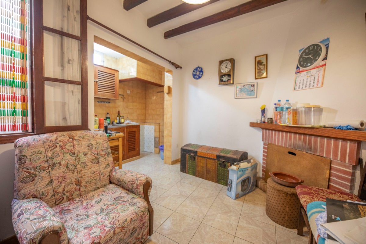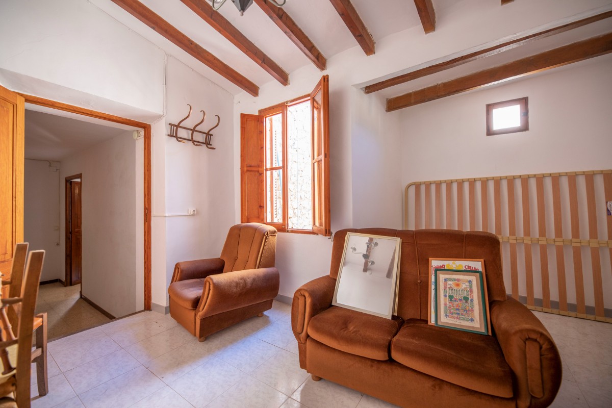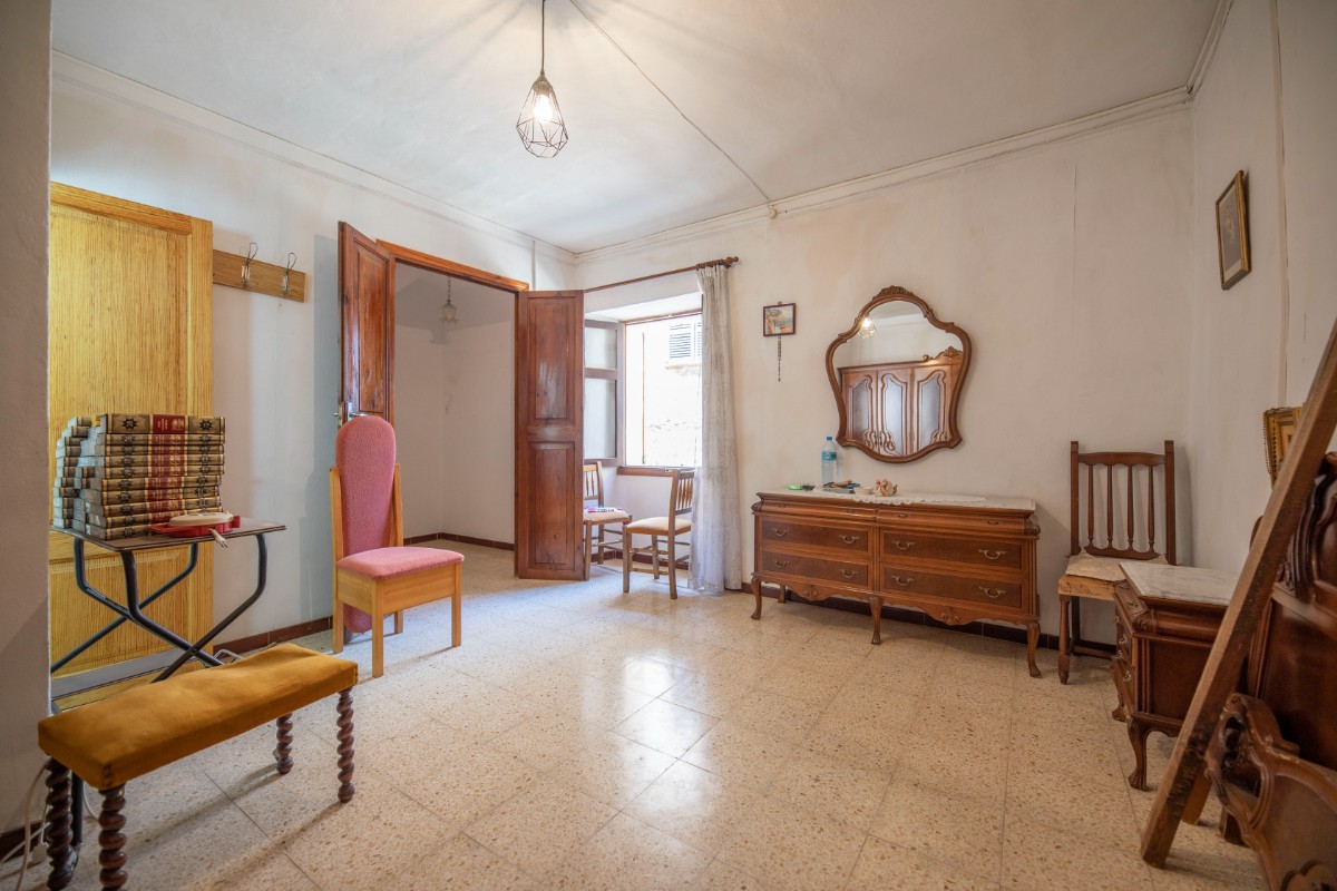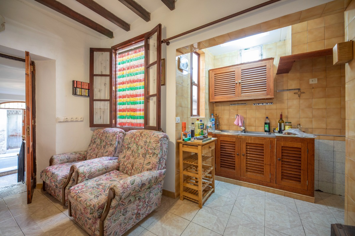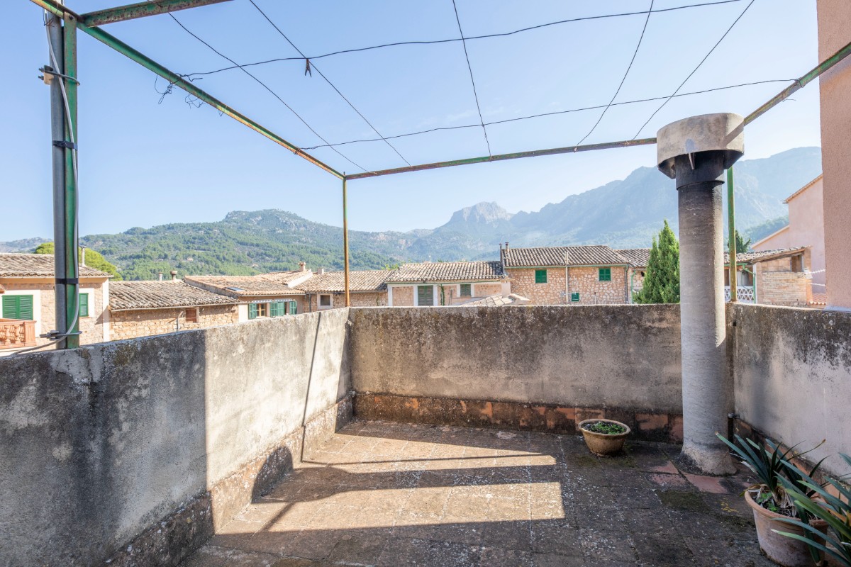 Traditional town house with natural stone facade in good condition, divided on the ground floor into entrance hall with adjoining small office, shower room, access to the cellar; dining room with fireplace and open kitchenette on a mezzanine floor, a double bedroom with WC en suite and a further bedroom on the first floor. The top floor offers space for more living area with access to a roof terrace. From the roof terrace there are wonderful views of the Tramuntana mountains.