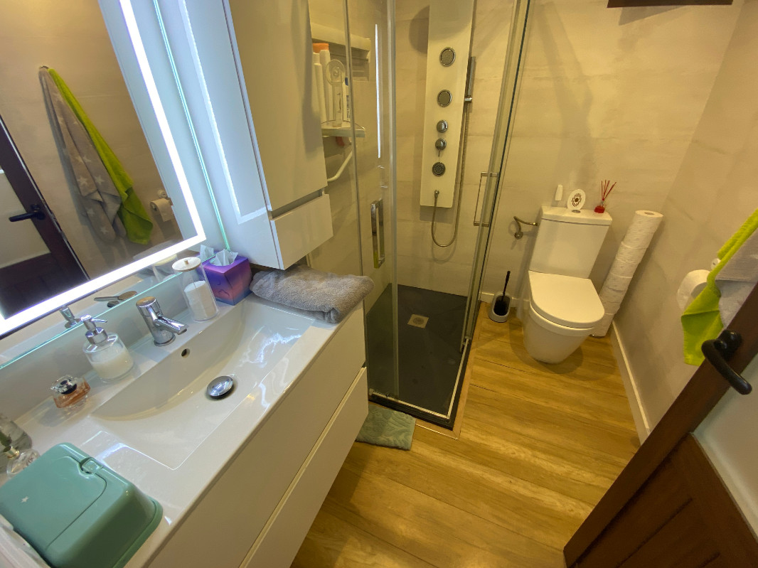 In the centre, completely renovated stone house with lift and distributed in entrance, living room, fitted kitchen with dining room, 2 bathrooms (one en suite), 2 bedrooms with fitted wardrobes. Beautiful mountain views.