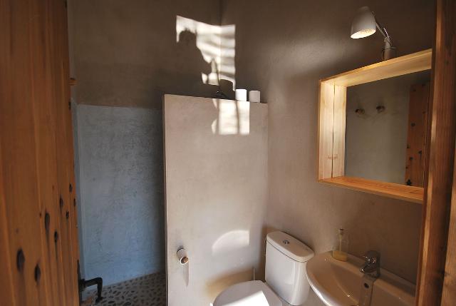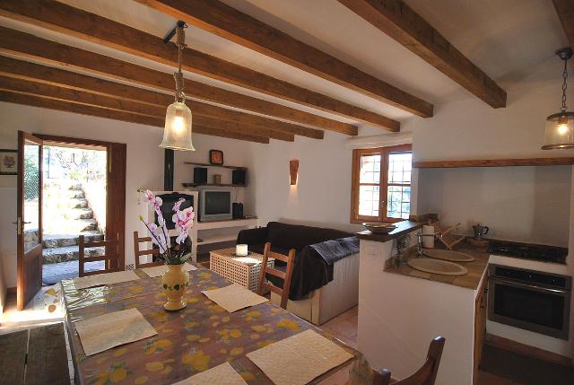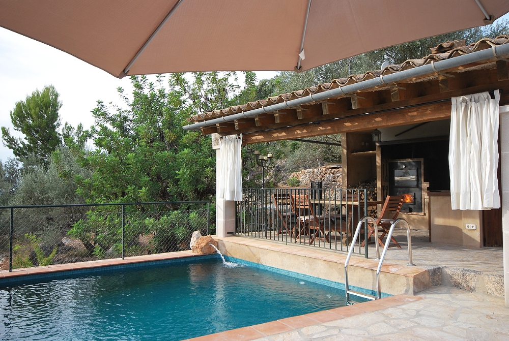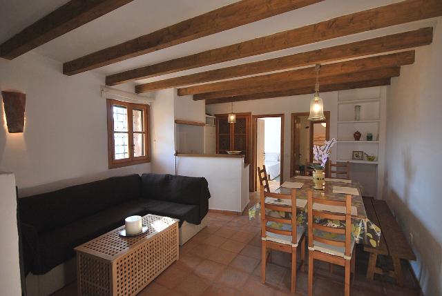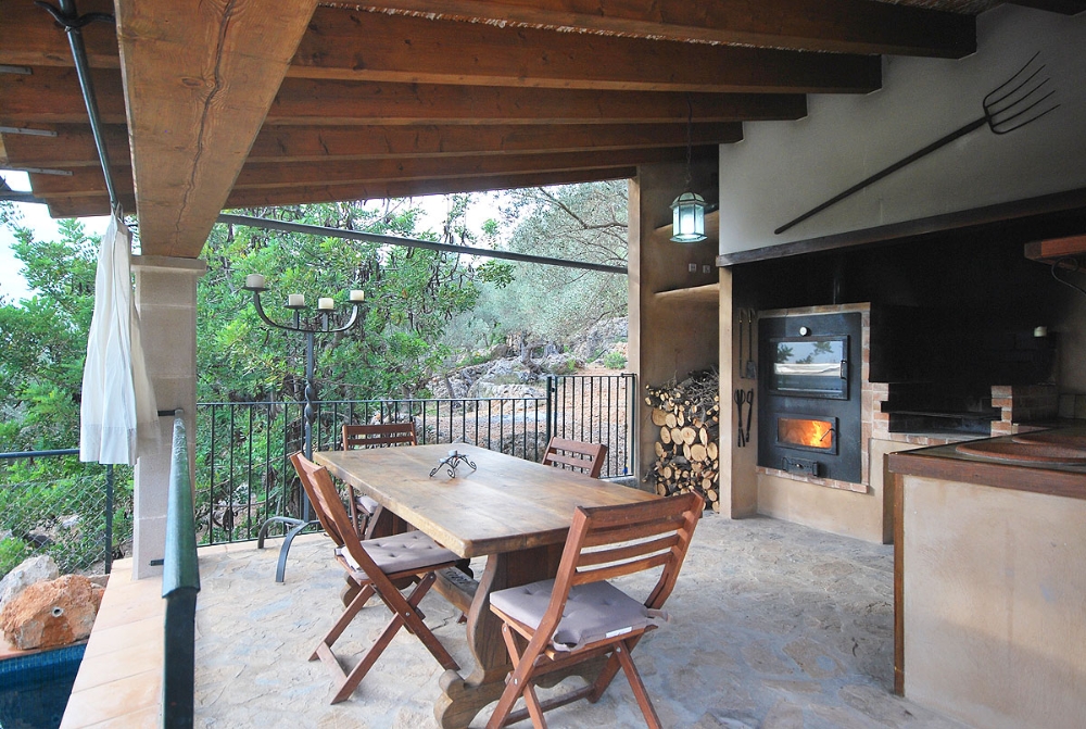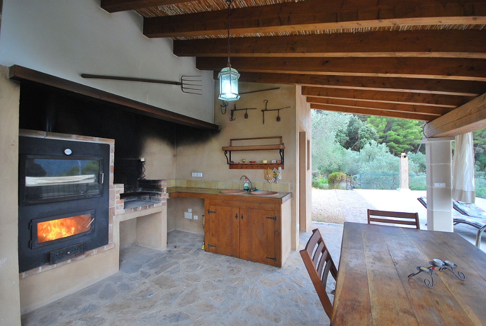 This cozy olive grove is located in the Ses Moncades area of the Sóller mountains. It's a 15-minute drive from the main road between Pollensa and Lluc to the cottage. The cottage has two bedrooms, one double with air conditioning and one single with bunk beds. It has an open-plan kitchen with a TV, DVD player, air conditioning, and a fireplace. The bathroom has a shower and a laundry room with a washing machine and dryer. The sunny terrace features a summer kitchen with a barbecue and another bathroom. It also has a small pool, ideal for cooling off. A small car is recommended for access to the house. It can be rented for a maximum of 11 months, utilities not included.