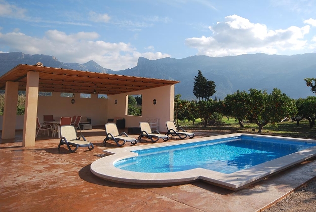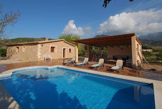 Great country house that is located on the grounds of a finca with orange production. The location outside of Sóller in the area called Can Ai enables to walk to the village in 30 minutes. Further there is a halt for the little tram between Sóller and Port de Sóller which is at few minutes walk. The house has been recently build new and offers now a 2 bedroom -2 bathroom house with nice spacious living dining area and open plan kitchen. Next to the house you find a great pool area with covered terrace where to enjoy the mountain views and the sun the whole day. The property is equipped with Satelite TV with european programms and 2-3 english news channels, air conditioning warm/cold and Internet access.