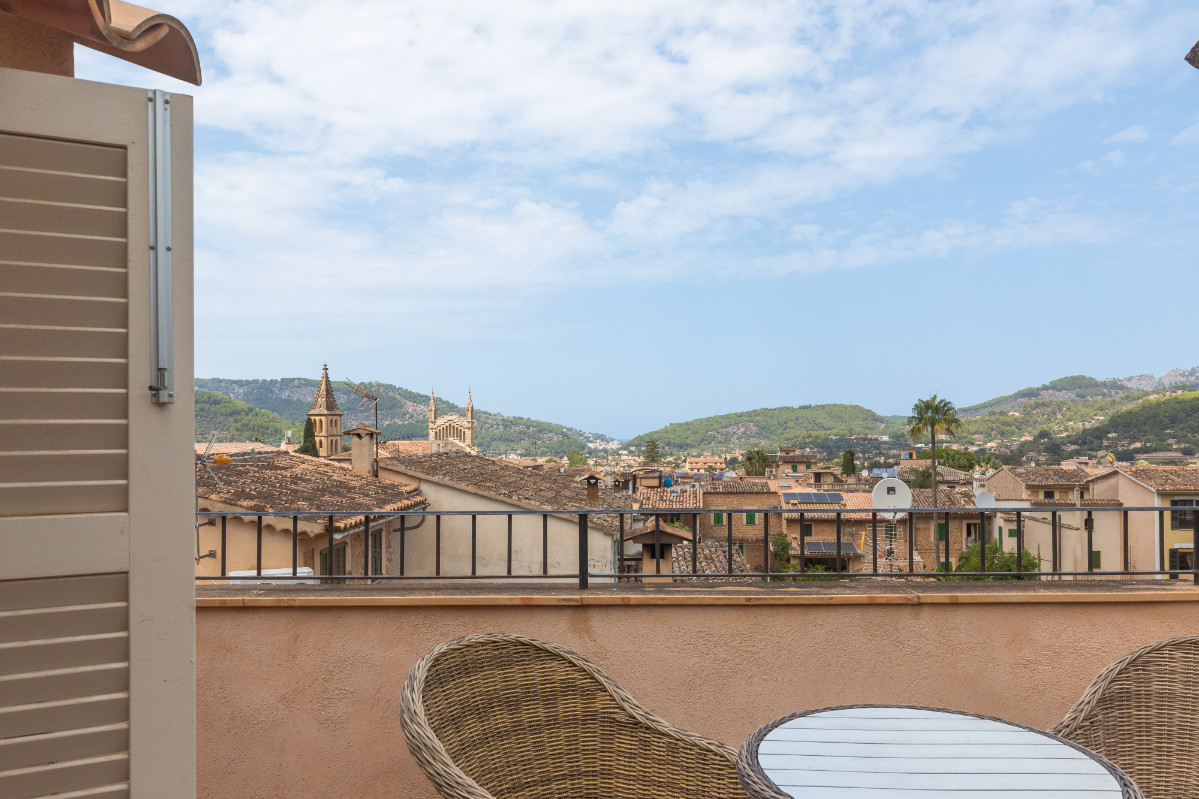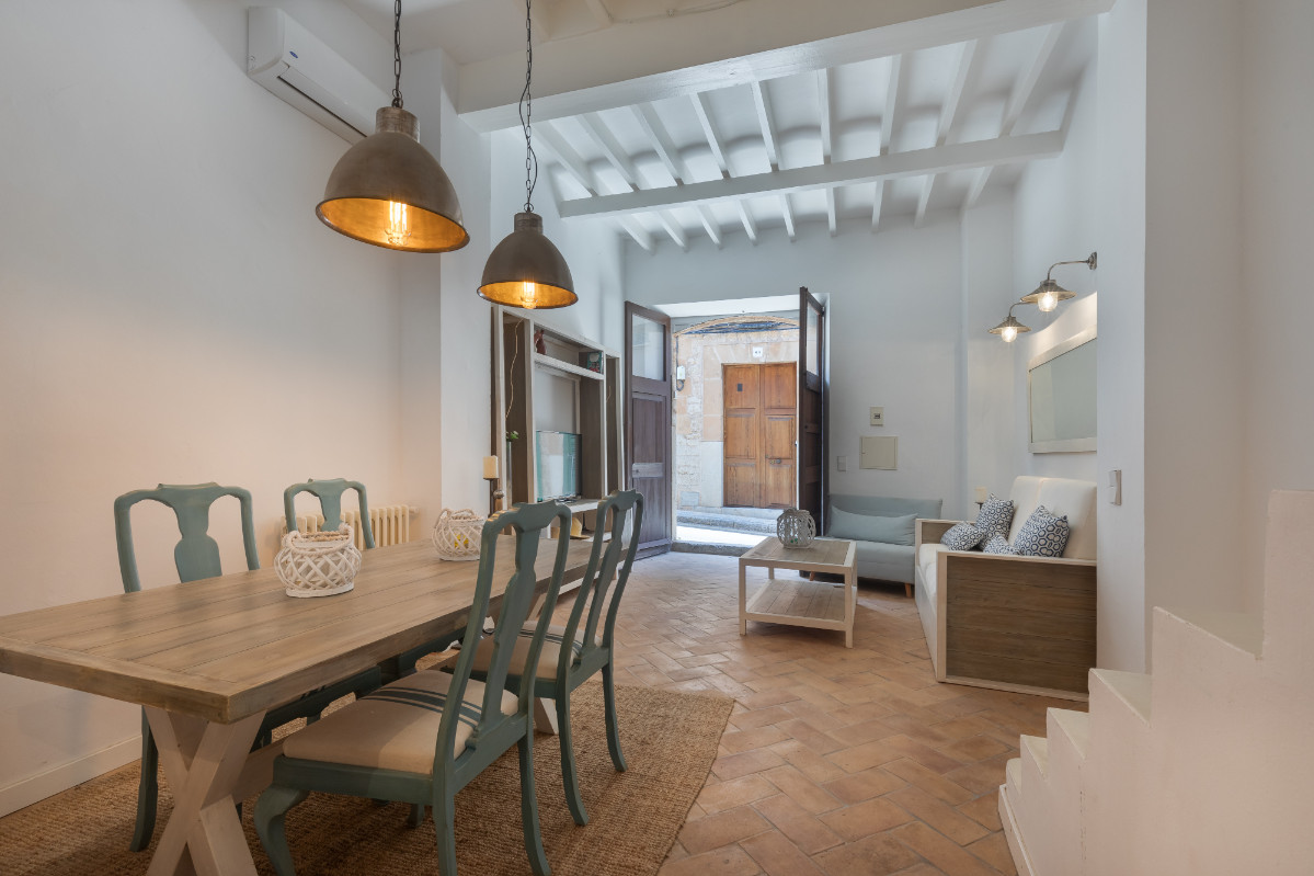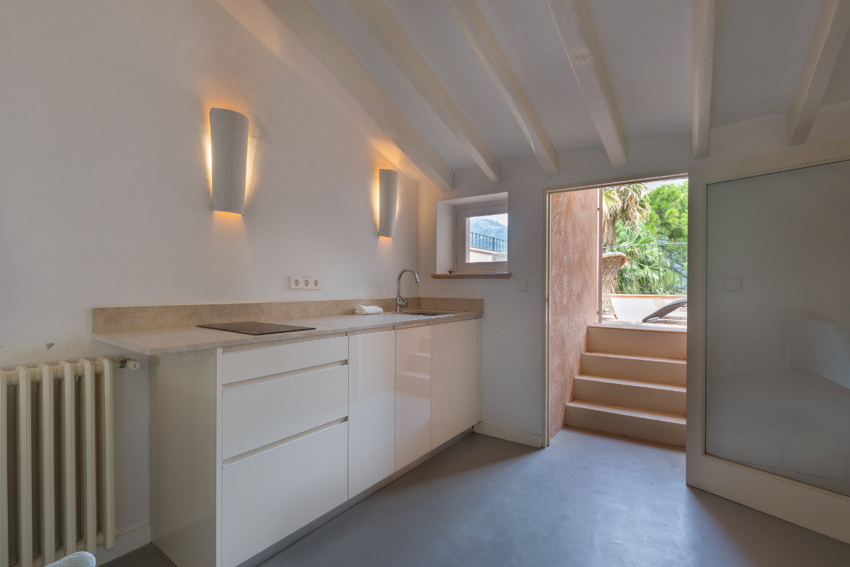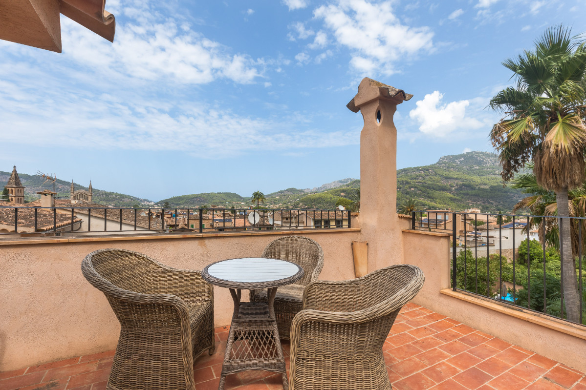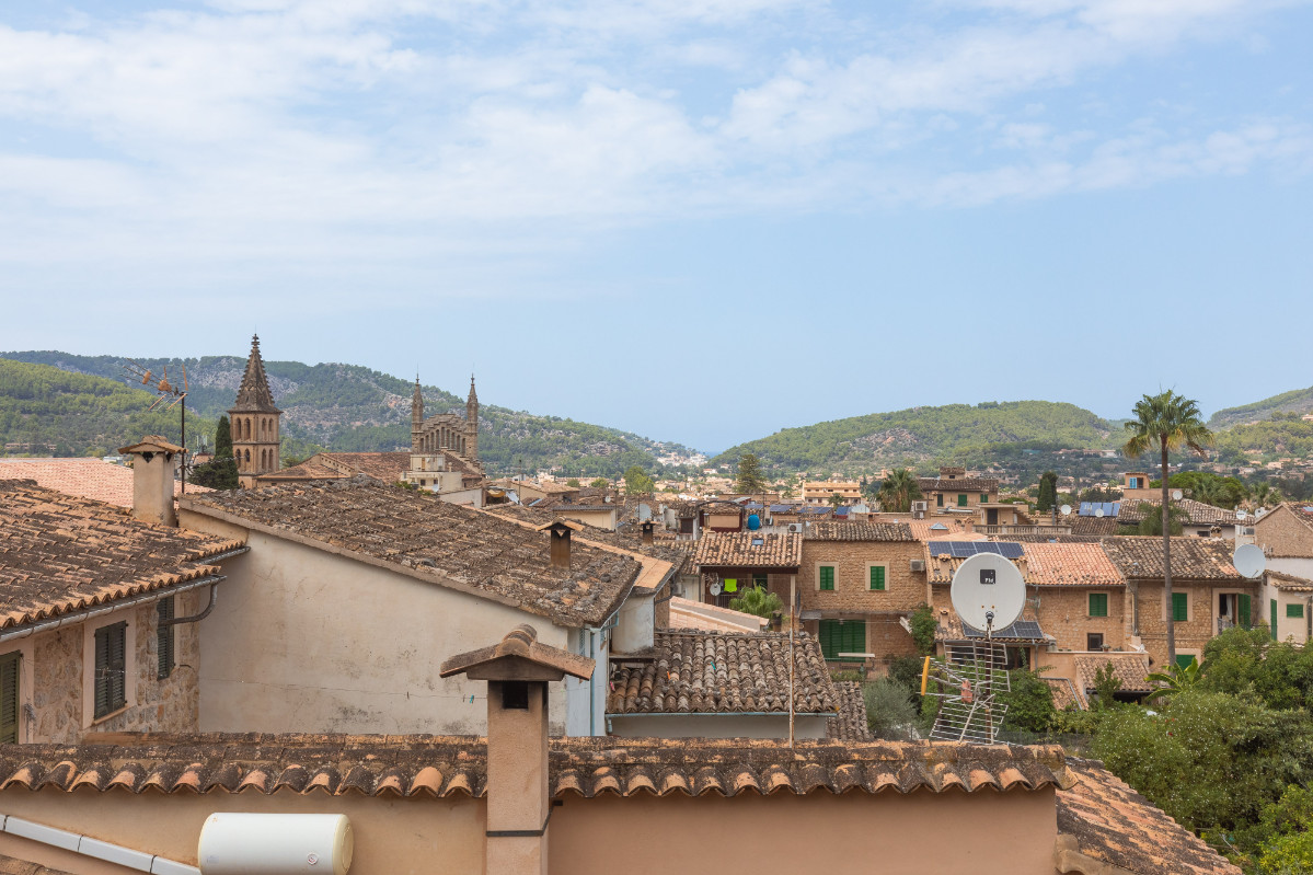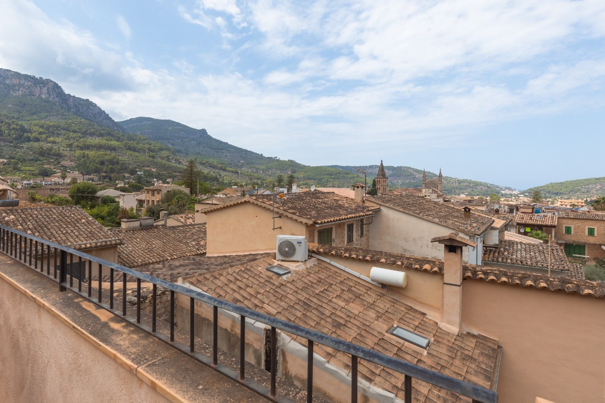 This bright and central townhouse was totally renovated a few years ago. Located in a quiet street at only a few meters away from the main square of Sóller, the house offers two double bedrooms and a studio room with a kitchenette and access to a terrace with spectacular views to the mountains. The house is very well equipped, with a central heating plus A/C warm cold in all rooms. On ground floor it has one of the two living rooms and the kitchen, as well as a guest toilet off the tiny court yard. On the upper floors it has the two bedrooms and one full bathroom totally new. On the top floor the studio room is really spacious and could easily be used as a third bedroom. From this level one can access to the terrace. Good opportunity to purchase a traditional townhouse totally renovated.