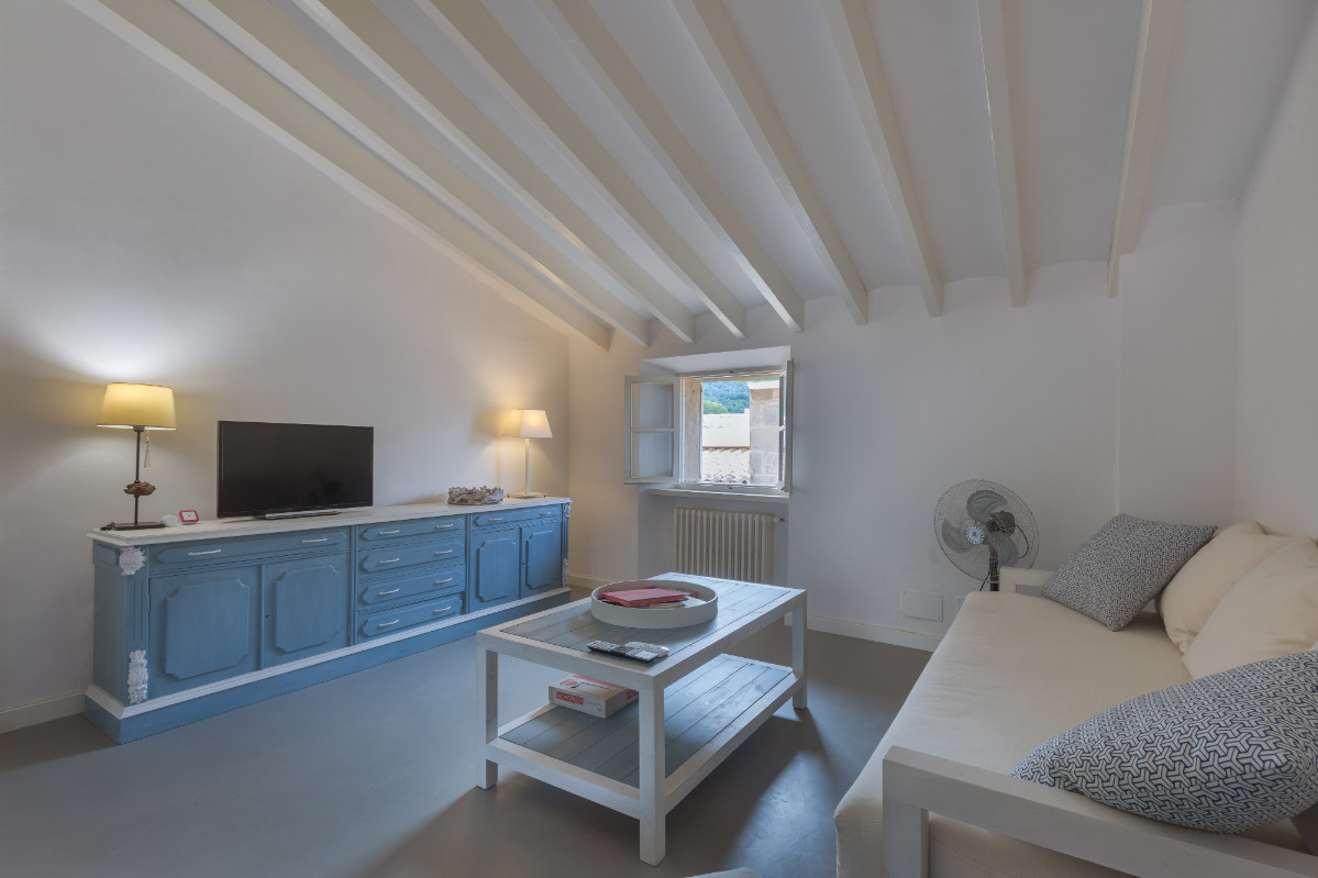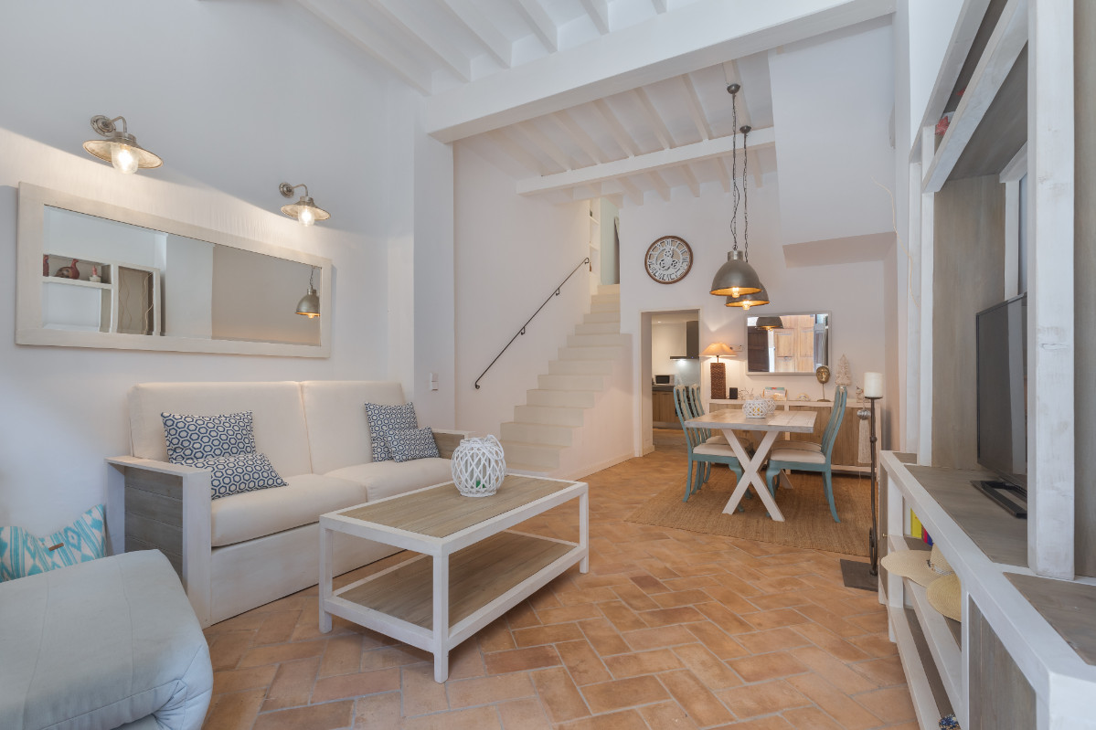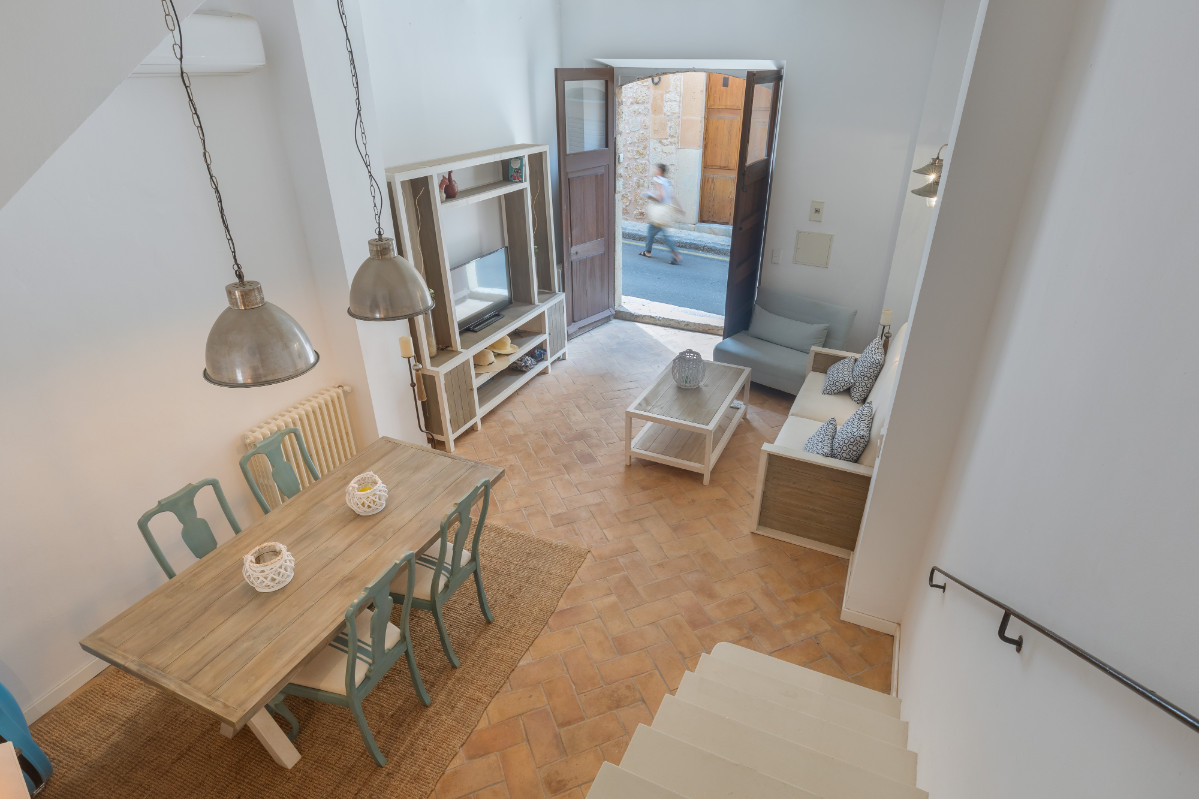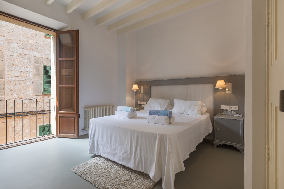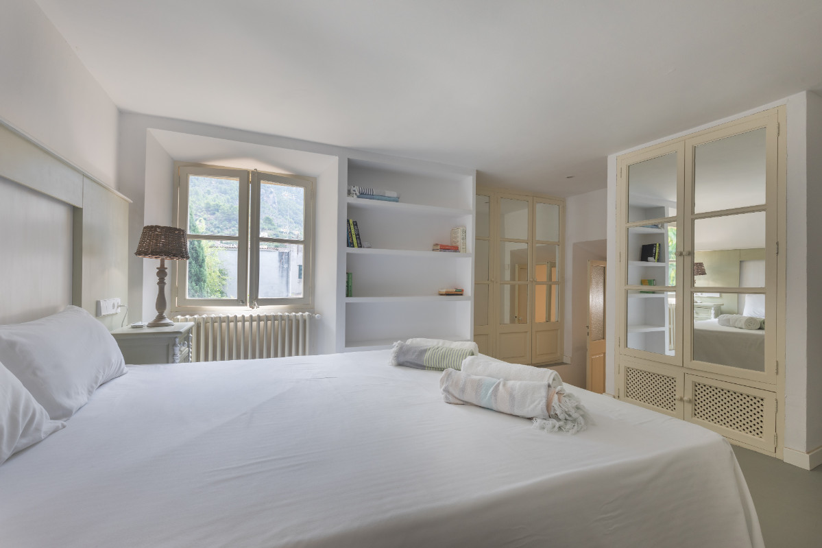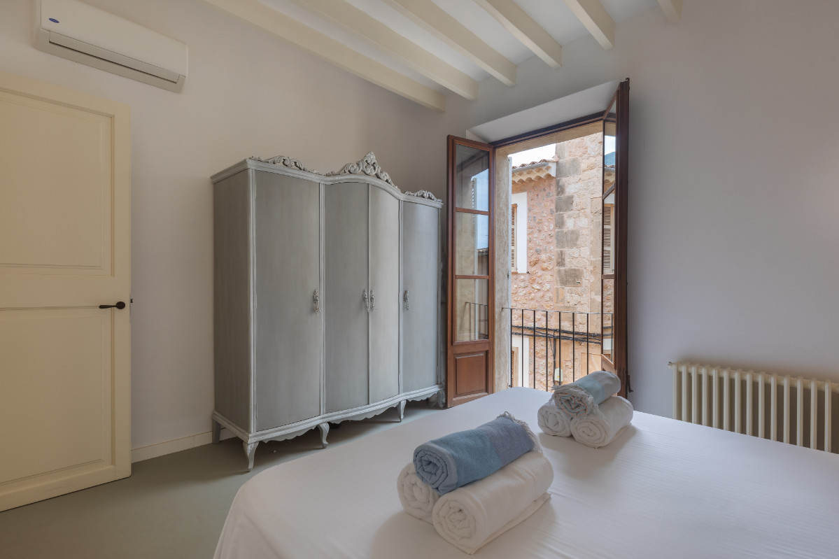 This bright and central townhouse was totally renovated a few years ago. Located in a quiet street at only a few meters away from the main square of Sóller, the house offers two double bedrooms and a studio room with a kitchenette and access to a terrace with spectacular views to the mountains. The house is very well equipped, with a central heating plus A/C warm cold in all rooms. On ground floor it has one of the two living rooms and the kitchen, as well as a guest toilet off the tiny court yard. On the upper floors it has the two bedrooms and one full bathroom totally new. On the top floor the studio room is really spacious and could easily be used as a third bedroom. From this level one can access to the terrace. Good opportunity to purchase a traditional townhouse totally renovated.