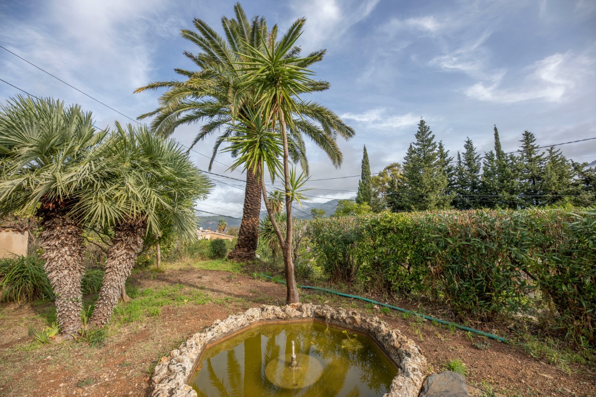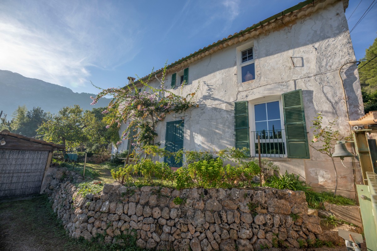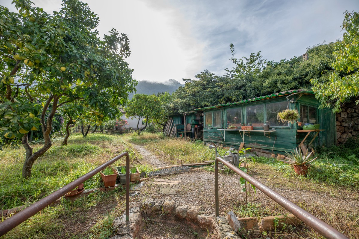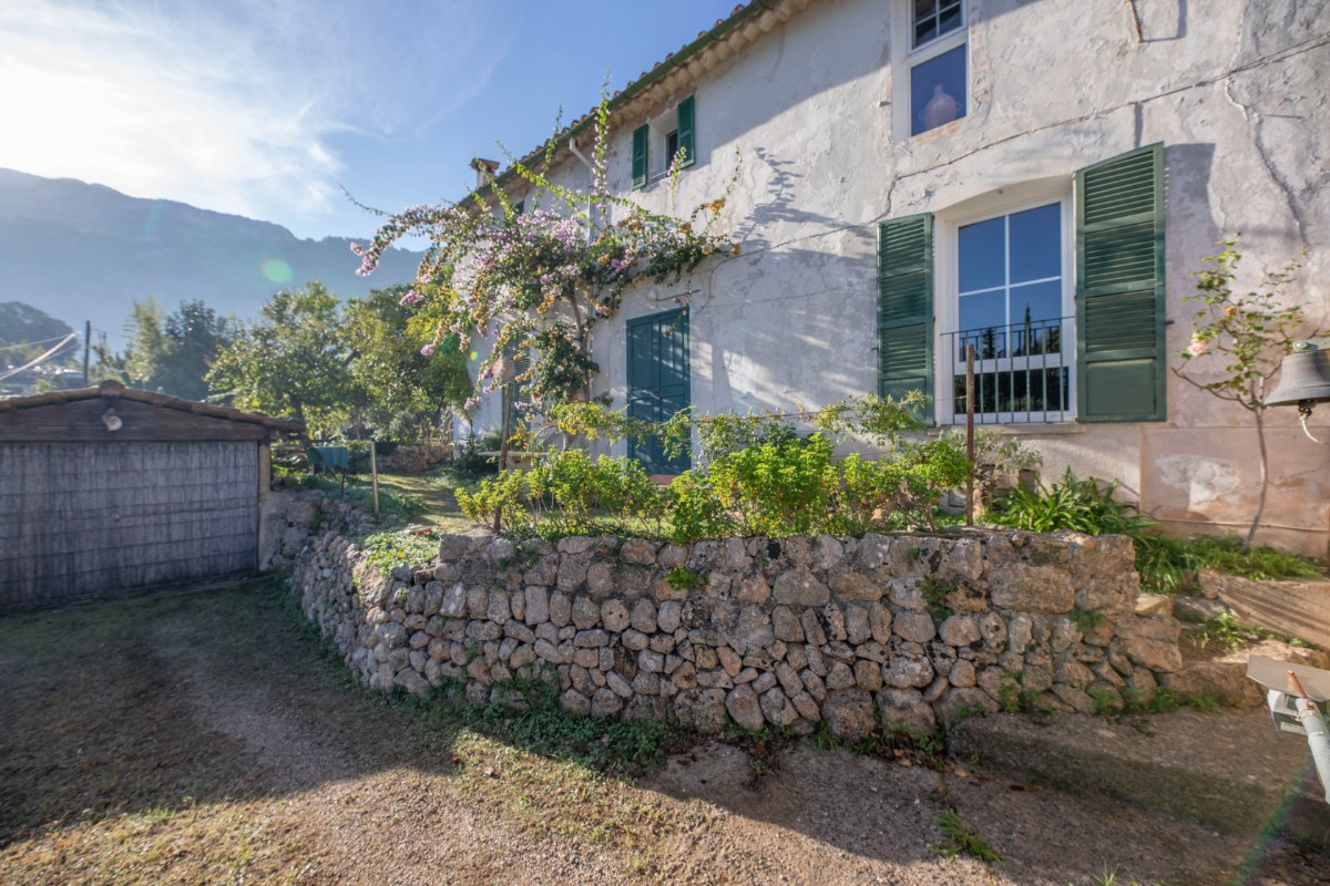 This charming detached house is located on the outskirts of Sóller and, thanks to its elevated position, offers a wonderful panoramic view over the valley of Sóller and the Tramuntana mountains. The house has a constructed area of approx. 253 m2 and the plot has approx. 1.077 m2. On the ground floor there is an entrance area, a living room and a dining room with access to the kitchen. On the first floor there are three bedrooms and two bathrooms. The large garden can be accessed from almost all rooms. The house is in need of renovation. There is a registered water right of 30 minutes per week from the Can Redó i de Cal Diable well. A special property with a wonderful garden in a very beautiful location.