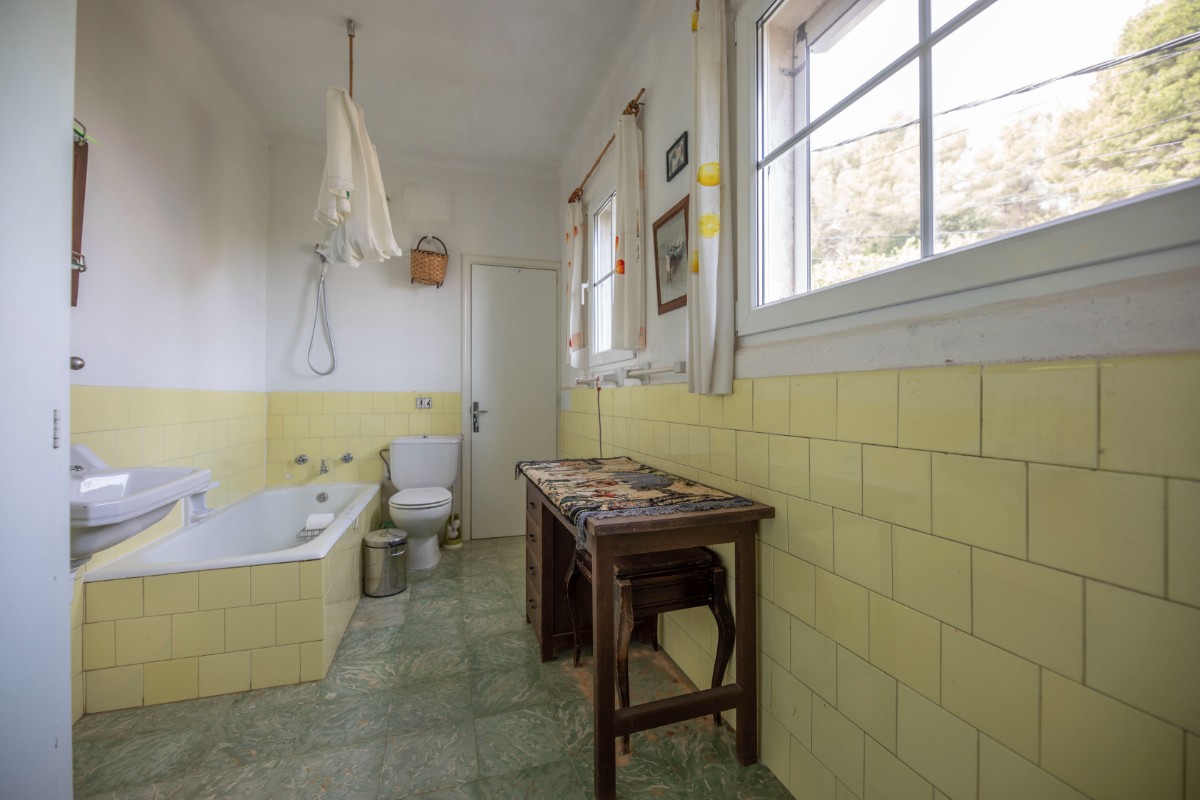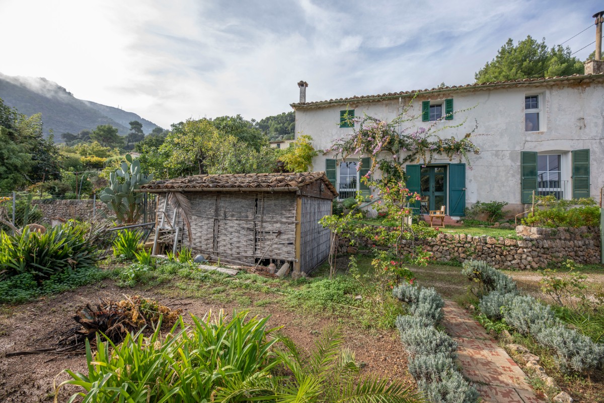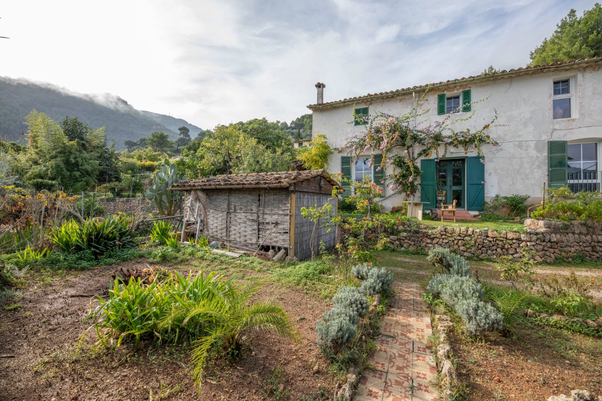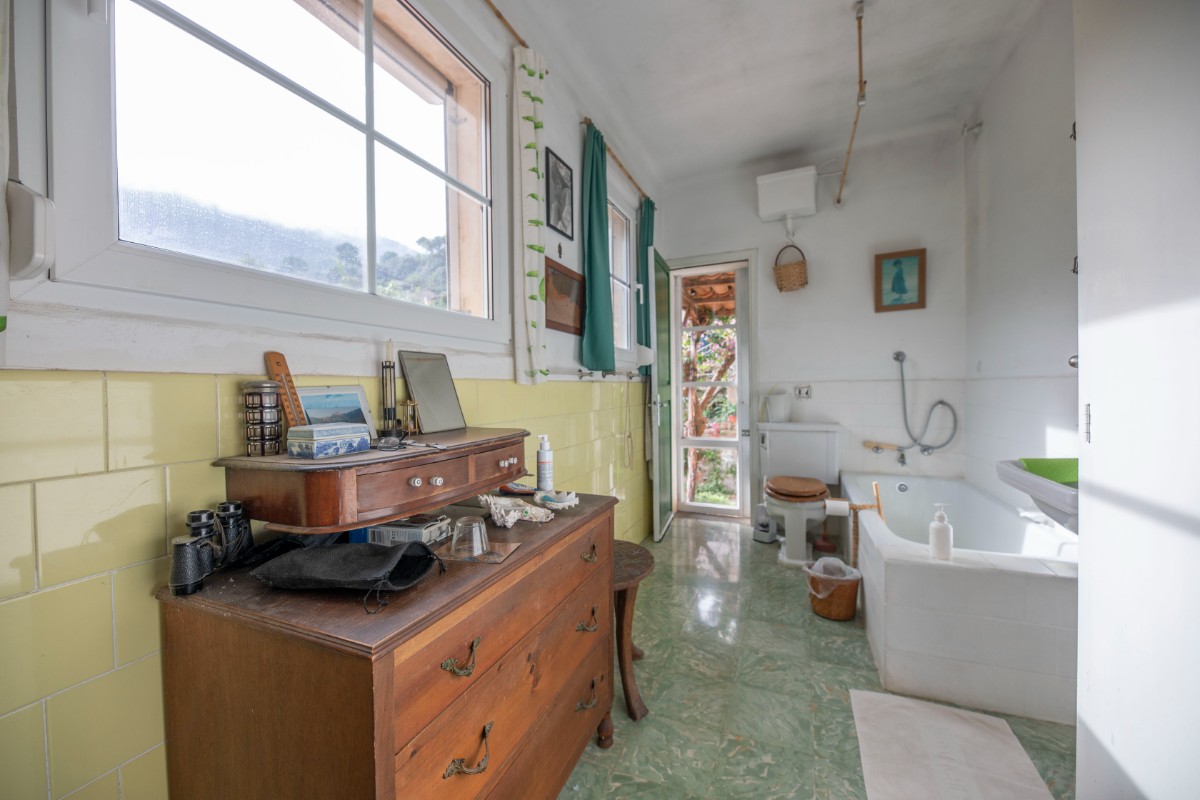 This charming detached house is located on the outskirts of Sóller and, thanks to its elevated position, offers a wonderful panoramic view over the valley of Sóller and the Tramuntana mountains. The house has a constructed area of approx. 253 m2 and the plot has approx. 1.077 m2. On the ground floor there is an entrance area, a living room and a dining room with access to the kitchen. On the first floor there are three bedrooms and two bathrooms. The large garden can be accessed from almost all rooms. The house is in need of renovation. There is a registered water right of 30 minutes per week from the Can Redó i de Cal Diable well. A special property with a wonderful garden in a very beautiful location.
