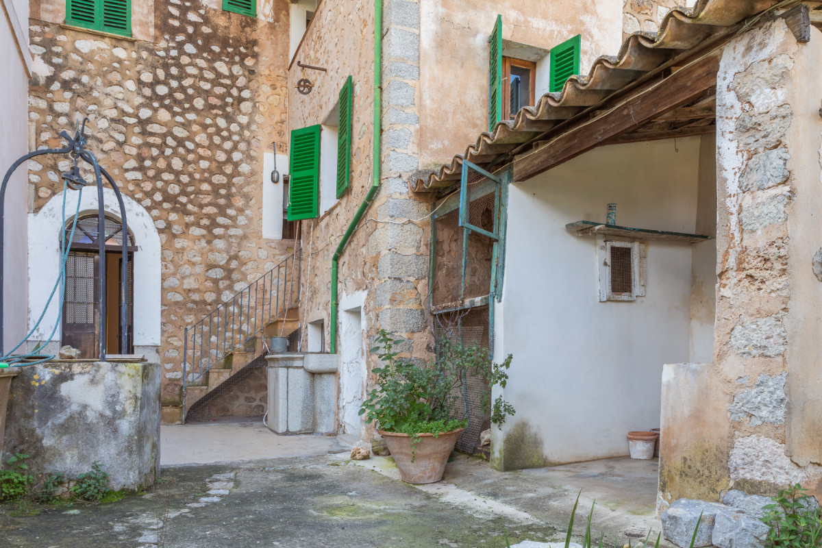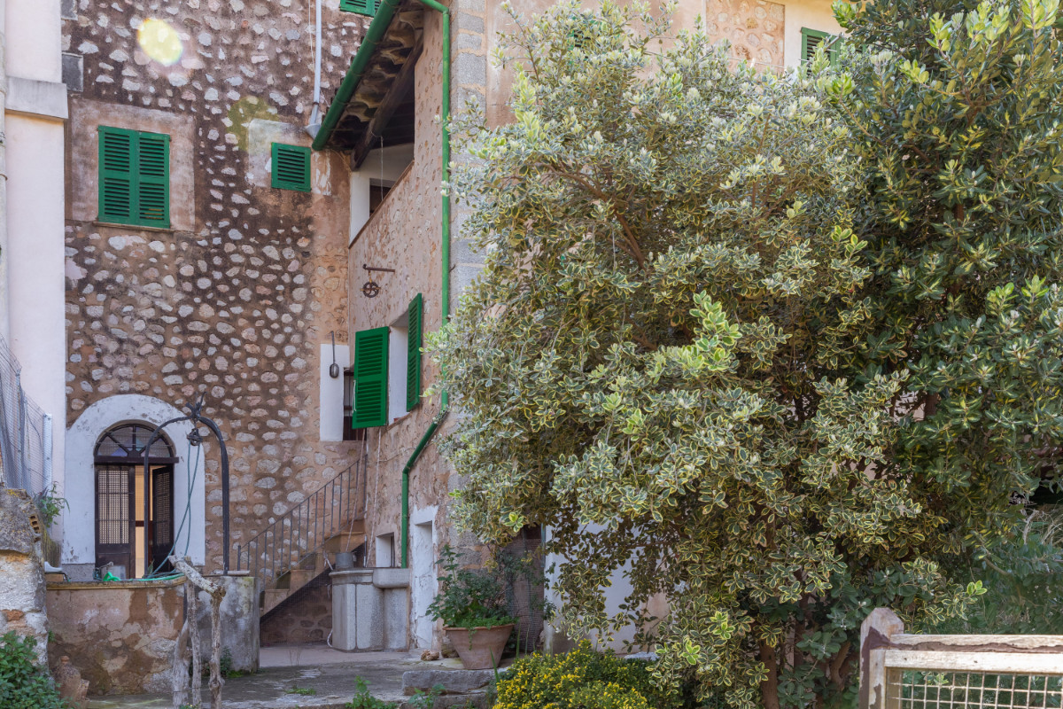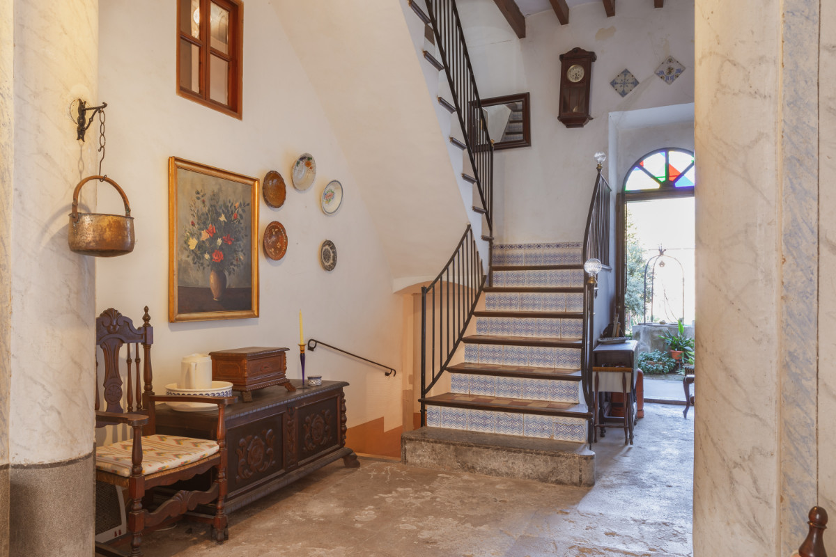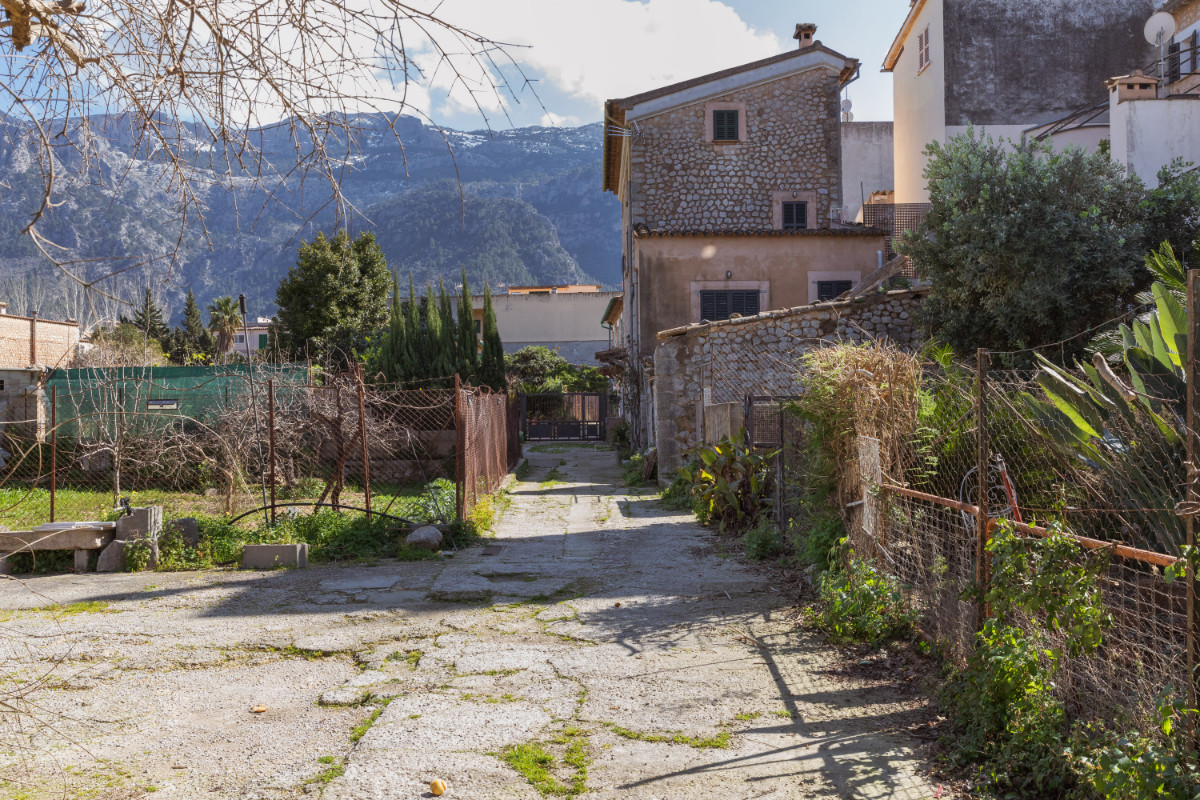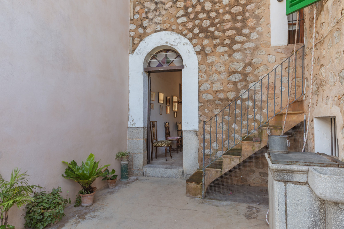This large townhouse is located in the centre of Sóller, about 5 minutes walk from the village square. On three floors there are living and dining rooms, kitchen, four bedrooms and a bathroom. The house is very well preserved and still offers the original materials and structural elements. You enter an authentic Mallorcan "entrada" with original stone floor, the pretty staircase and round arch. The house has an outdoor terrace and fountain element typical of townhouses. Directly behind, separated from the house by a narrow driveway, there is a large garden with parking for several vehicles. An interesting renovation object.