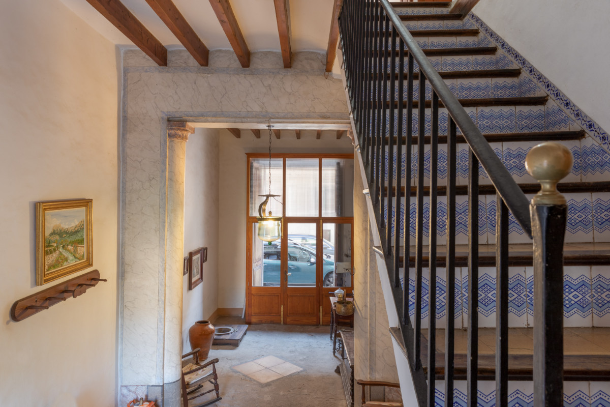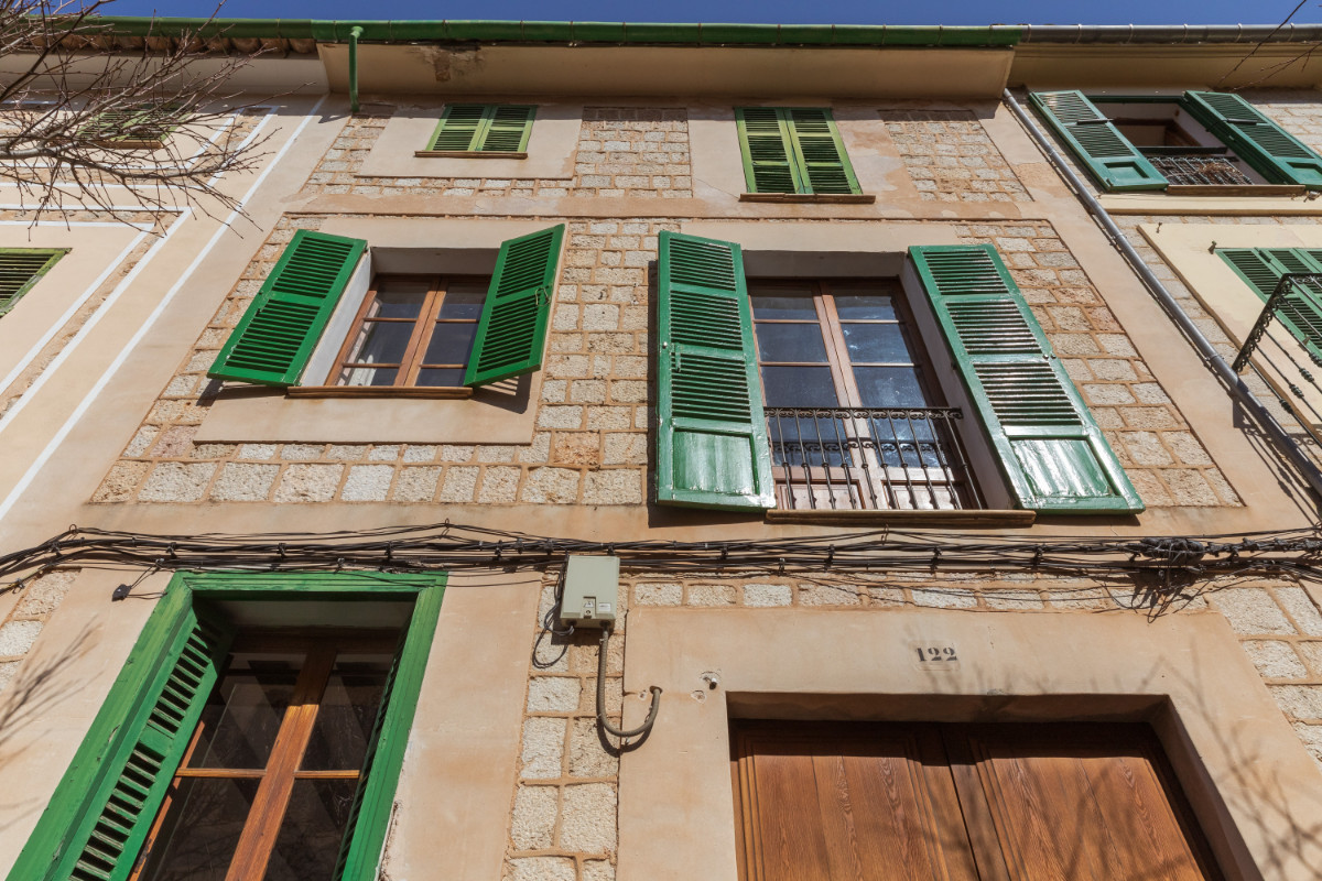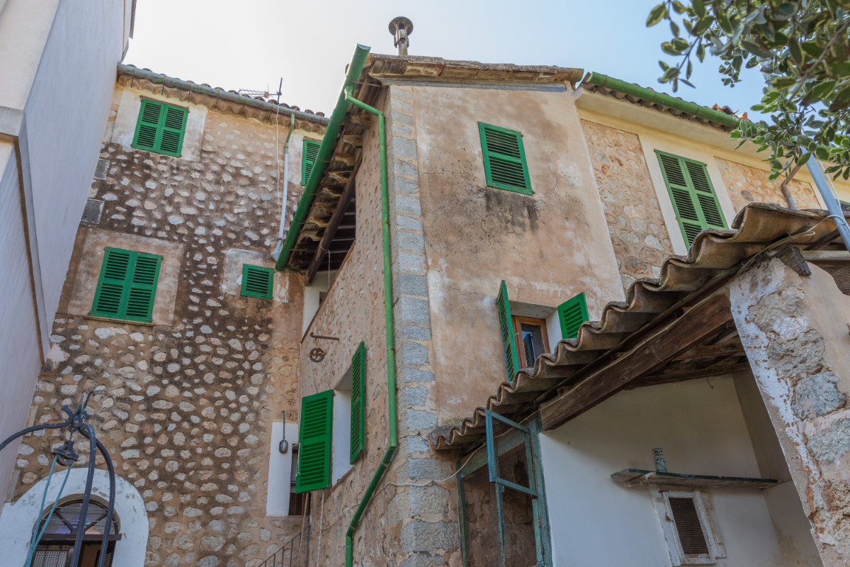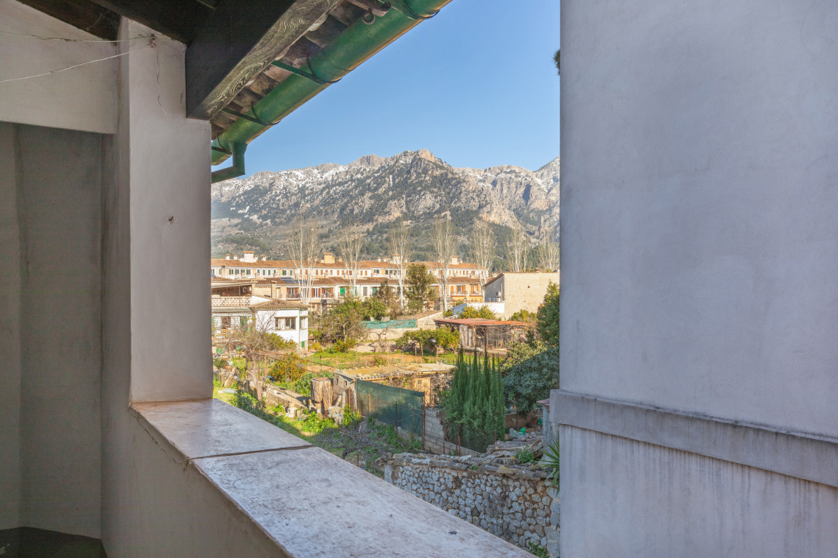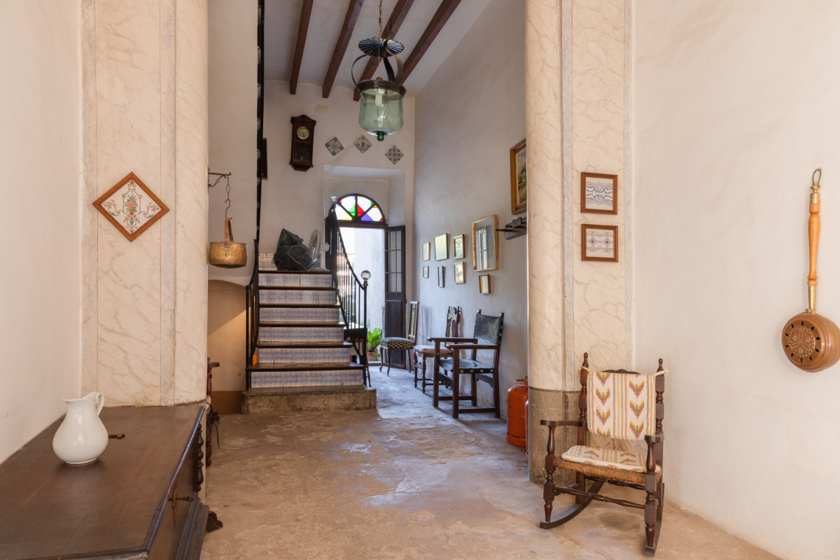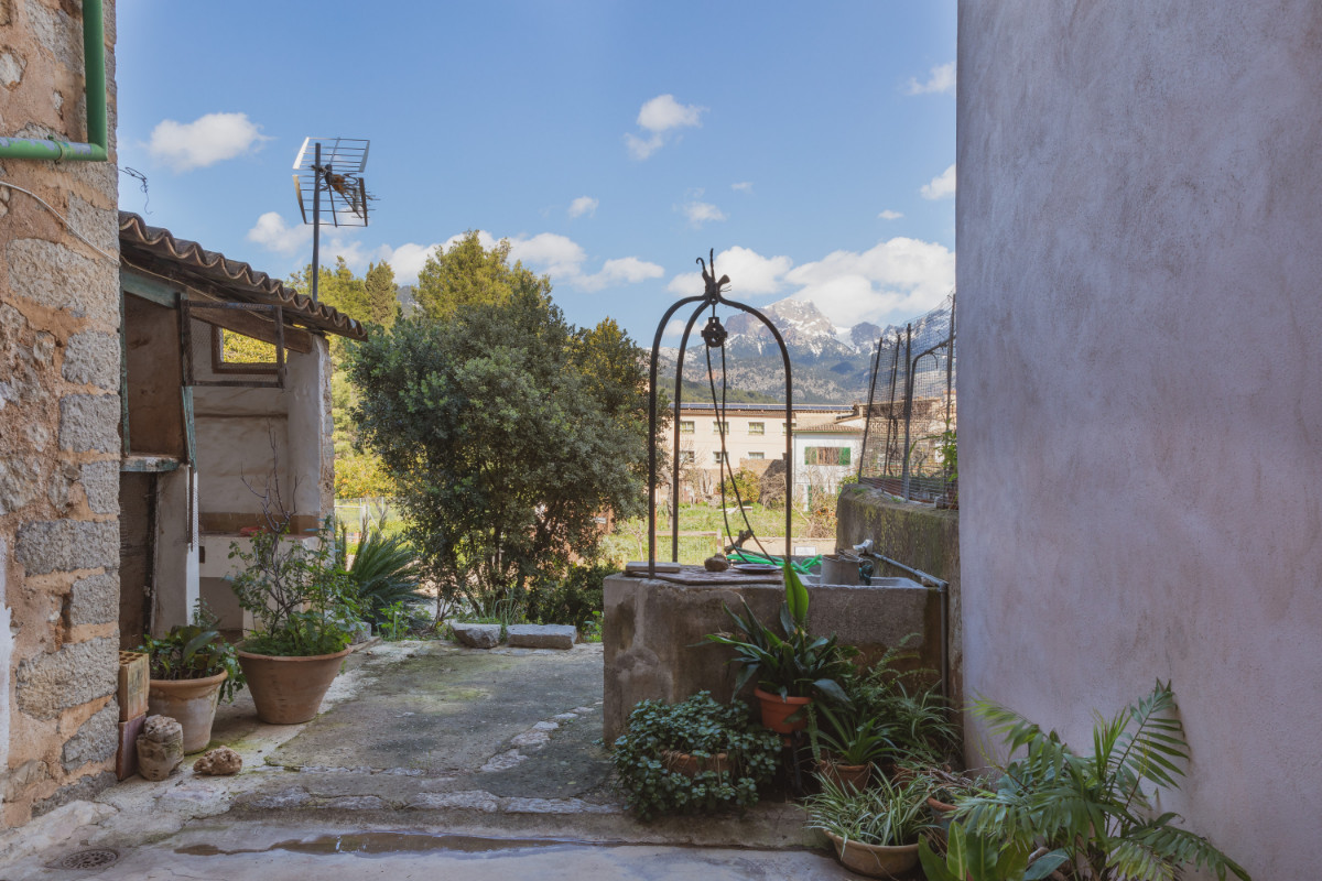 This large townhouse is located in the centre of Sóller, about 5 minutes walk from the village square. On three floors there are living and dining rooms, kitchen, four bedrooms and a bathroom. The house is very well preserved and still offers the original materials and structural elements. You enter an authentic Mallorcan "entrada" with original stone floor, the pretty staircase and round arch. The house has an outdoor terrace and fountain element typical of townhouses. Directly behind, separated from the house by a narrow driveway, there is a large garden with parking for several vehicles. An interesting renovation object.