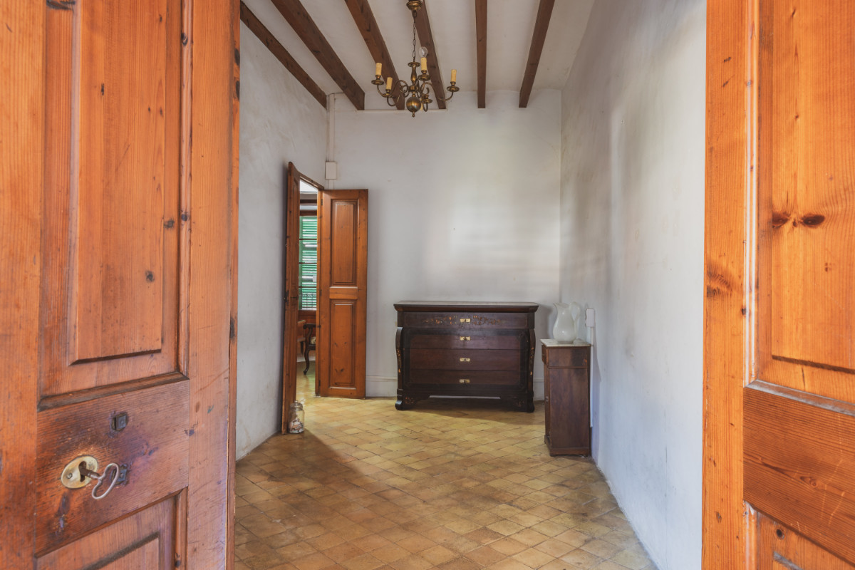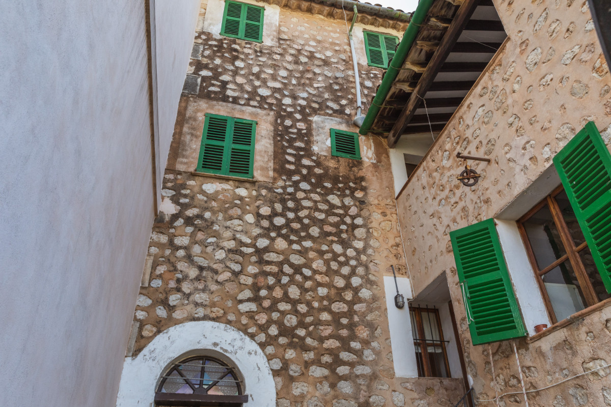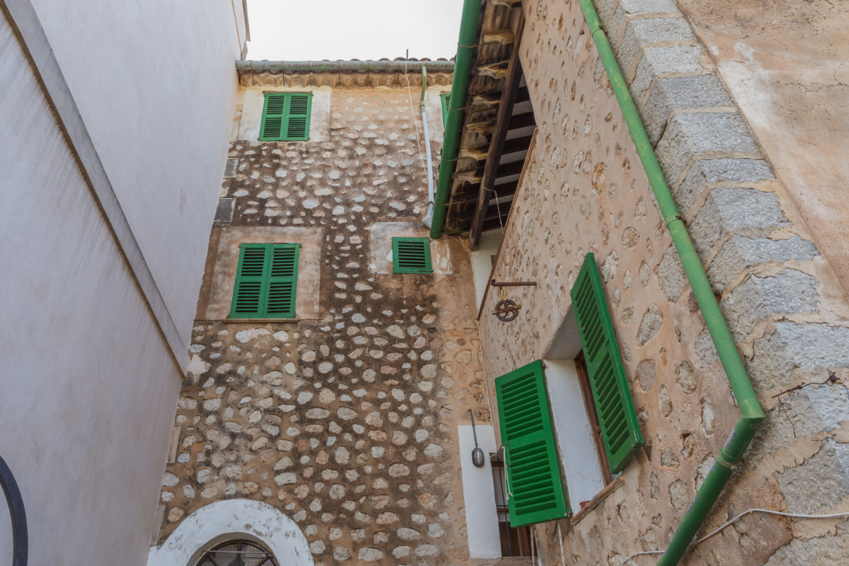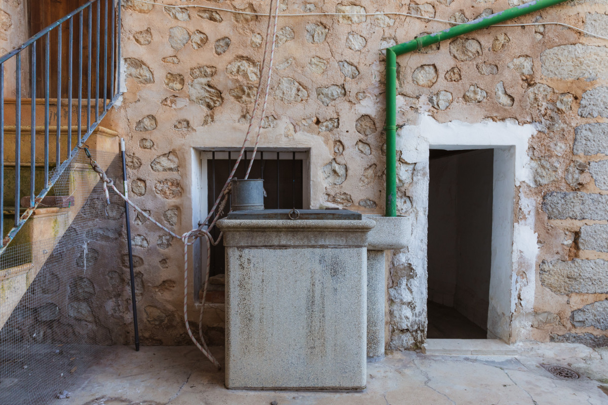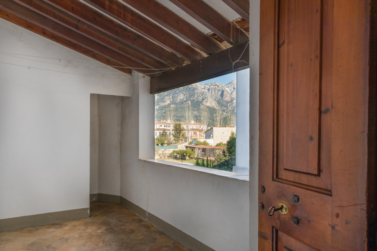 This large townhouse is located in the centre of Sóller, about 5 minutes walk from the village square. On three floors there are living and dining rooms, kitchen, four bedrooms and a bathroom. The house is very well preserved and still offers the original materials and structural elements. You enter an authentic Mallorcan "entrada" with original stone floor, the pretty staircase and round arch. The house has an outdoor terrace and fountain element typical of townhouses. Directly behind, separated from the house by a narrow driveway, there is a large garden with parking for several vehicles. An interesting renovation object.