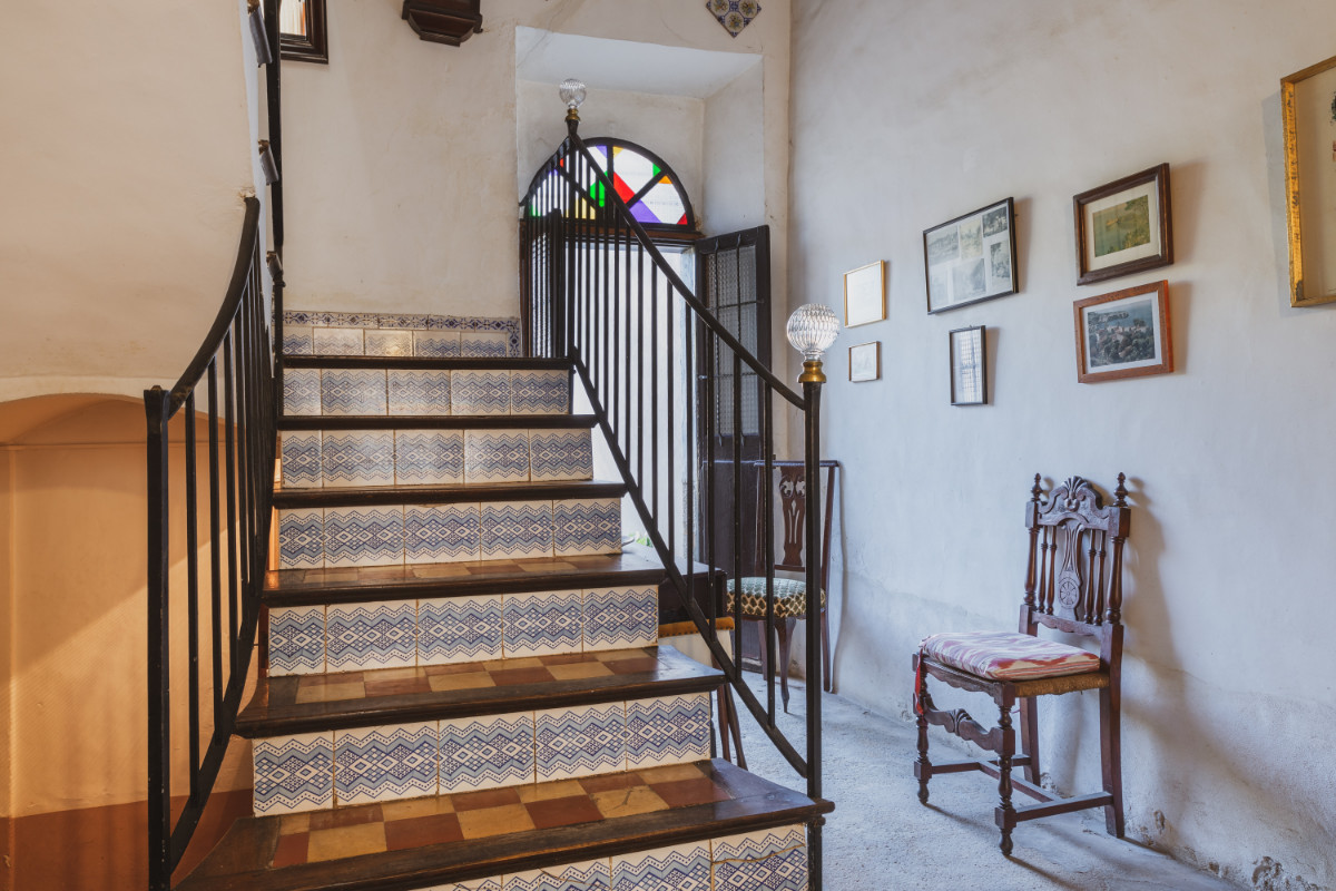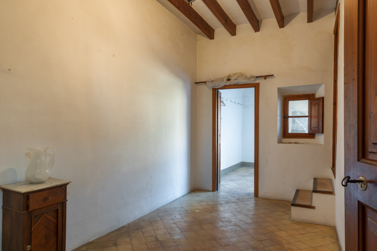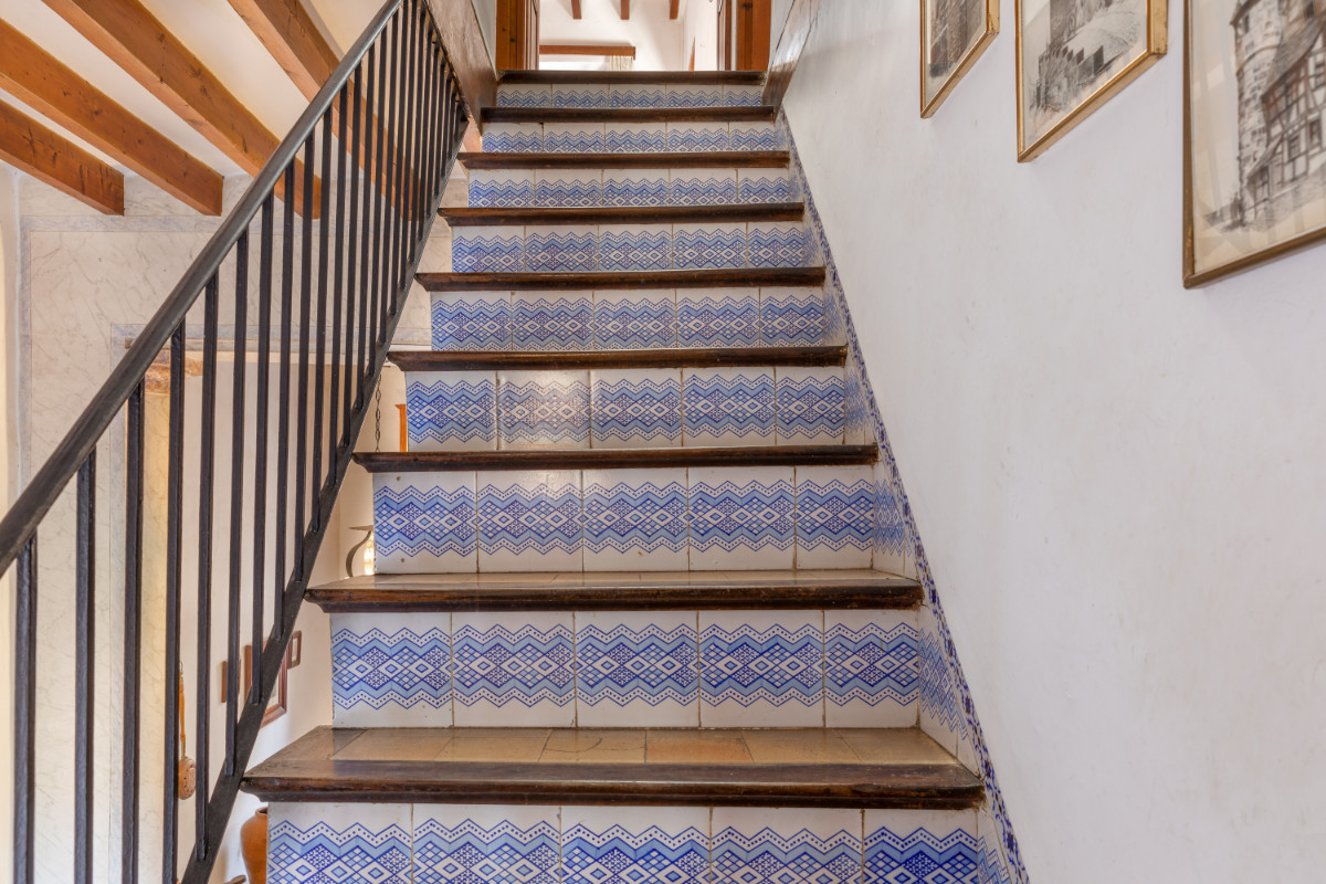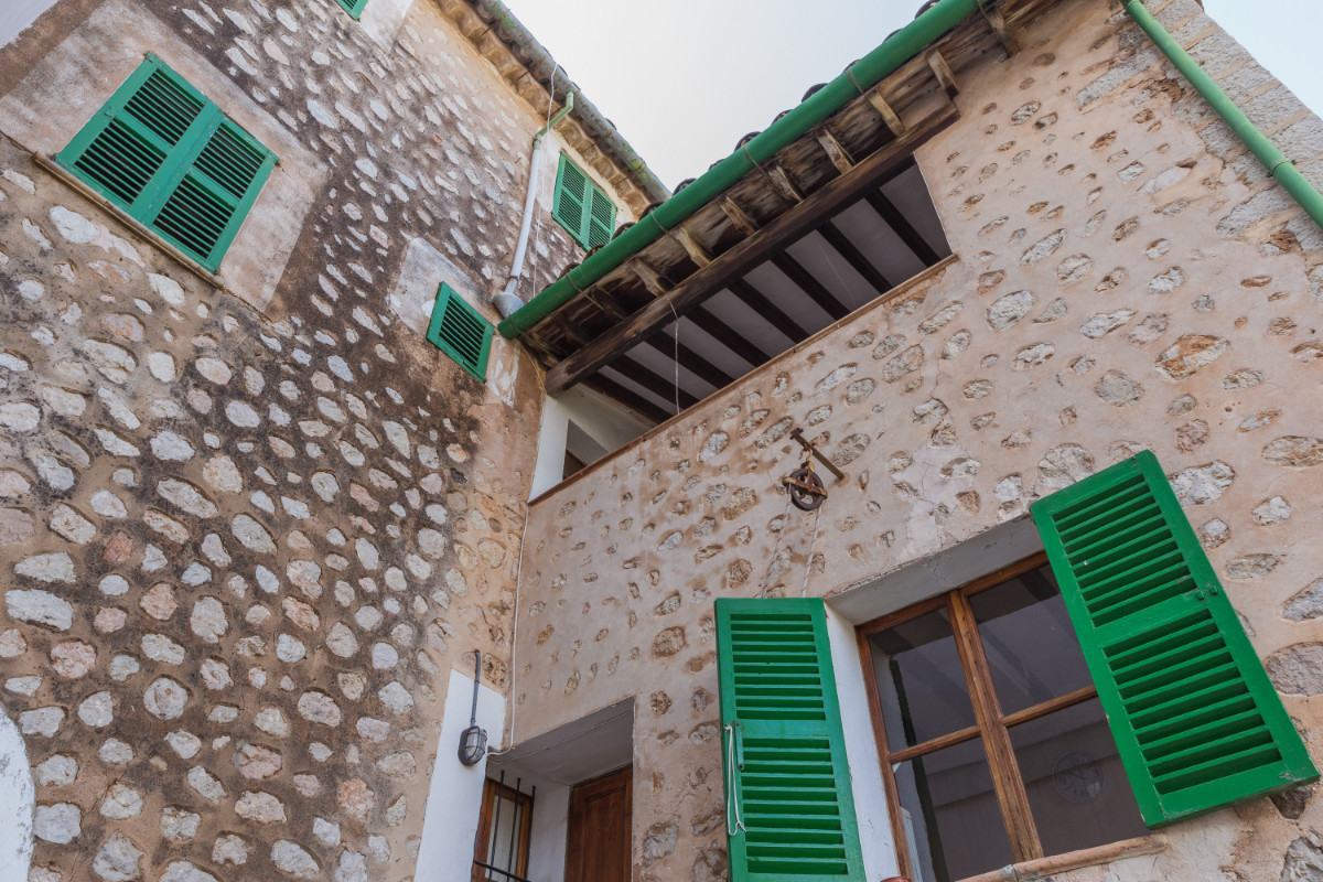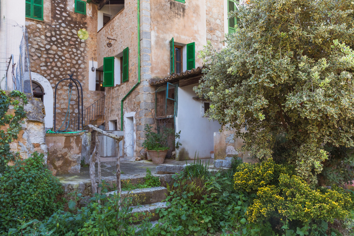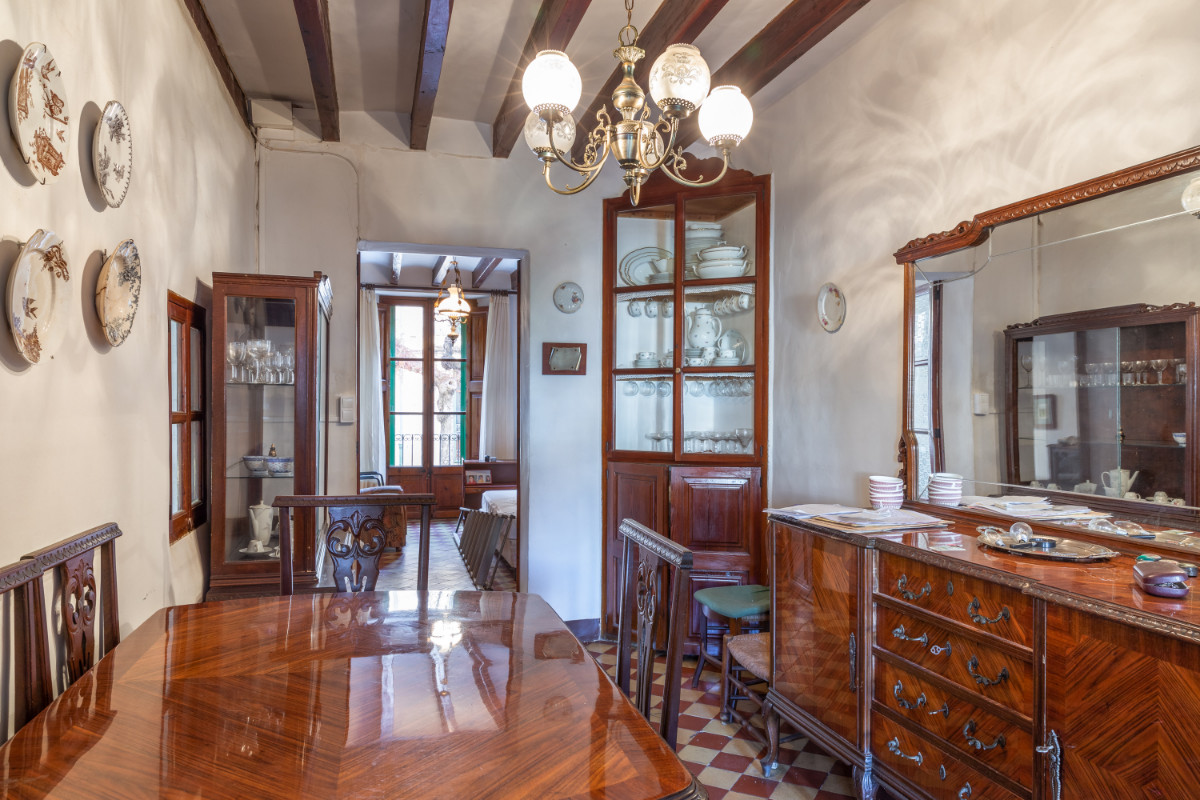 This large townhouse is located in the centre of Sóller, about 5 minutes walk from the village square. On three floors there are living and dining rooms, kitchen, four bedrooms and a bathroom. The house is very well preserved and still offers the original materials and structural elements. You enter an authentic Mallorcan "entrada" with original stone floor, the pretty staircase and round arch. The house has an outdoor terrace and fountain element typical of townhouses. Directly behind, separated from the house by a narrow driveway, there is a large garden with parking for several vehicles. An interesting renovation object.