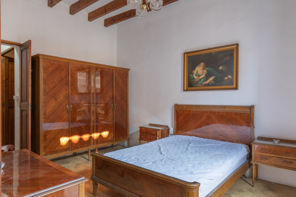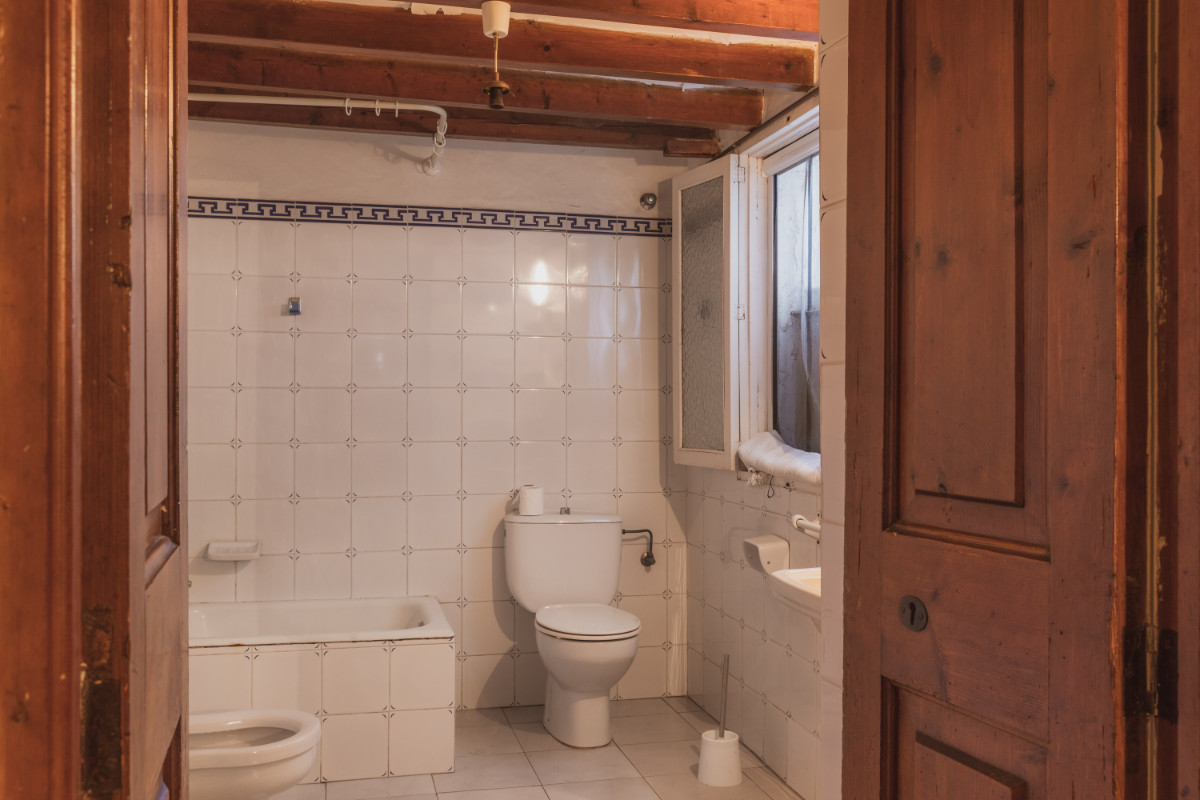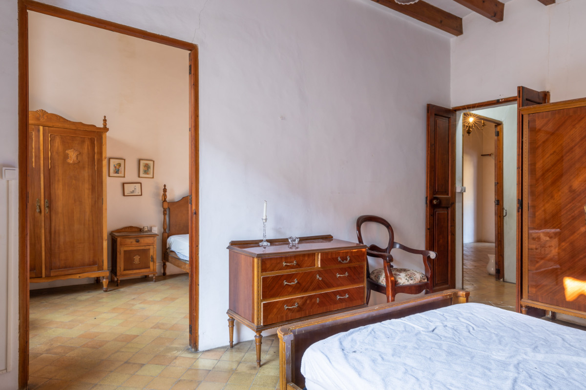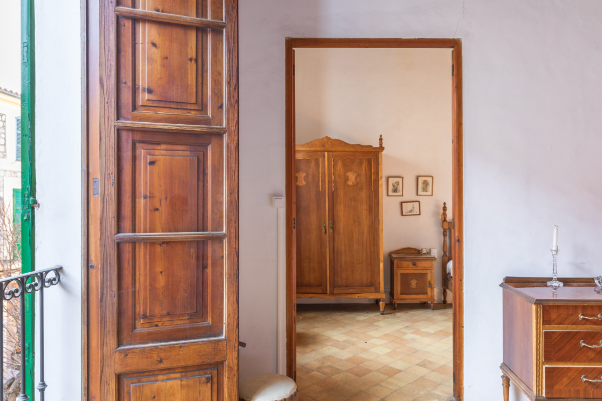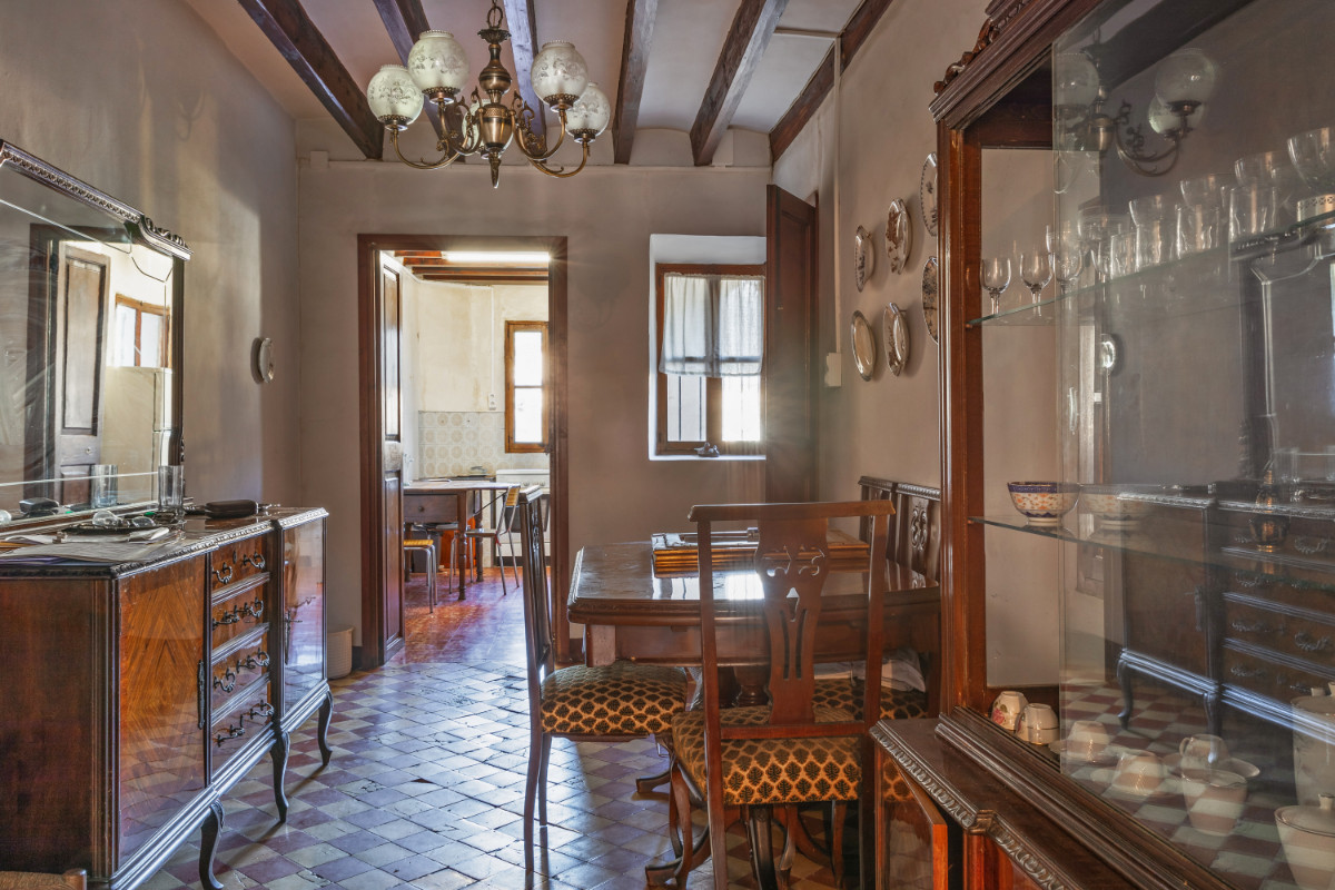 This large townhouse is located in the centre of Sóller, about 5 minutes walk from the village square. On three floors there are living and dining rooms, kitchen, four bedrooms and a bathroom. The house is very well preserved and still offers the original materials and structural elements. You enter an authentic Mallorcan "entrada" with original stone floor, the pretty staircase and round arch. The house has an outdoor terrace and fountain element typical of townhouses. Directly behind, separated from the house by a narrow driveway, there is a large garden with parking for several vehicles. An interesting renovation object.
