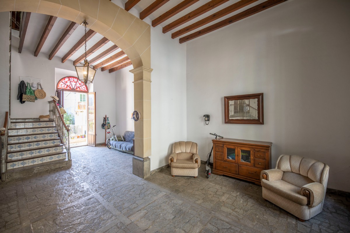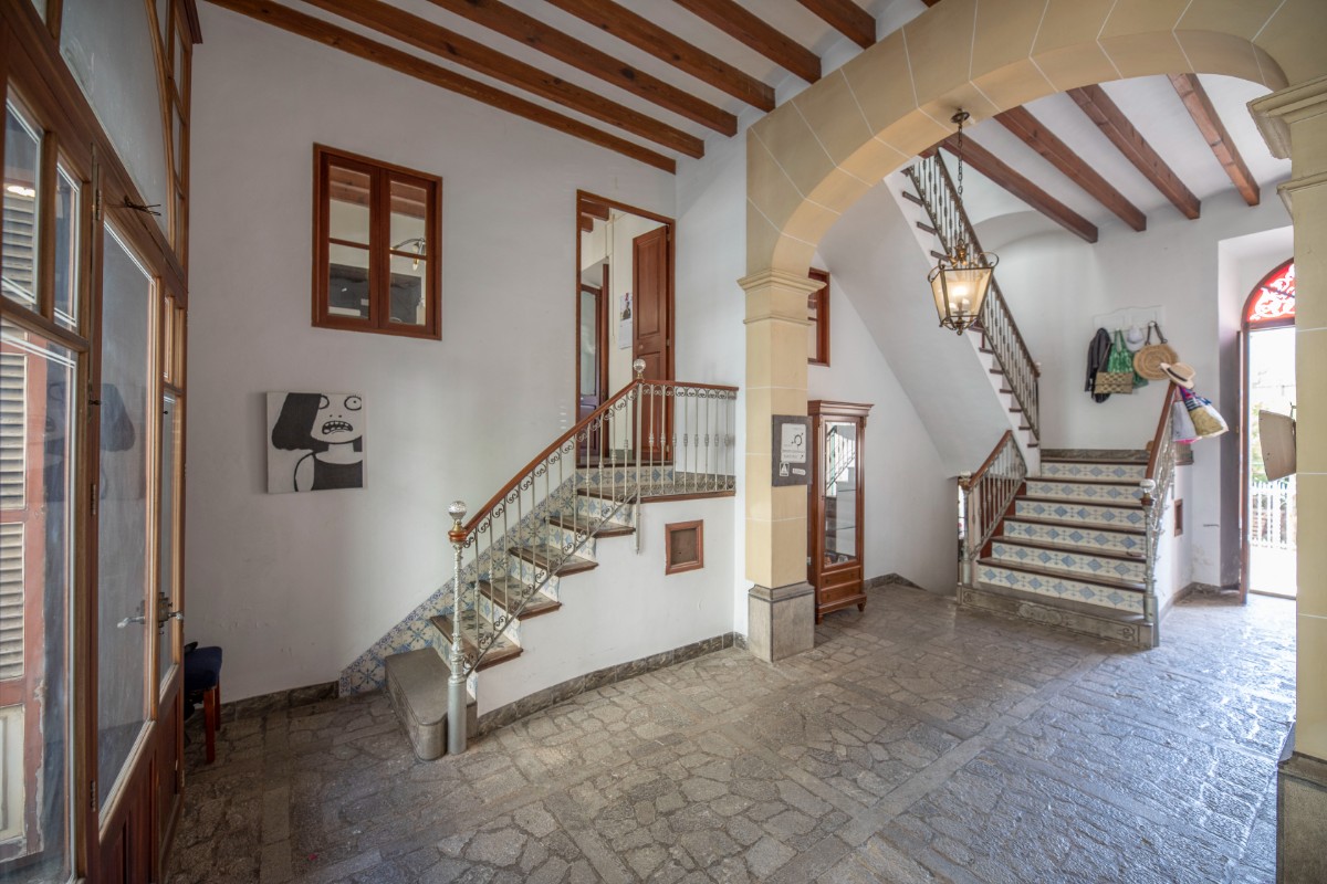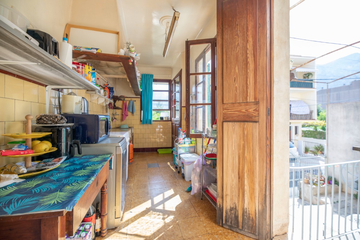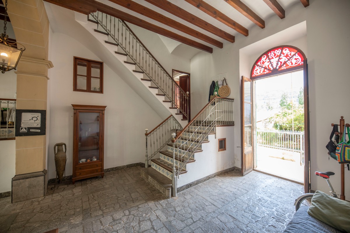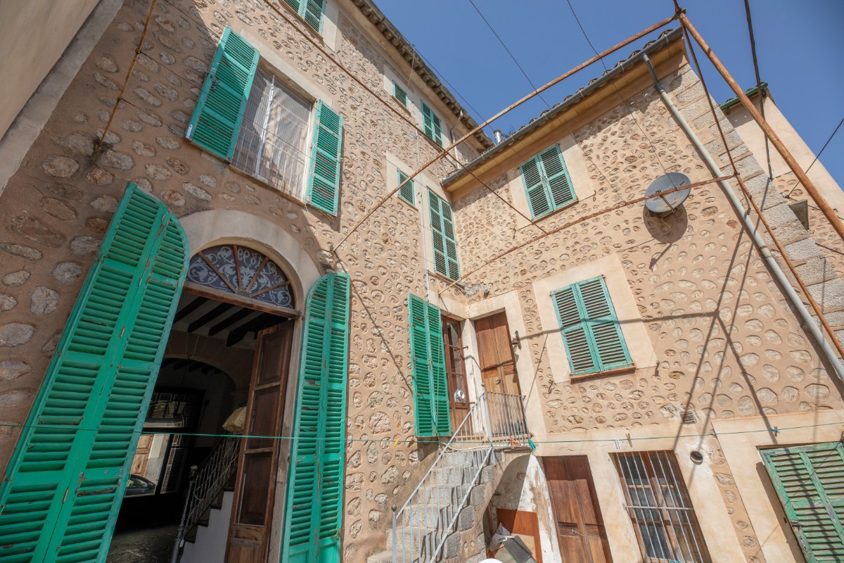 Lovely traditional house in the centre of Sóller with many original features: Located in the heart of the town, this house offers easy access to local shops, restaurants, markets and historical sites, all just a few steps away. With an imposing entrance hall, seven bedrooms spread over several floors and two bathrooms, this home offers both comfort and privacy. It also has a kitchen-dining area, a living room, a versatile cellar, a laundry room and a patio terrace with breathtaking views to the Tramuntana mountains. In front of the house and separate from the house is a plot of land that belongs to the house and would be ideal for parking and garden. With a little love for renovation, the perfect blend of historic charm and modern amenities.