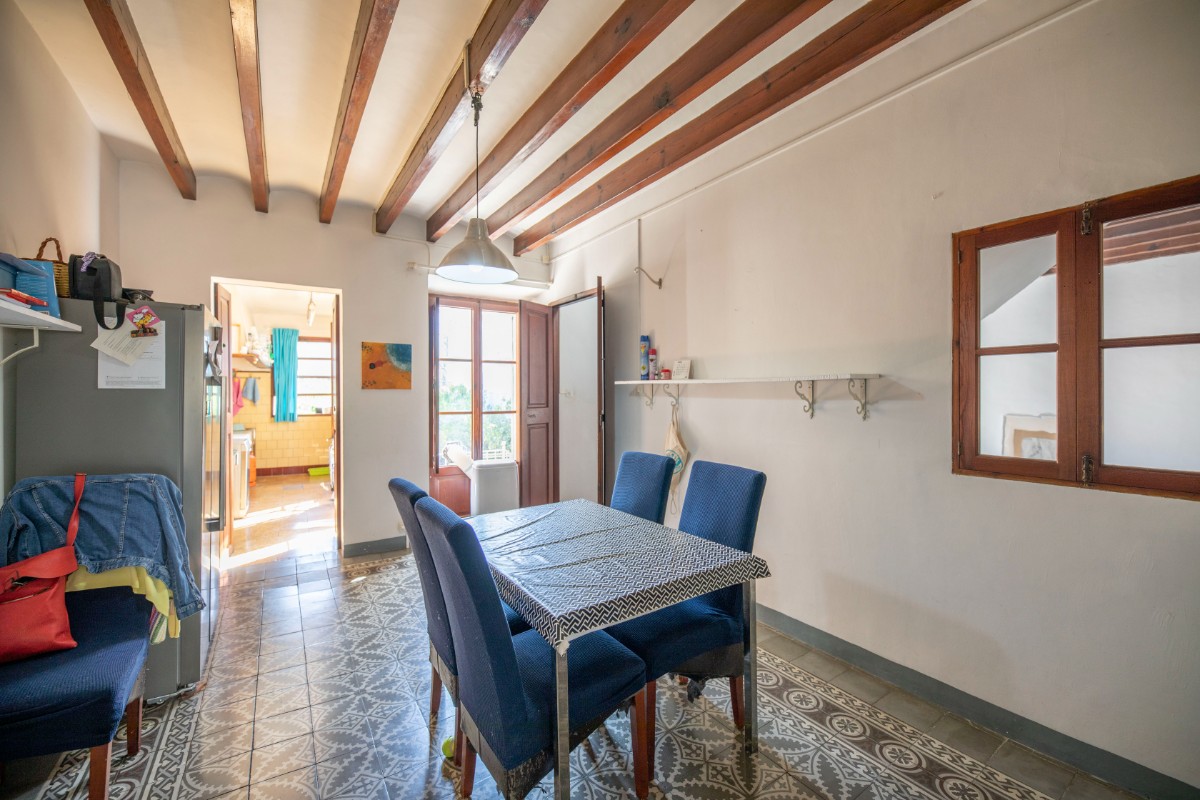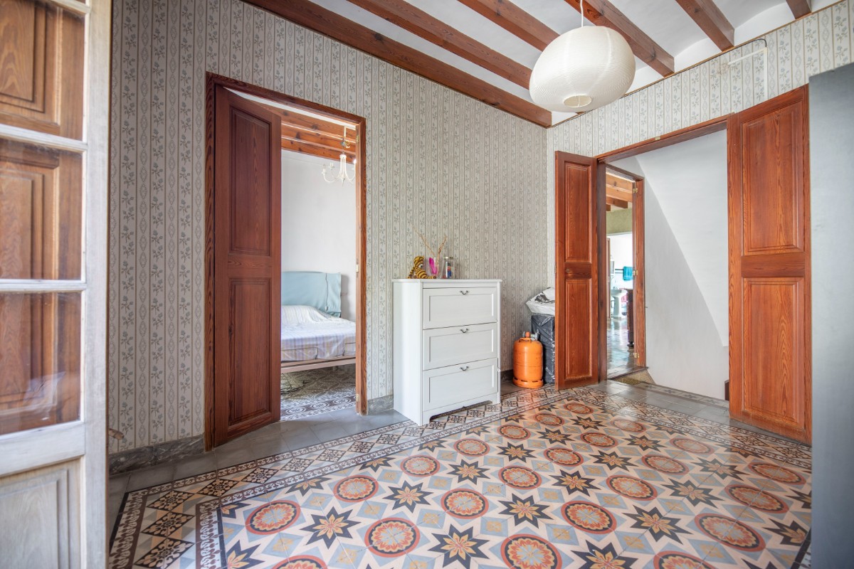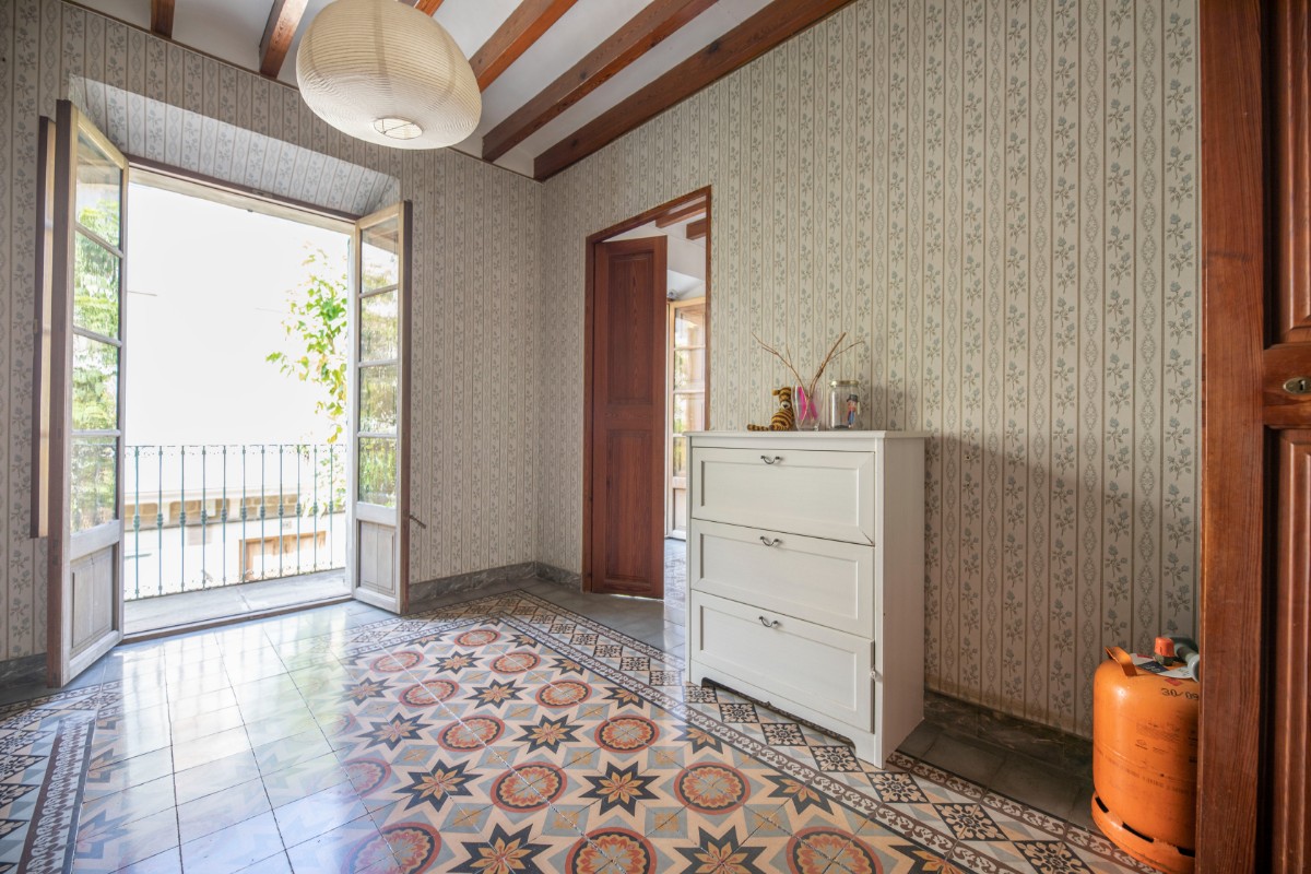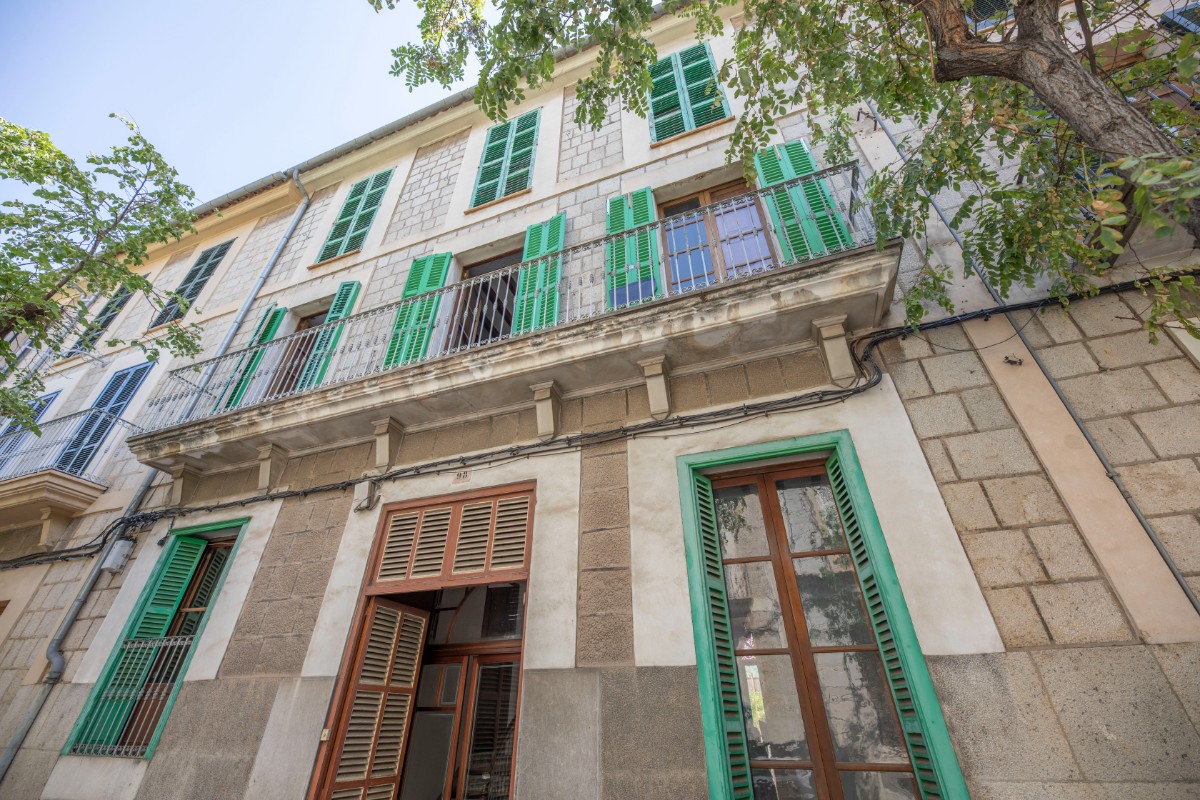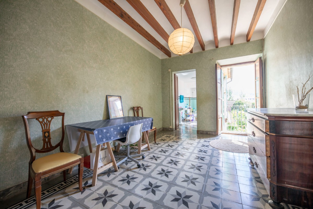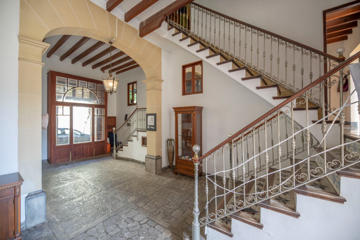 Lovely traditional house in the centre of Sóller with many original features: Located in the heart of the town, this house offers easy access to local shops, restaurants, markets and historical sites, all just a few steps away. With an imposing entrance hall, seven bedrooms spread over several floors and two bathrooms, this home offers both comfort and privacy. It also has a kitchen-dining area, a living room, a versatile cellar, a laundry room and a patio terrace with breathtaking views to the Tramuntana mountains. In front of the house and separate from the house is a plot of land that belongs to the house and would be ideal for parking and garden. With a little love for renovation, the perfect blend of historic charm and modern amenities.