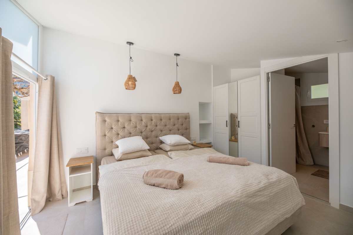 The property sits on a plot of approximately 400 m² and offers a floor area of around 160 m², laid out in a functional and light-filled manner. It comprises a main house with 3 spacious bedrooms , two of them with bathroom en suite and an annex with a further bedroom and bathroom, perfect for families or for those needing additional space as an office or guest area.