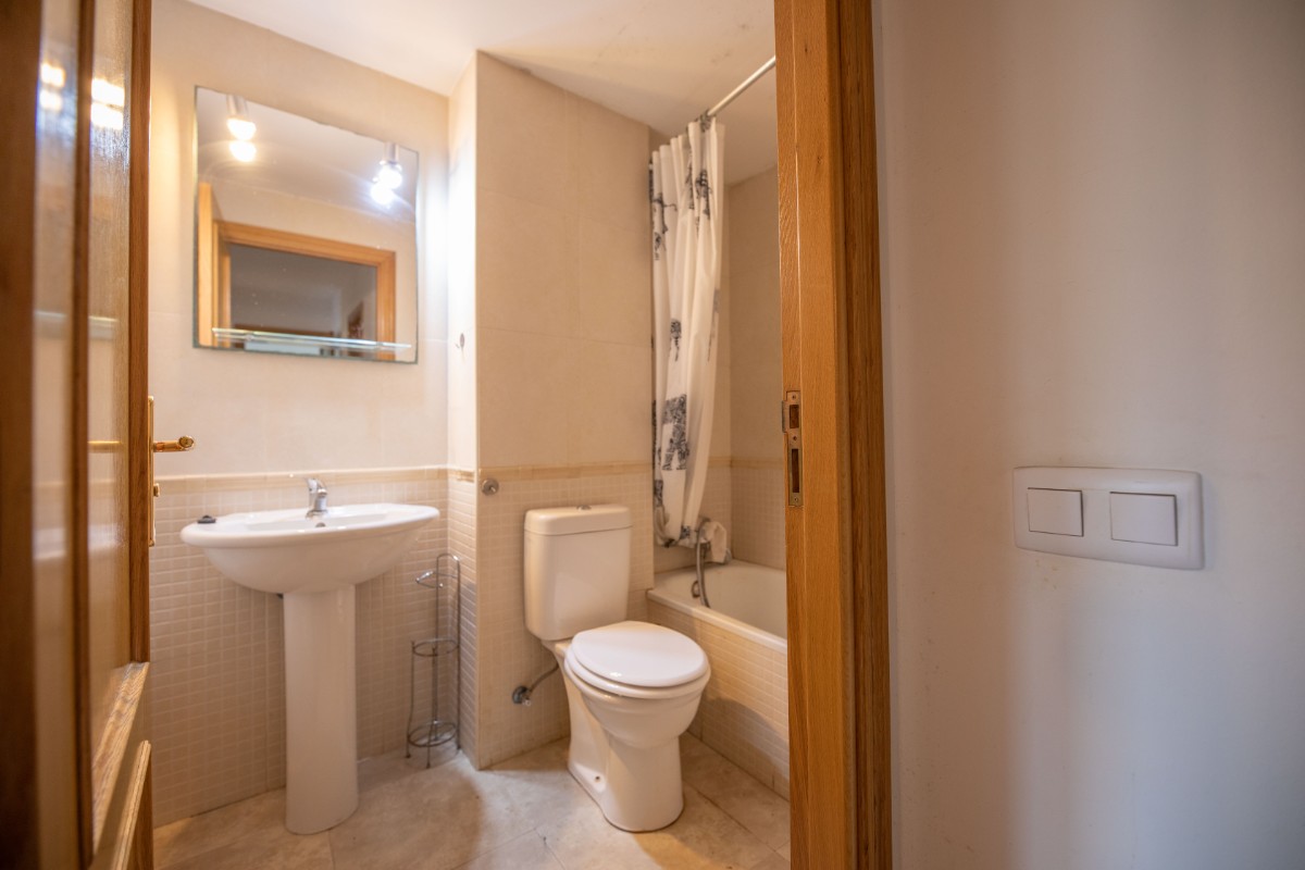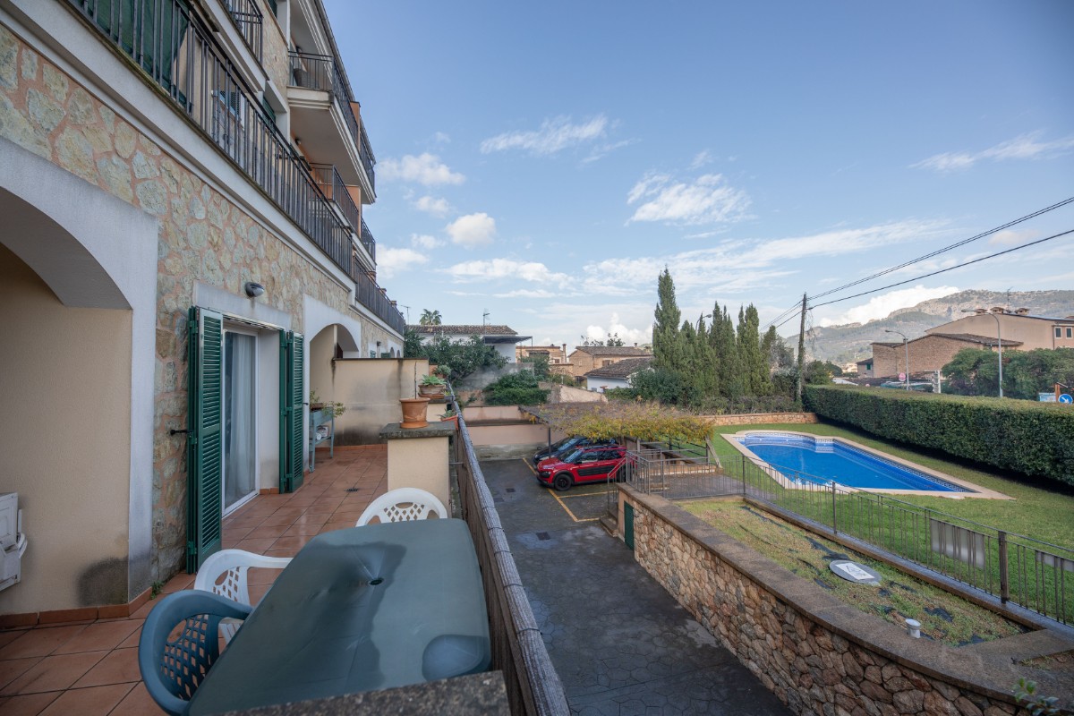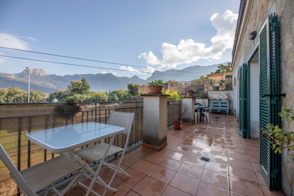 This flat is located in a new building (2008) outside the centre of Sóller. Shopping facilities are within walking distance, as well as the bus station to Port de Sóller and Palma. The flat is located on the first floor of the residential building and offers two double bedrooms, a full bathroom and a guest toilet; kitchen and living room, as well as the bedrooms lead to the terrace of the flat. The flat is extremely practical as it has a parking space in the underground car park and there is a private lift, and central heating. The community also includes a small garden with pool.