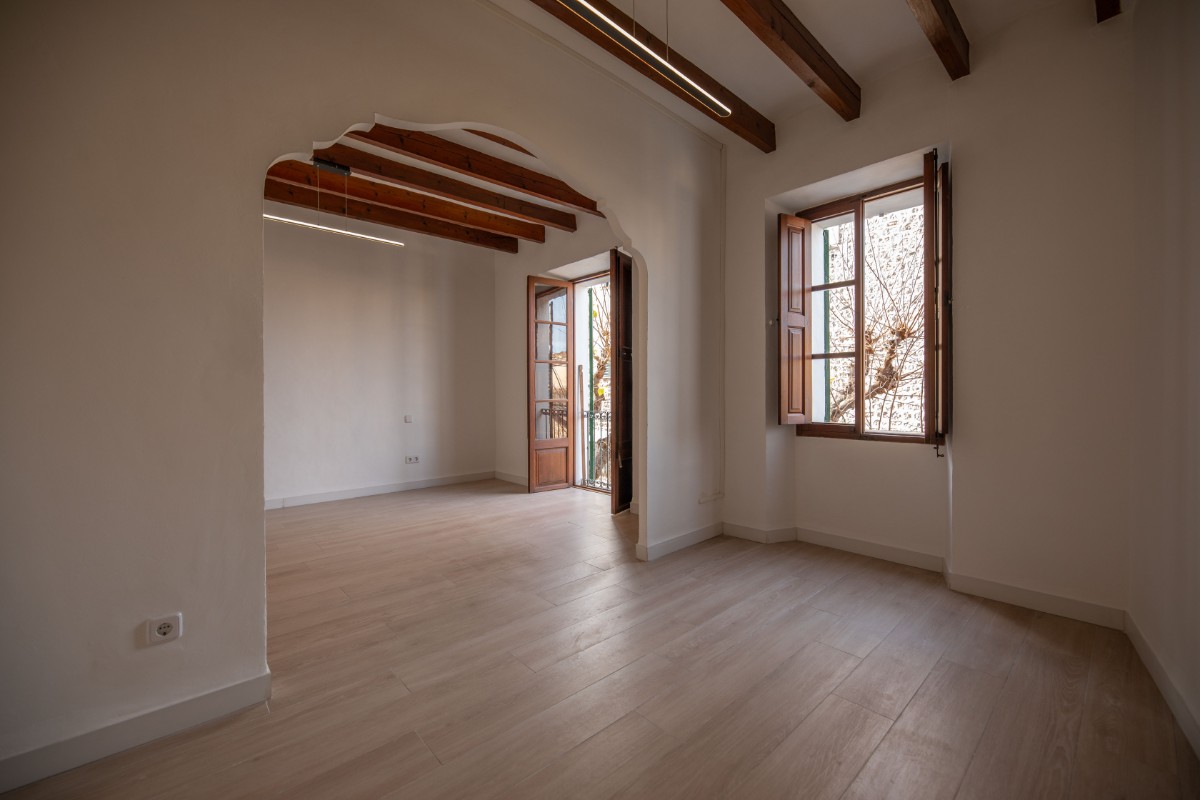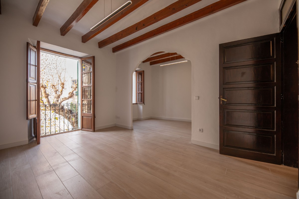 Spacious apartment with three bedrooms, kitchen, renovated bathroom, and small terrace located a few minutes walk from the center of Sóller. The spacious living room is equipped with a pellet stove but no further heating possibilities are avaiolable. Pets are not wished. Unfurnished rental. Available for long term.