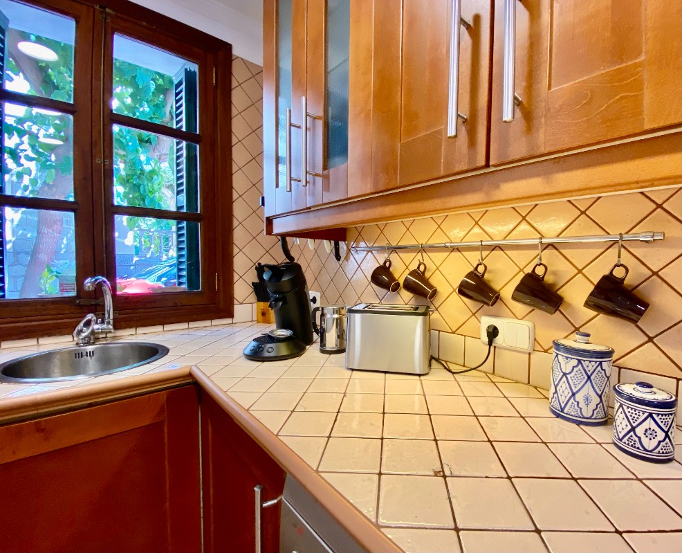 On the ground floor, the flat offers a living-dining room area with an open-plan kitchen, a small bedroom with a 135 cm double bed and a bathroom . A few steps lead down to the garden. The souterrain of the flat offers two double bedrooms with 180x200 wide beds and a large bathroom. A 5-minute walk takes you to the market square of the historic town of Soller, famous for its antique wooden tramway that winds its way along the orchards and olive groves. The beautiful picturesque town of Soller is becoming increasingly popular, so the streets are well used depending on the time of year. We recommend a small hire car that handles well and makes it easier to find parking spaces. ETV/9896 / ESFCTU00000702800039974300000000000000000000ETV/98964