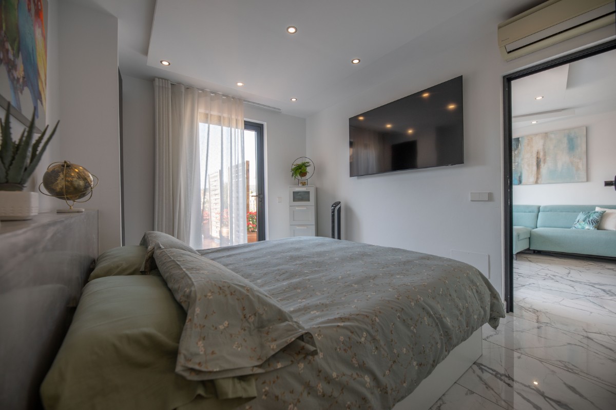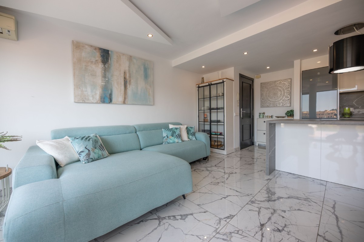 This apartment is offered for temporary rental. Located on the second floor without elevator you find a charming modern apartment with fantastic terrace area. The immaculate and spotless place is ideal for max 2 person and offers double bed , bathroom en suite, modern equipped kitchen, A/C and parking space . Please ask for conditions.
